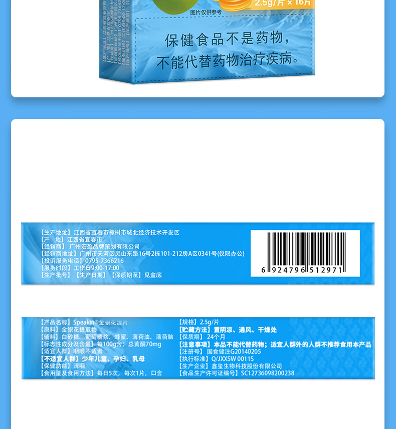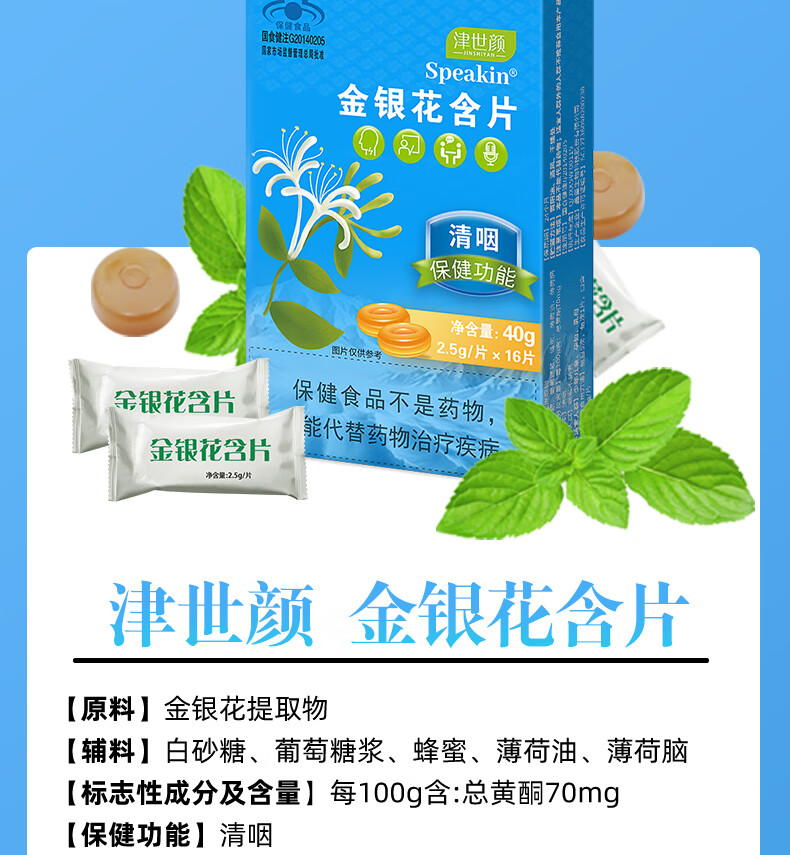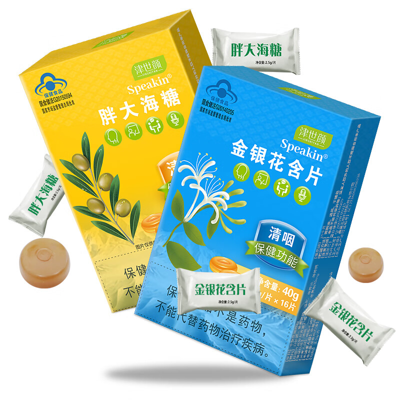 津世颜 金银花 胖大海喉糖歌手话务销售老师专用清咽喉 金银花润喉糖16片x4盒