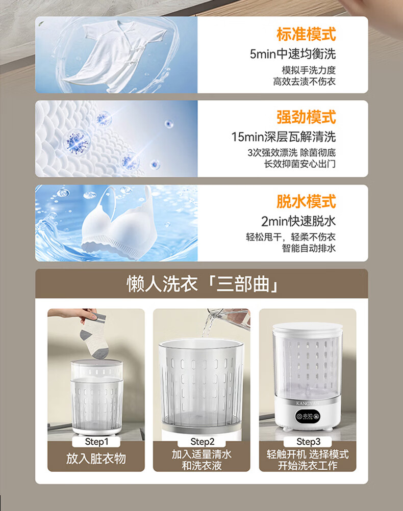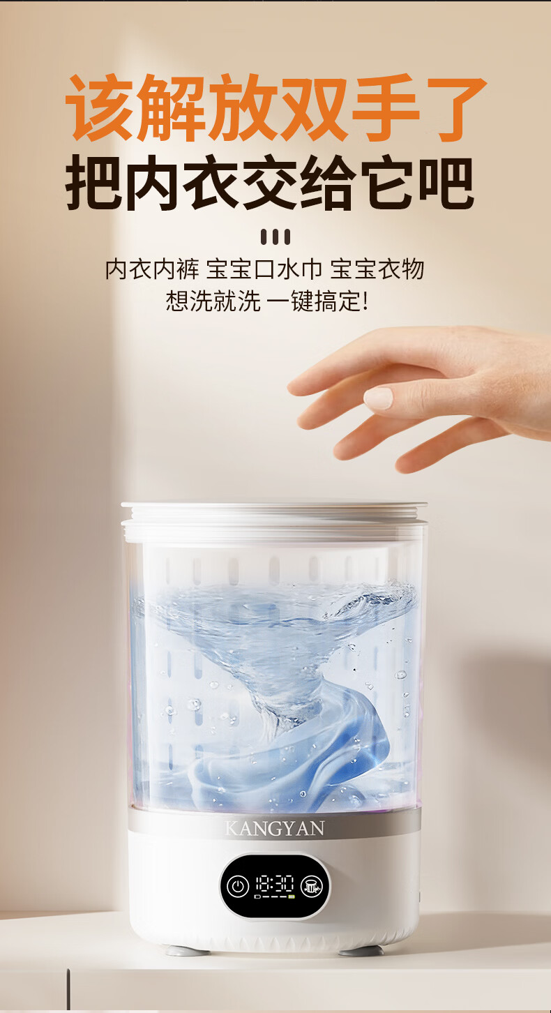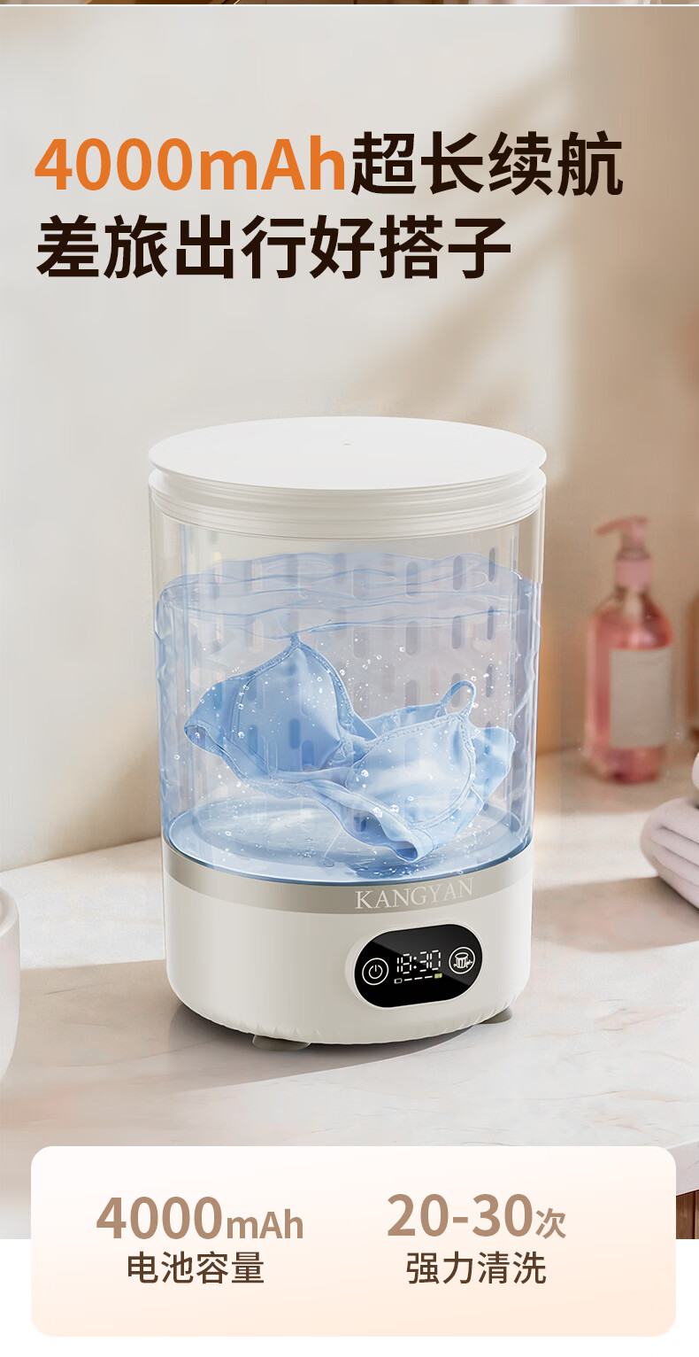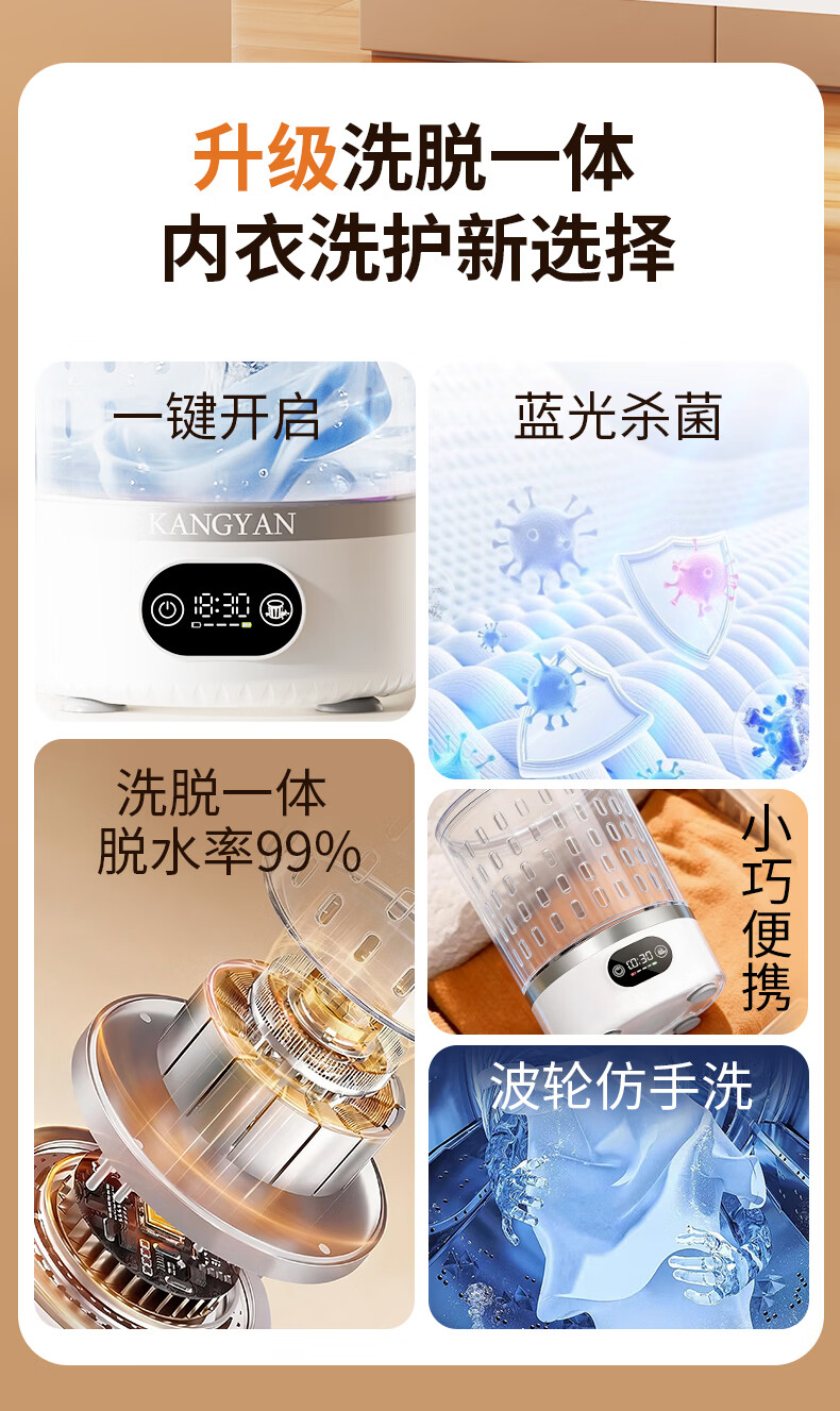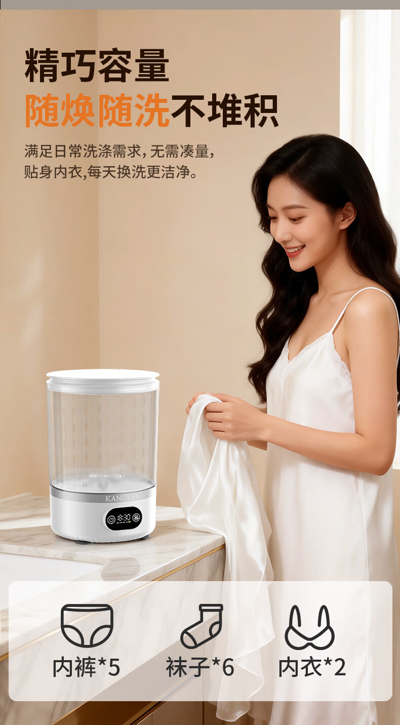 KANGYAN【母婴级杀菌 | 洗脱一体】内衣裤洗衣机专用迷你全自动小型便携洗袜子懒人宿舍洗衣杯 【Ultra+尊享款】洗脱一体|自带杀菌模式 【三甲医生推荐】除菌率≥99.99免安装超大容量