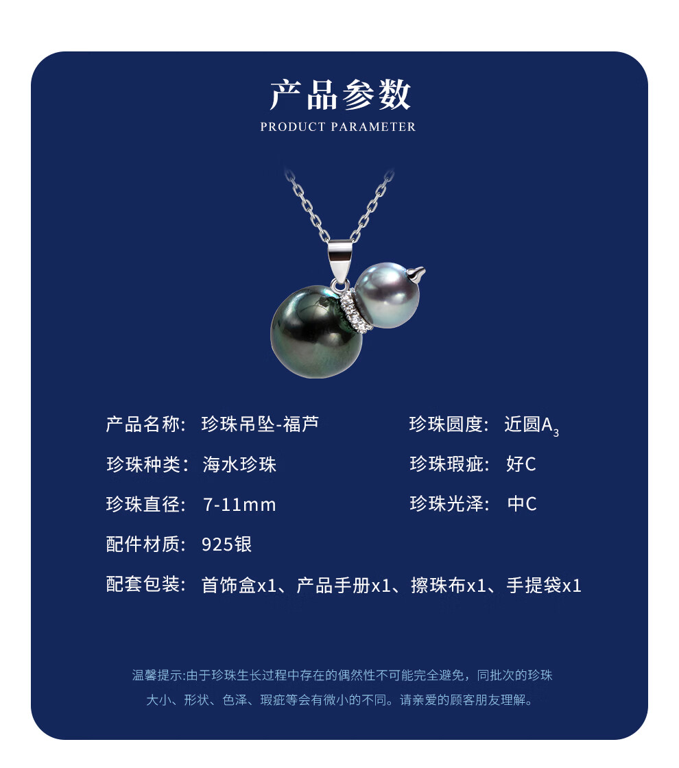 南珠宫福芦大溪地海水珍珠吊坠南洋金珠颈饰寓意新年礼物送长辈 大溪地黑珍珠吊坠 7.0-11.0mm