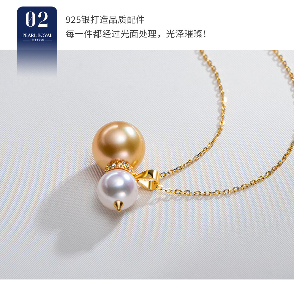 南珠宫恋光925银海水珍珠耳环南洋金珠耳钉强光近圆轻奢生日礼物送女友 10.0-11.0mm 925银海水珍珠耳环