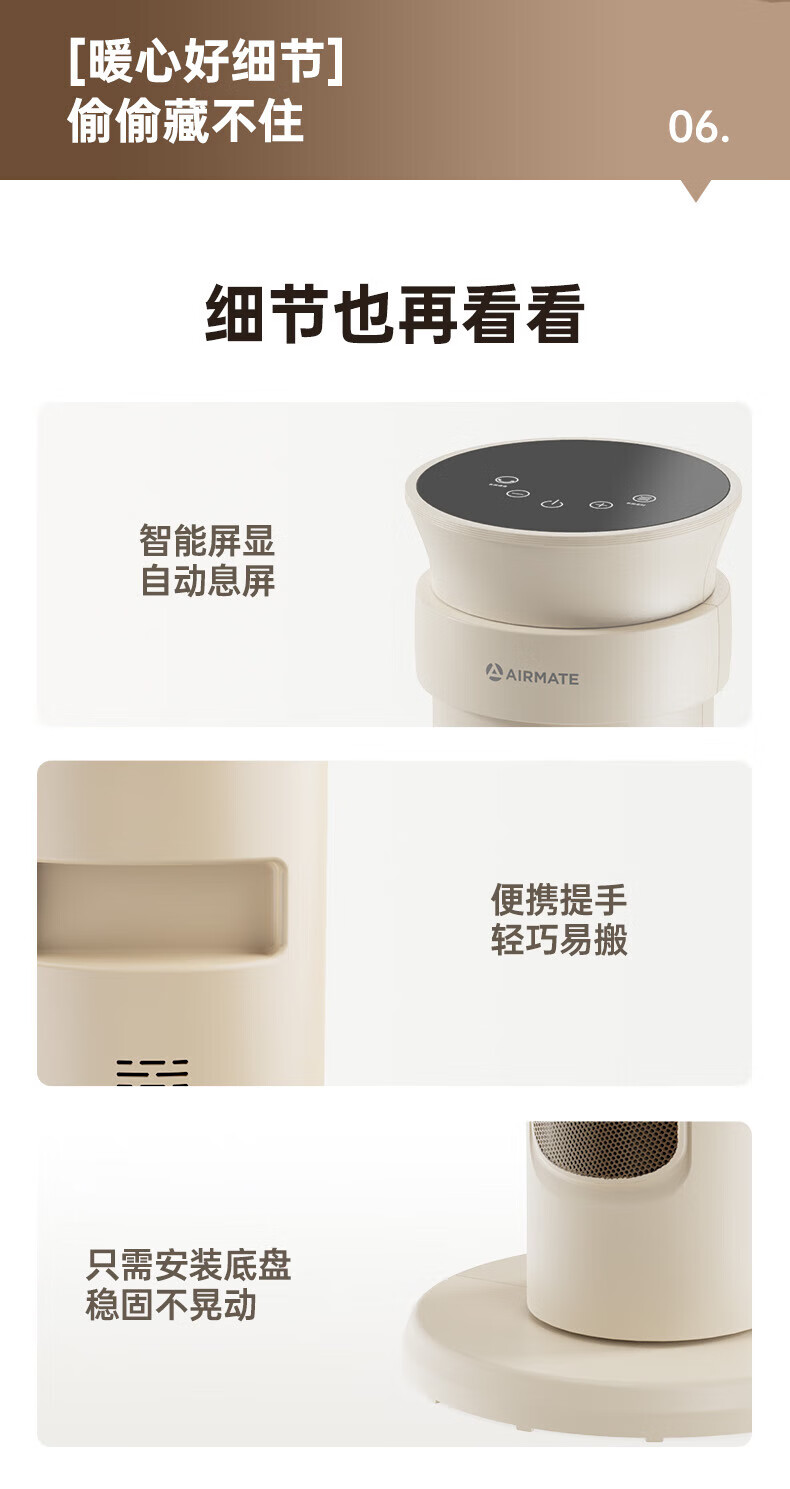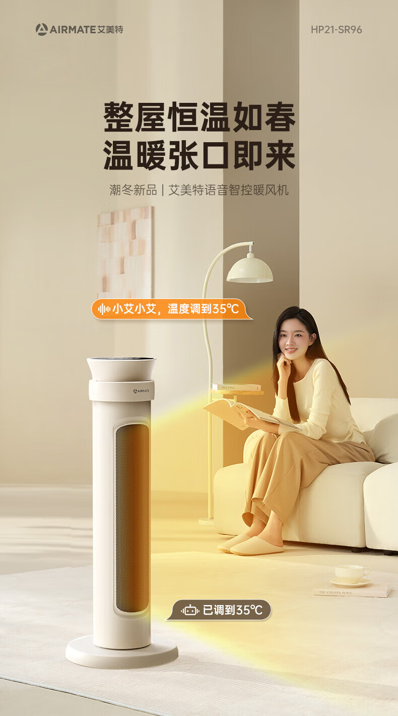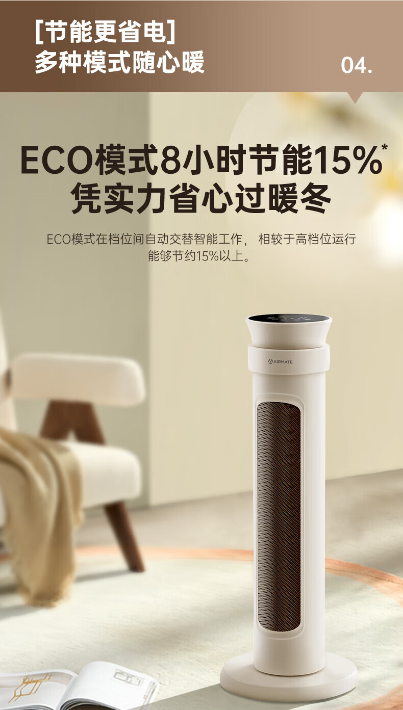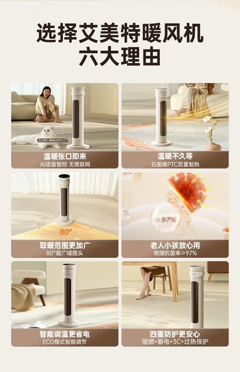 艾美特(AIRMATE)石墨烯暖风机家用节能取暖器语音智控大功率摇头塔式电暖风速热风机宿舍卧室取暖神器办公室电暖气 【远程遥控款】石墨烯3S速热
