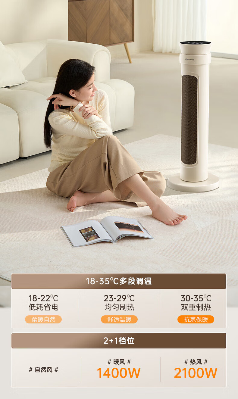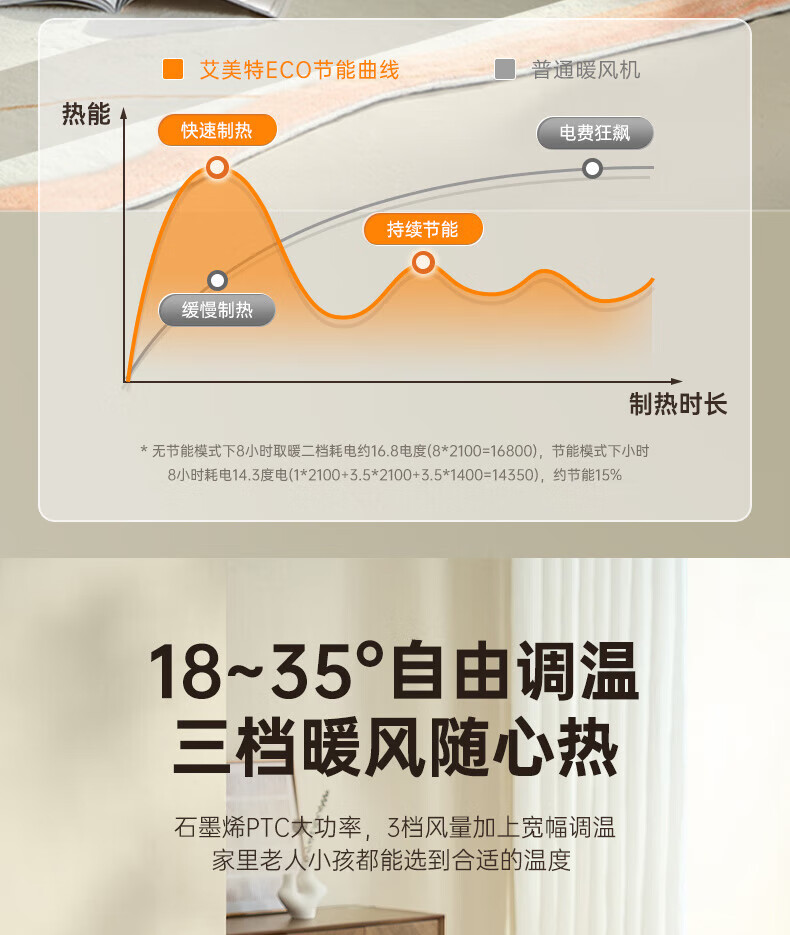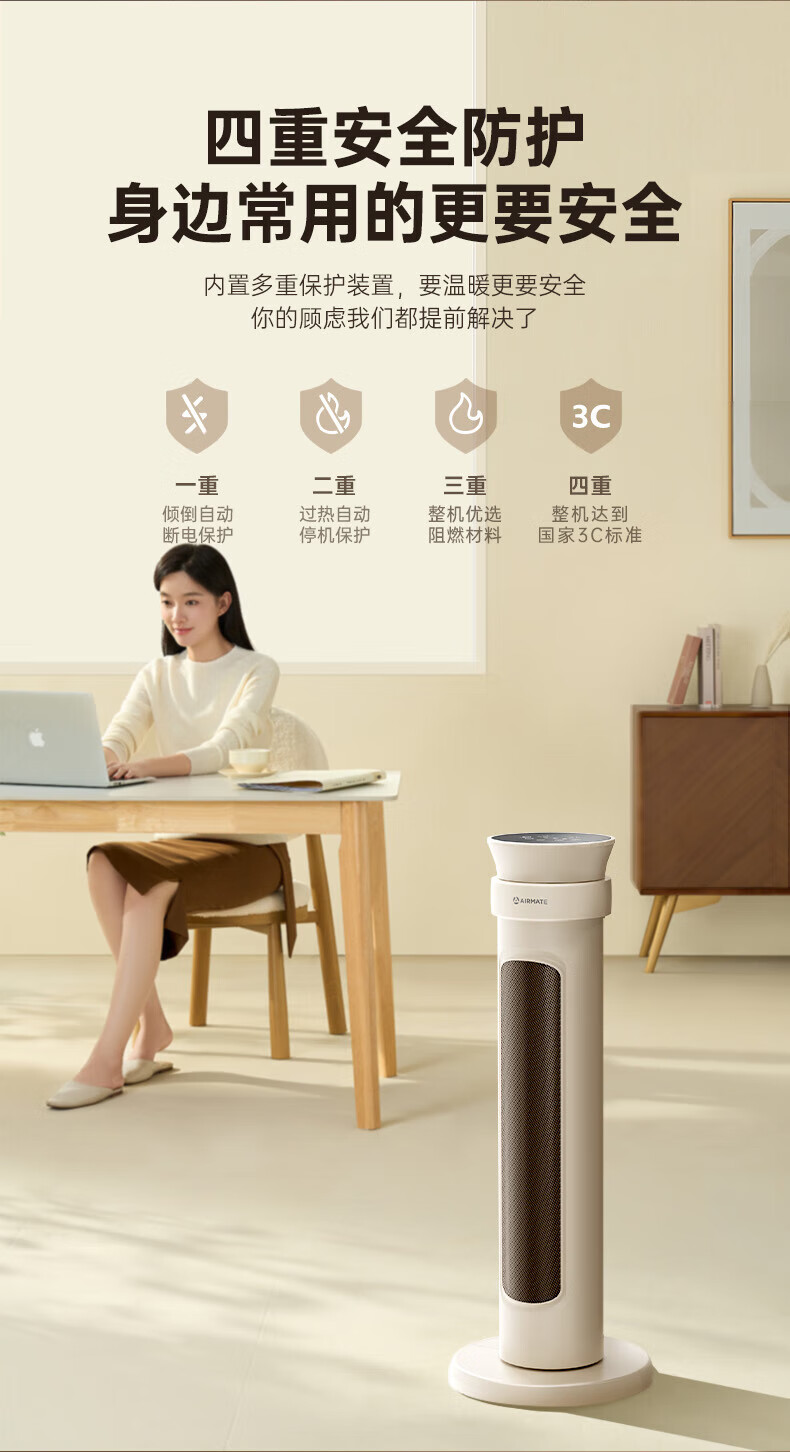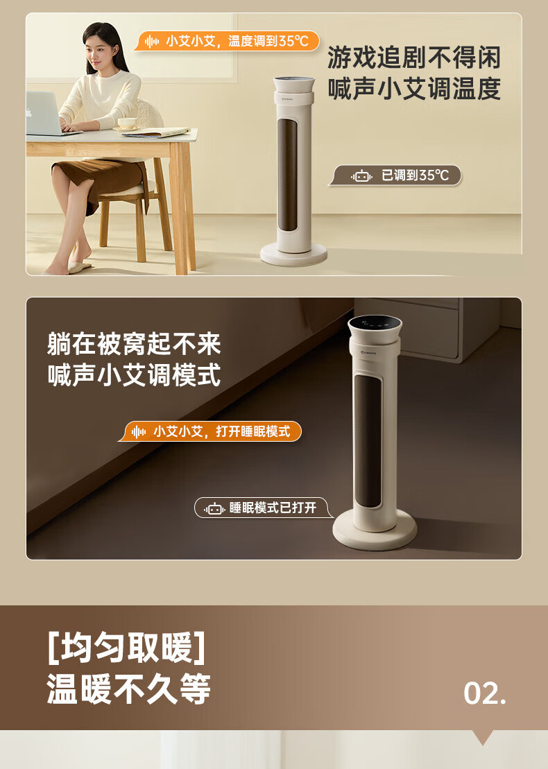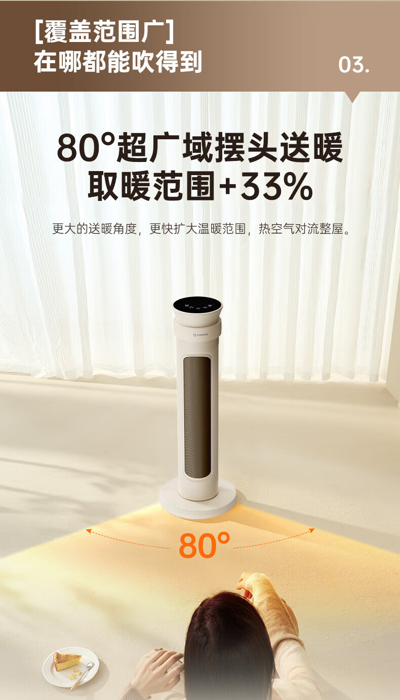 艾美特(AIRMATE)石墨烯暖风机家用节能取暖器语音智控大功率摇头塔式电暖风速热风机宿舍卧室取暖神器办公室电暖气 【远程遥控款】石墨烯3S速热