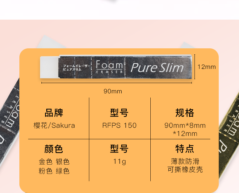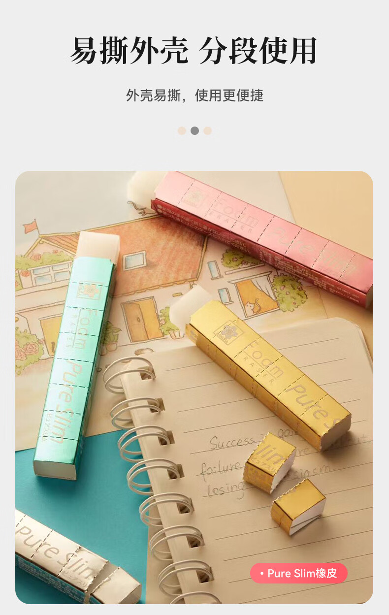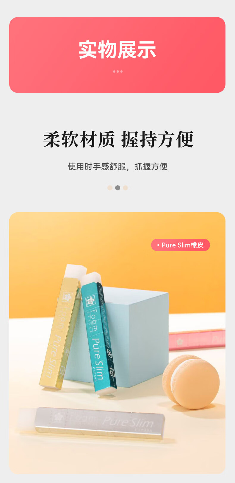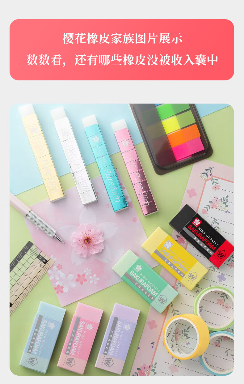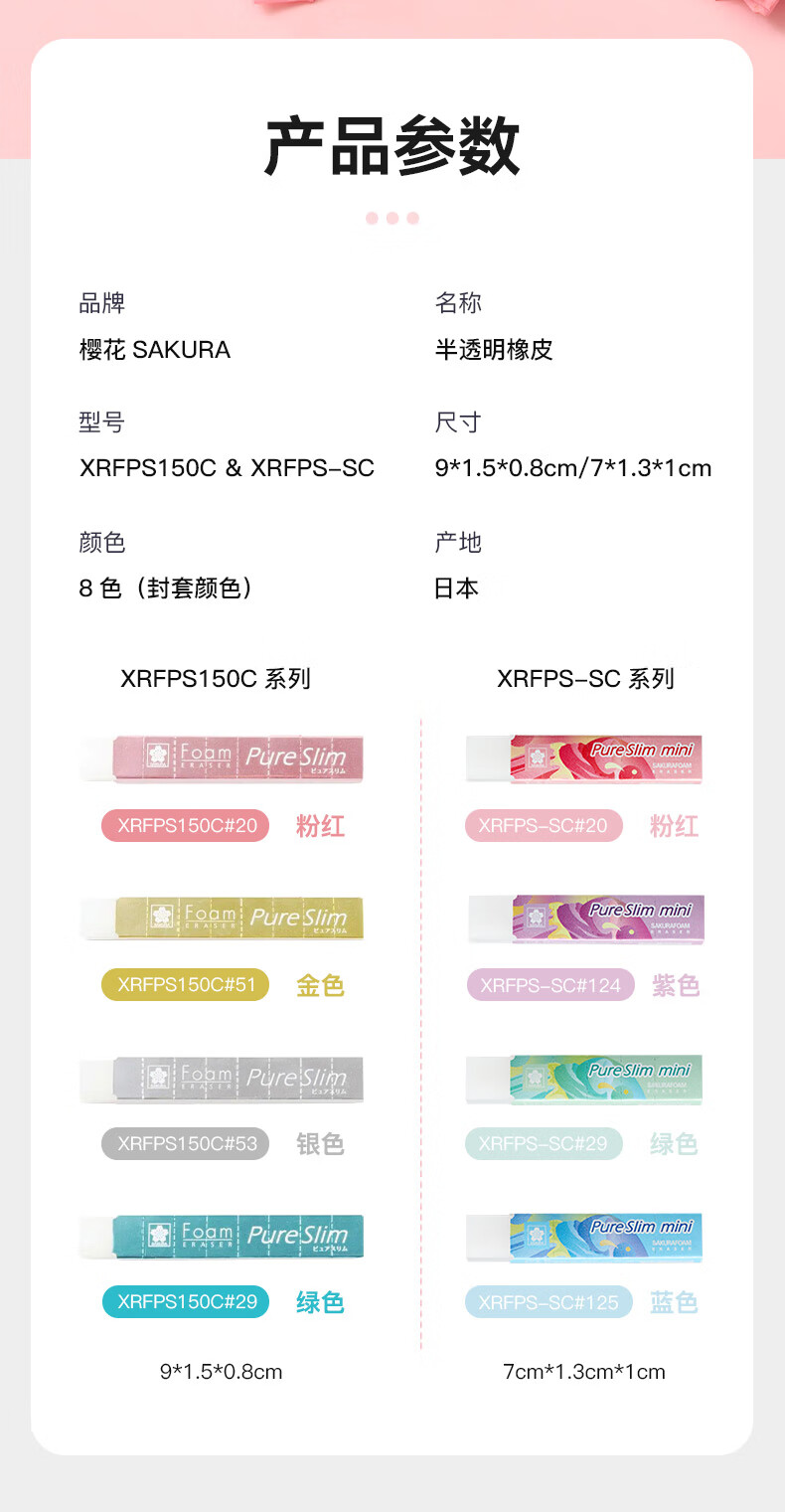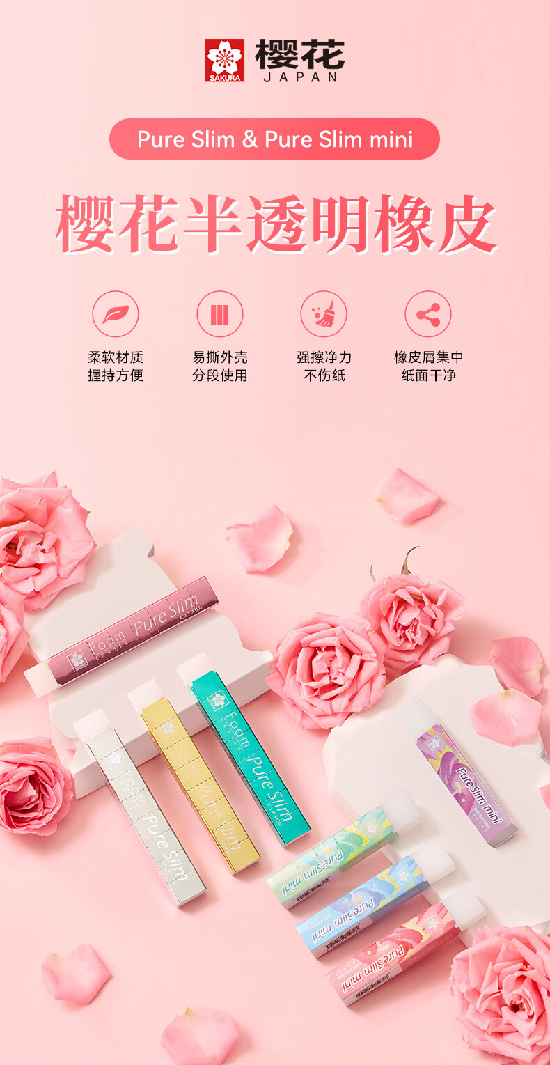 樱花(SAKURA)半透明分段式橡皮擦 PureSlim橡皮(粉红)学生儿童考试美术绘图专用【日本进口】