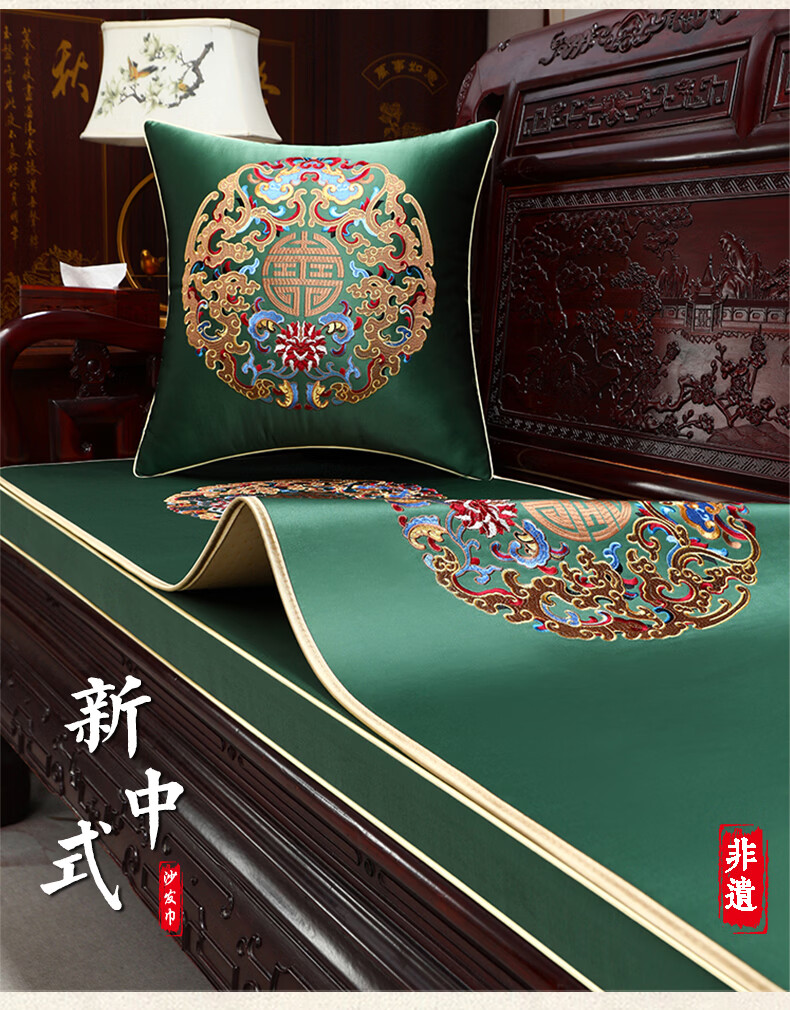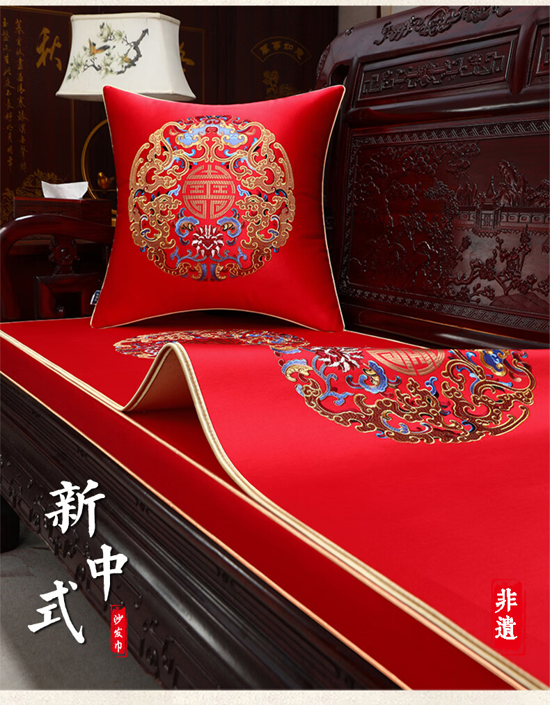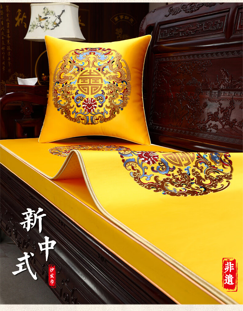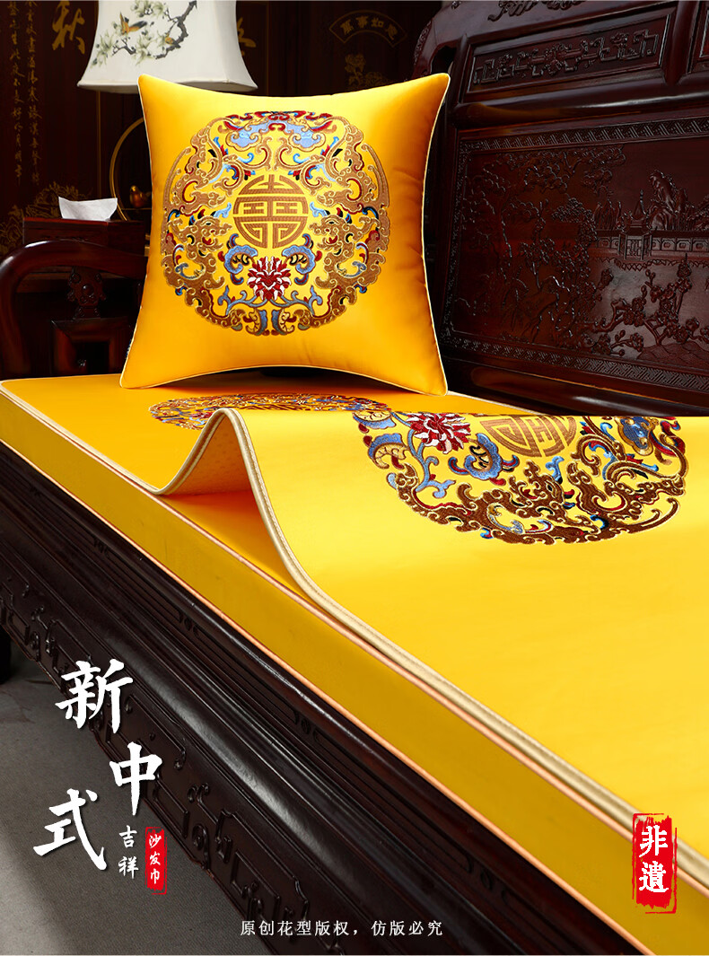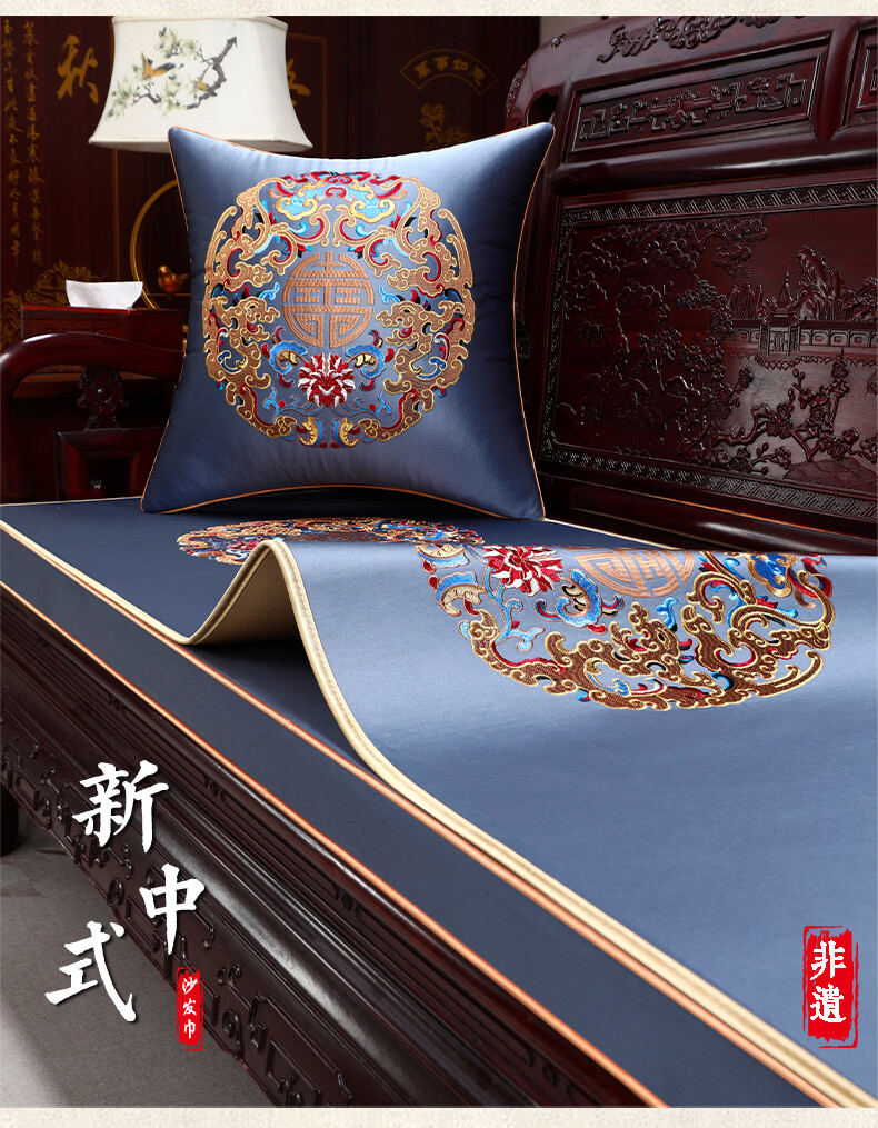 大唐梦沙发垫子高档沙发巾轻奢2026年流行红木沙发盖布新中式背盖巾定制 吉祥 高精密 深蓝【刺绣/防水/防滑】 60cm*60cm【单人坐垫/靠背巾/扶手巾】不含芯