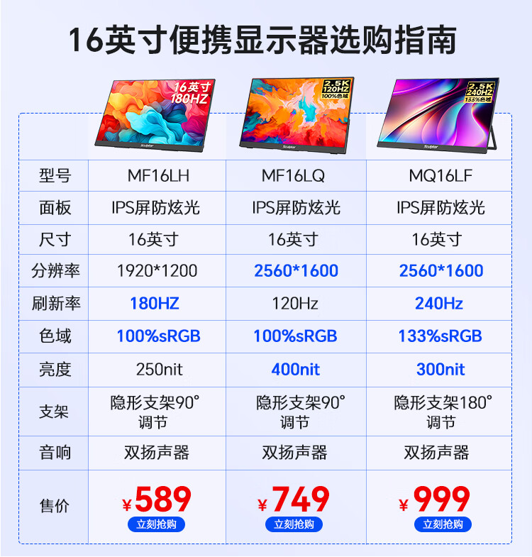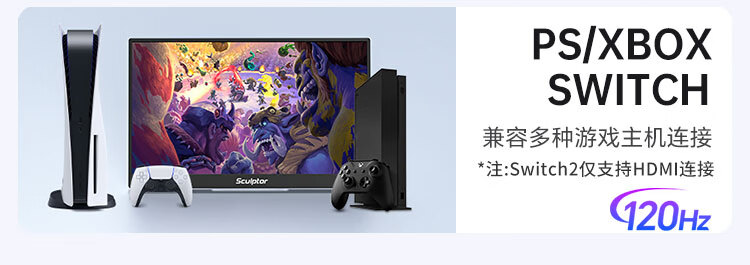 雕塑家16英寸2K/2.5k便携式显示器 120Hz高刷 100%sRGB色域 电脑笔记本副屏switch手机PS5扩展屏MF16LQ