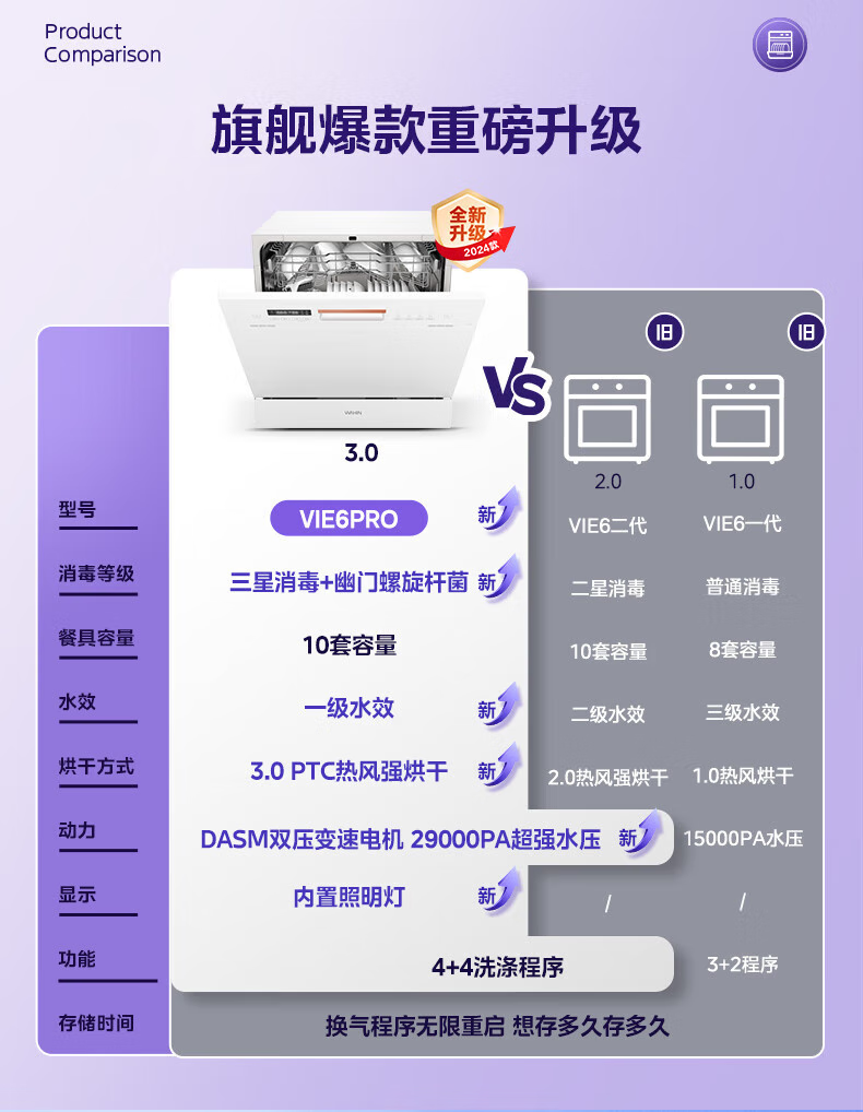 华凌【Vie6Pro】洗碗机嵌入式台式两用灶下10套 热风烘干母婴三星消毒 一级水效AI智能洗 洗消烘存一体 【国家补贴20%】 【美的出品】