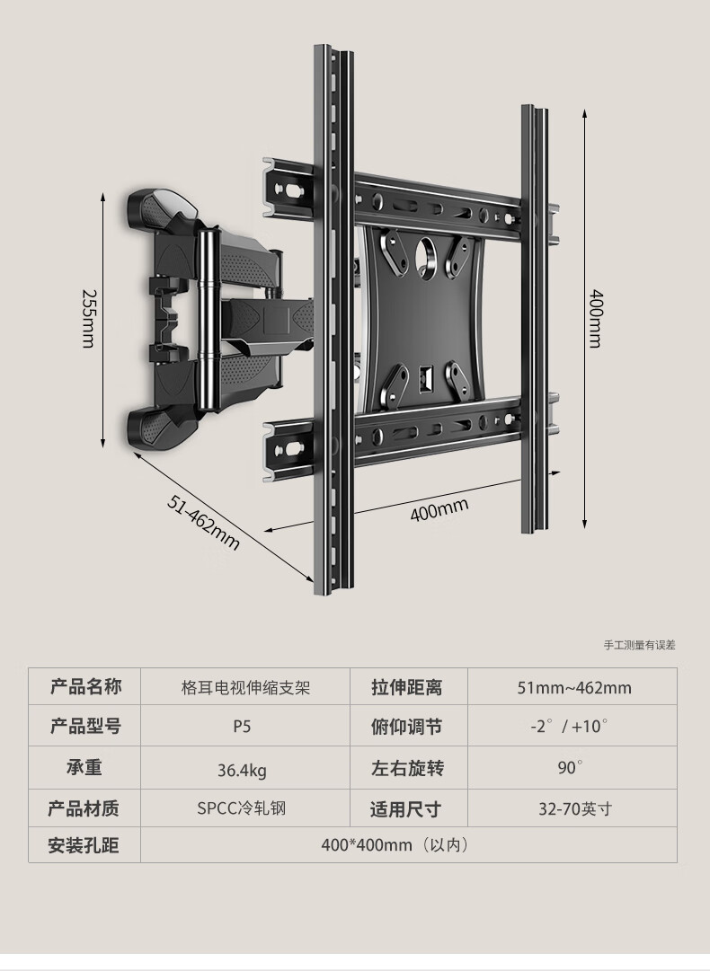 格耳电视支架(32-75英寸)电视挂架电视壁挂架旋转伸缩支架小米海信创维华为通用电视机挂架