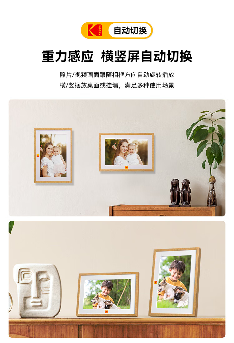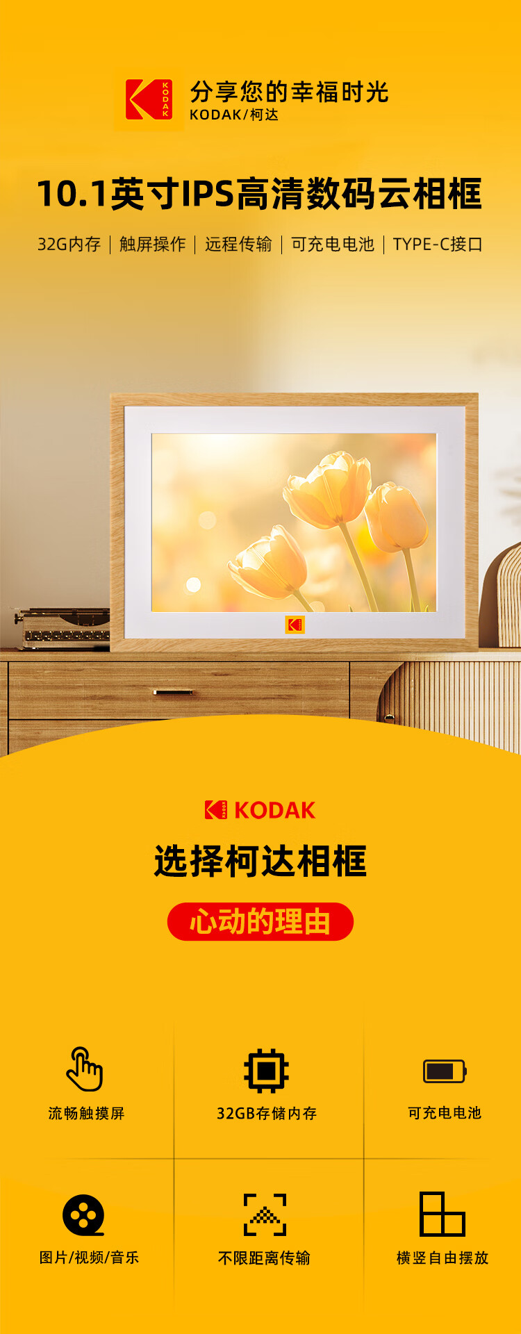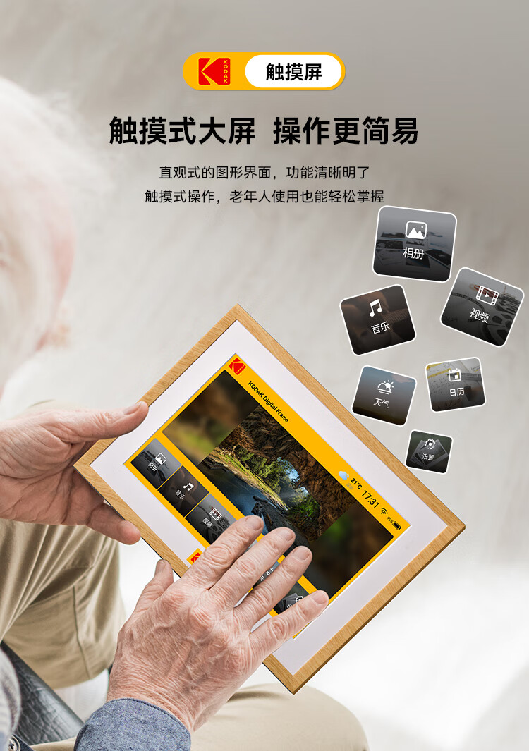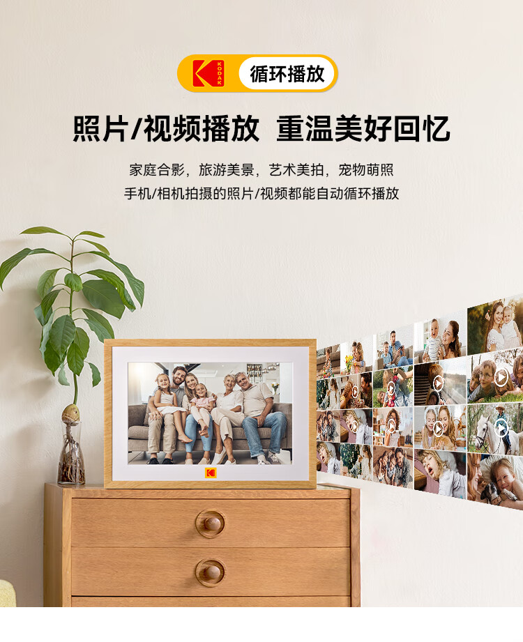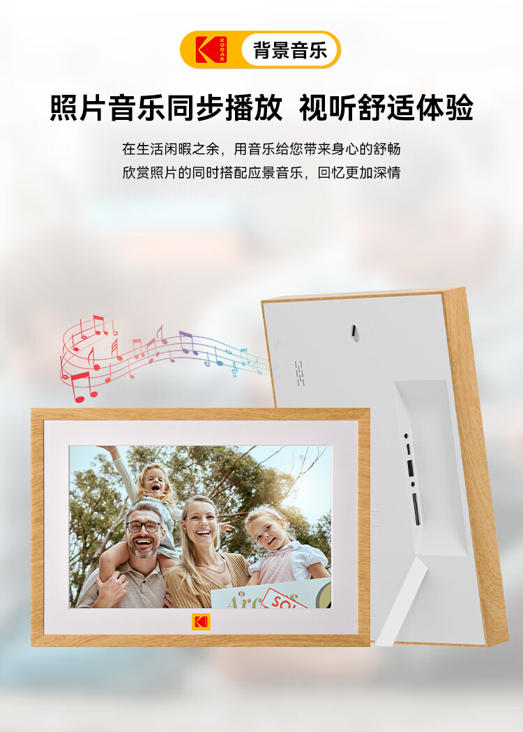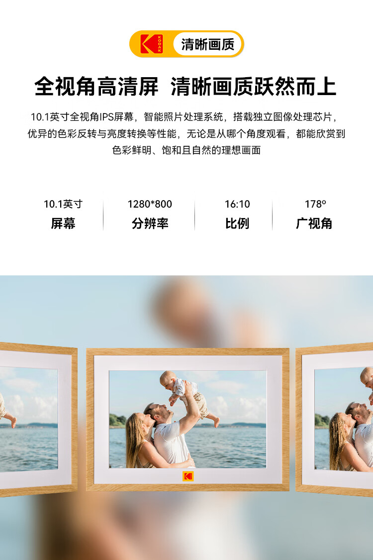KODAK柯达 1005P 数码相框10.1英寸高清电子相册显示屏摆台结婚礼物照片视频播放器可充电可挂墙 木纹色