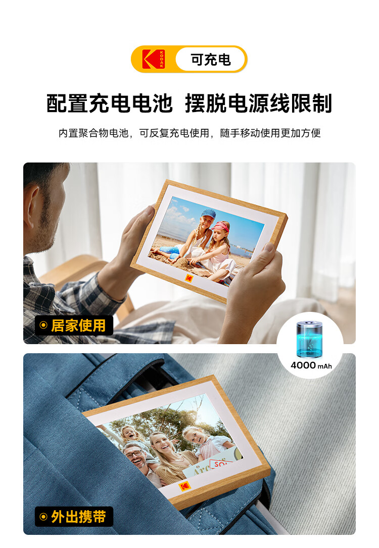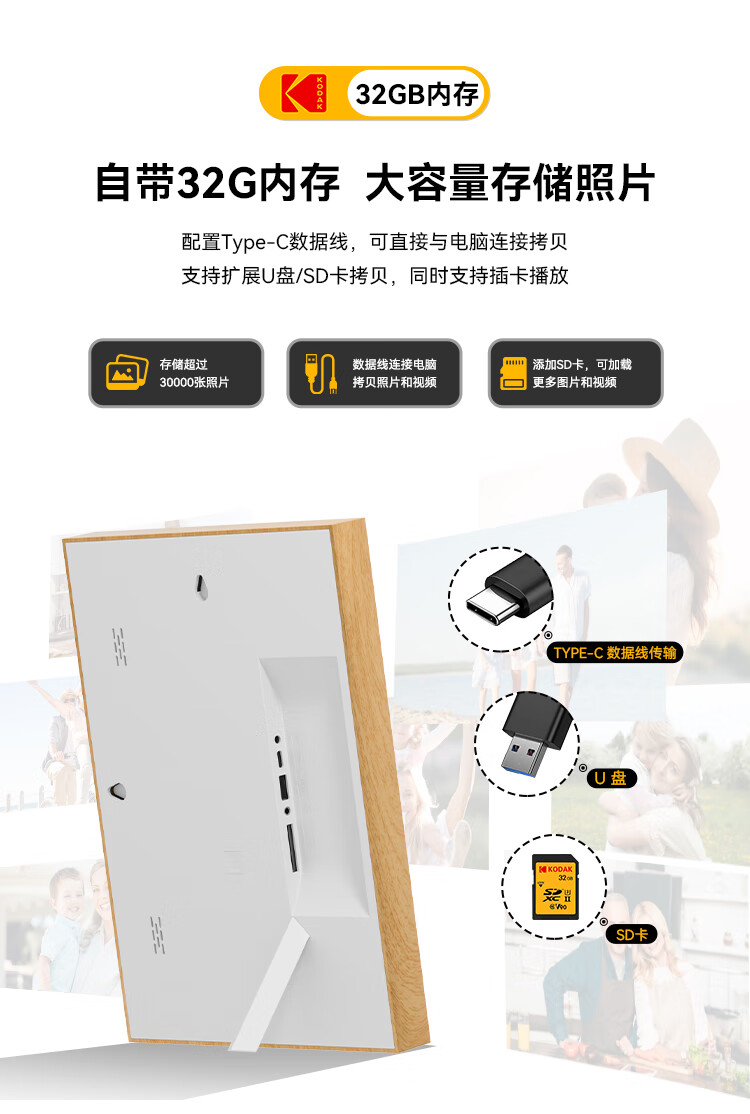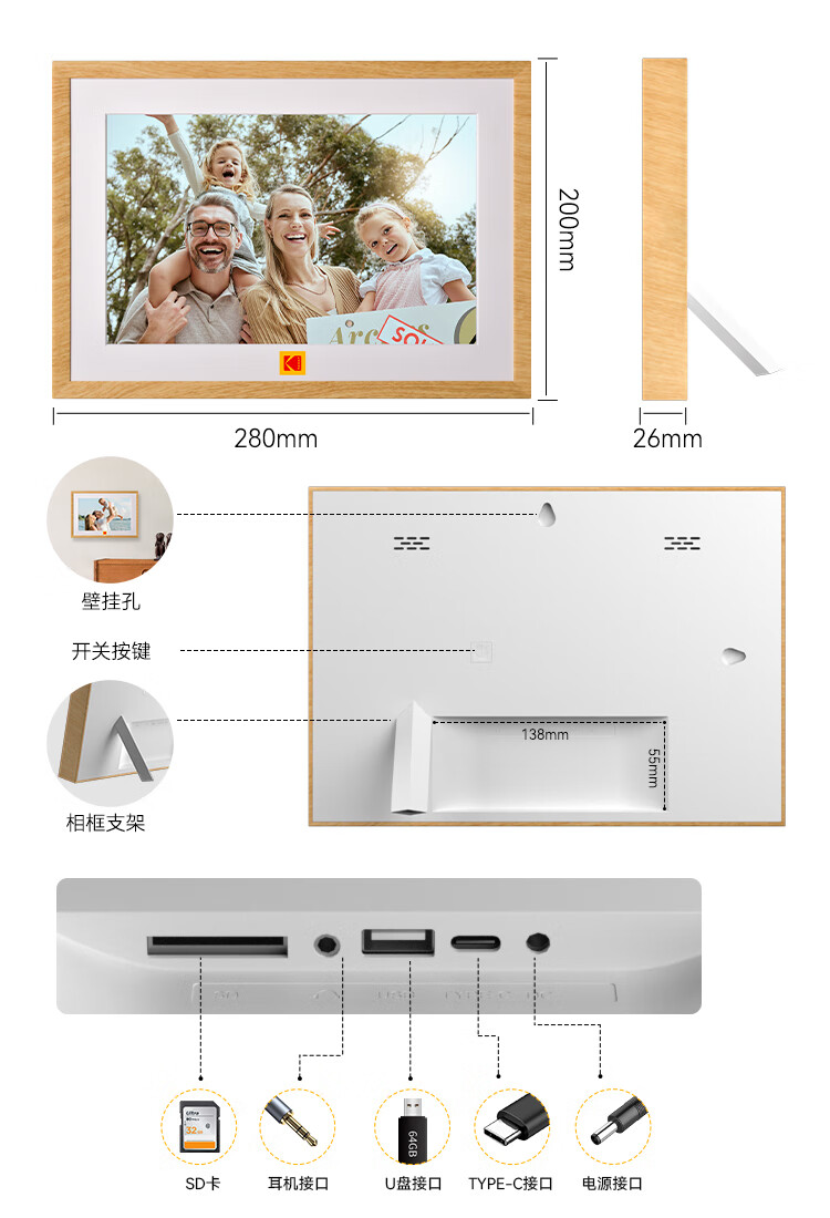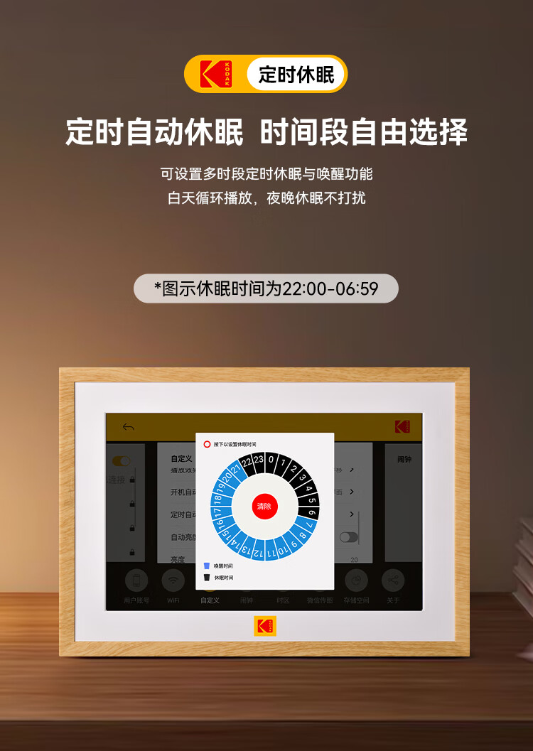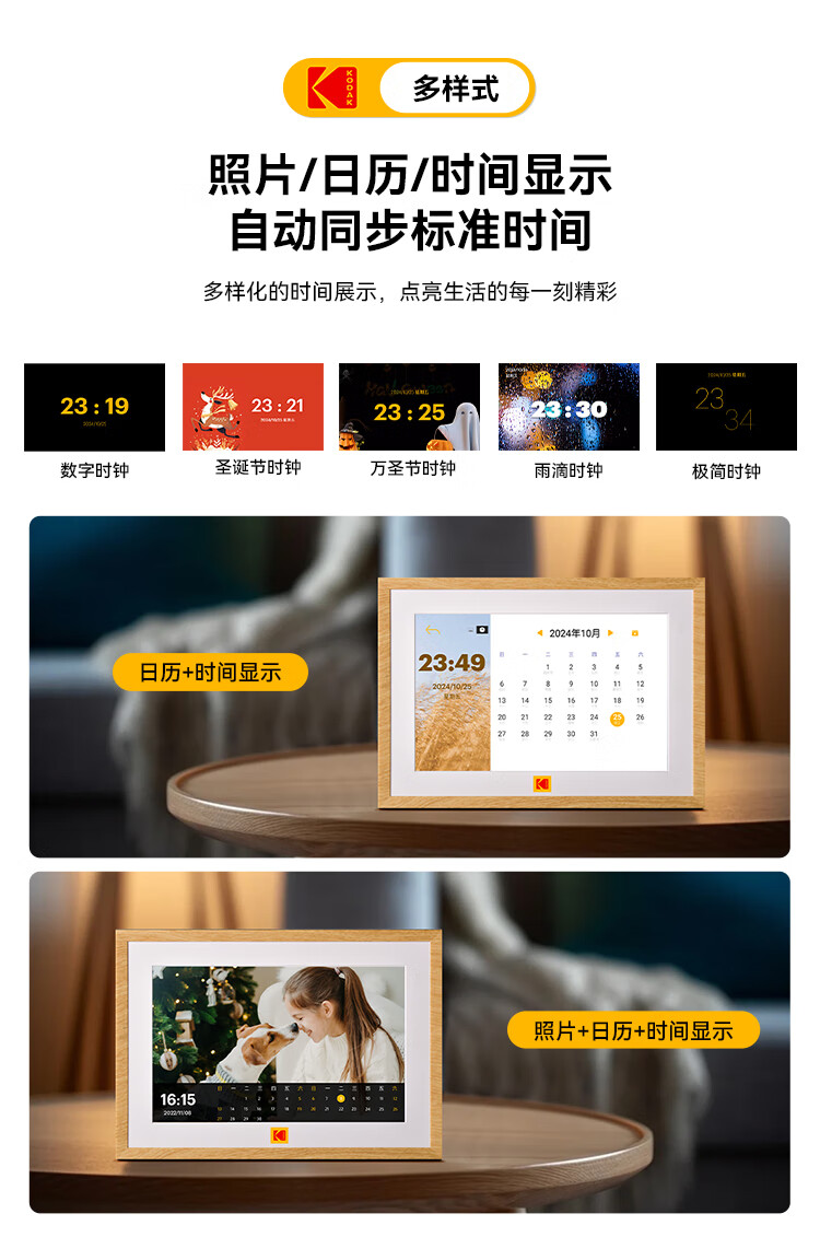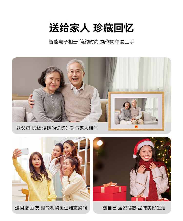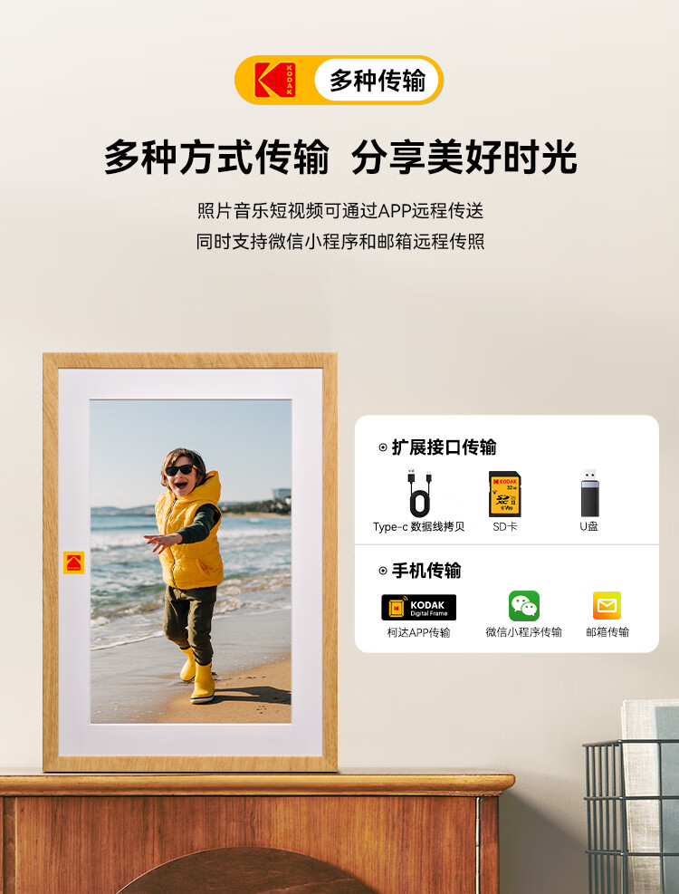 KODAK柯达 1005P 数码相框10.1英寸高清电子相册显示屏摆台结婚礼物照片视频播放器可充电可挂墙 木纹色