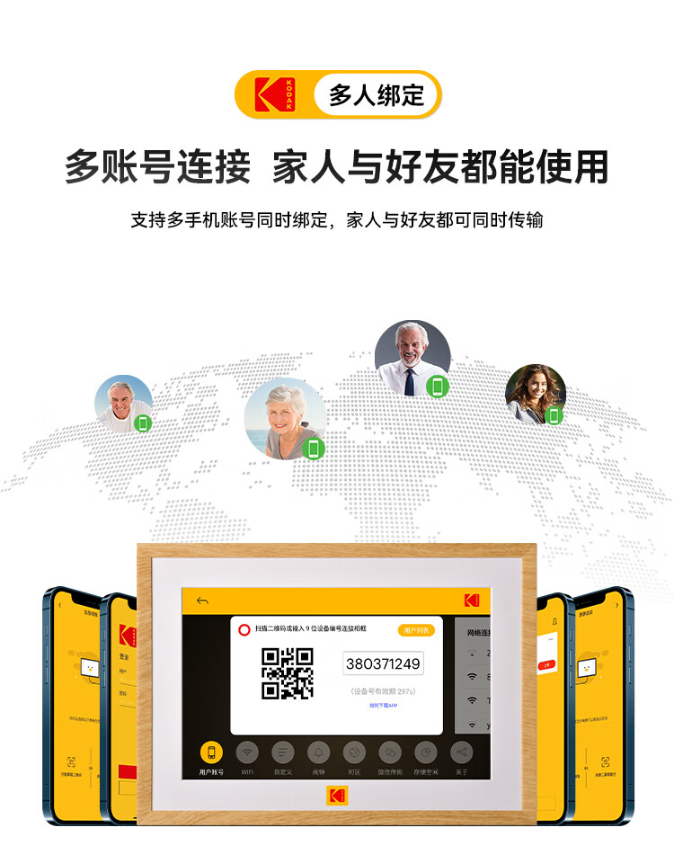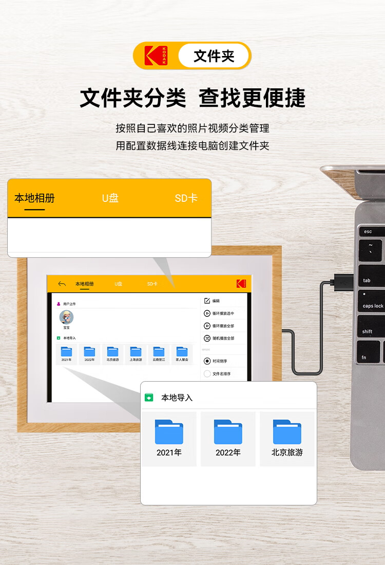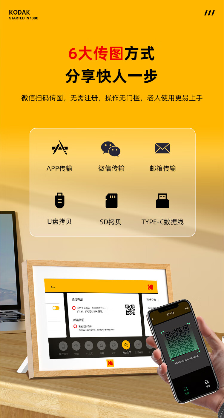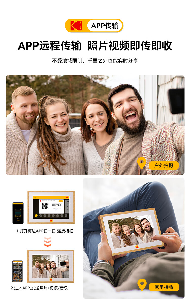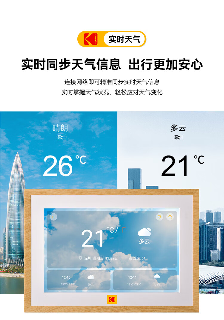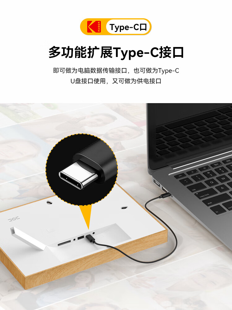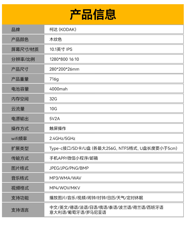 KODAK柯达 1005P 数码相框10.1英寸高清电子相册显示屏摆台结婚礼物照片视频播放器可充电可挂墙 木纹色