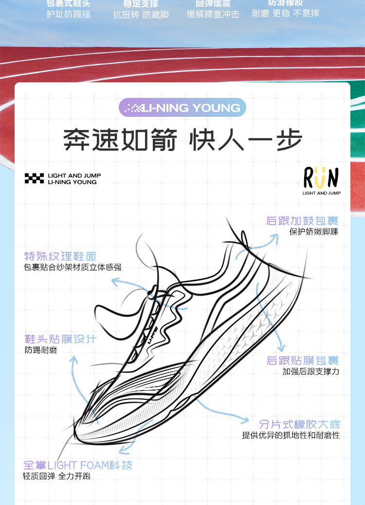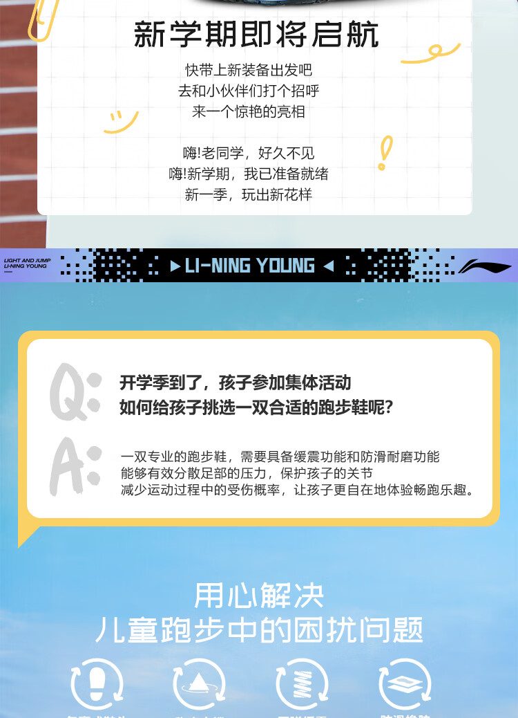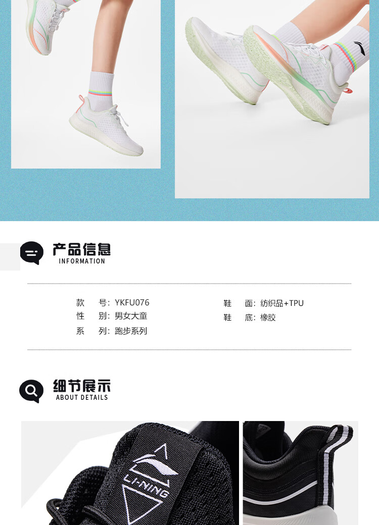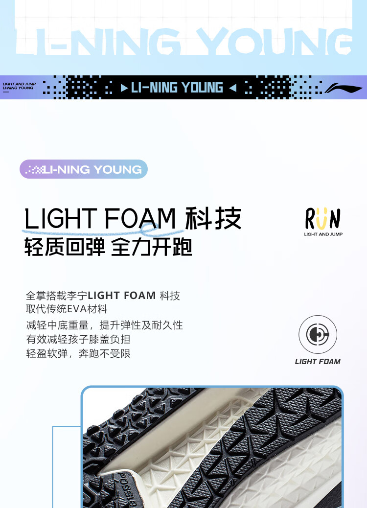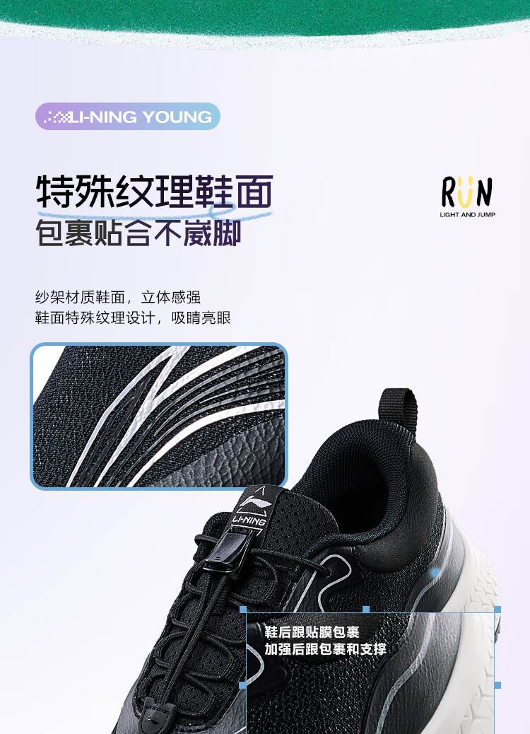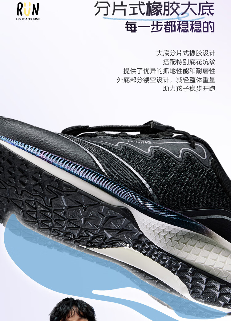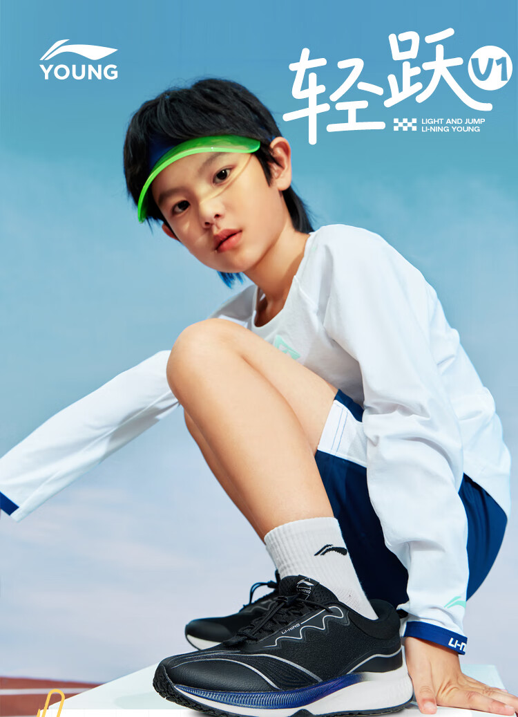李宁童鞋儿童跑步鞋男女大童轻跃V1回弹轻质运动鞋32YKFT086-1
