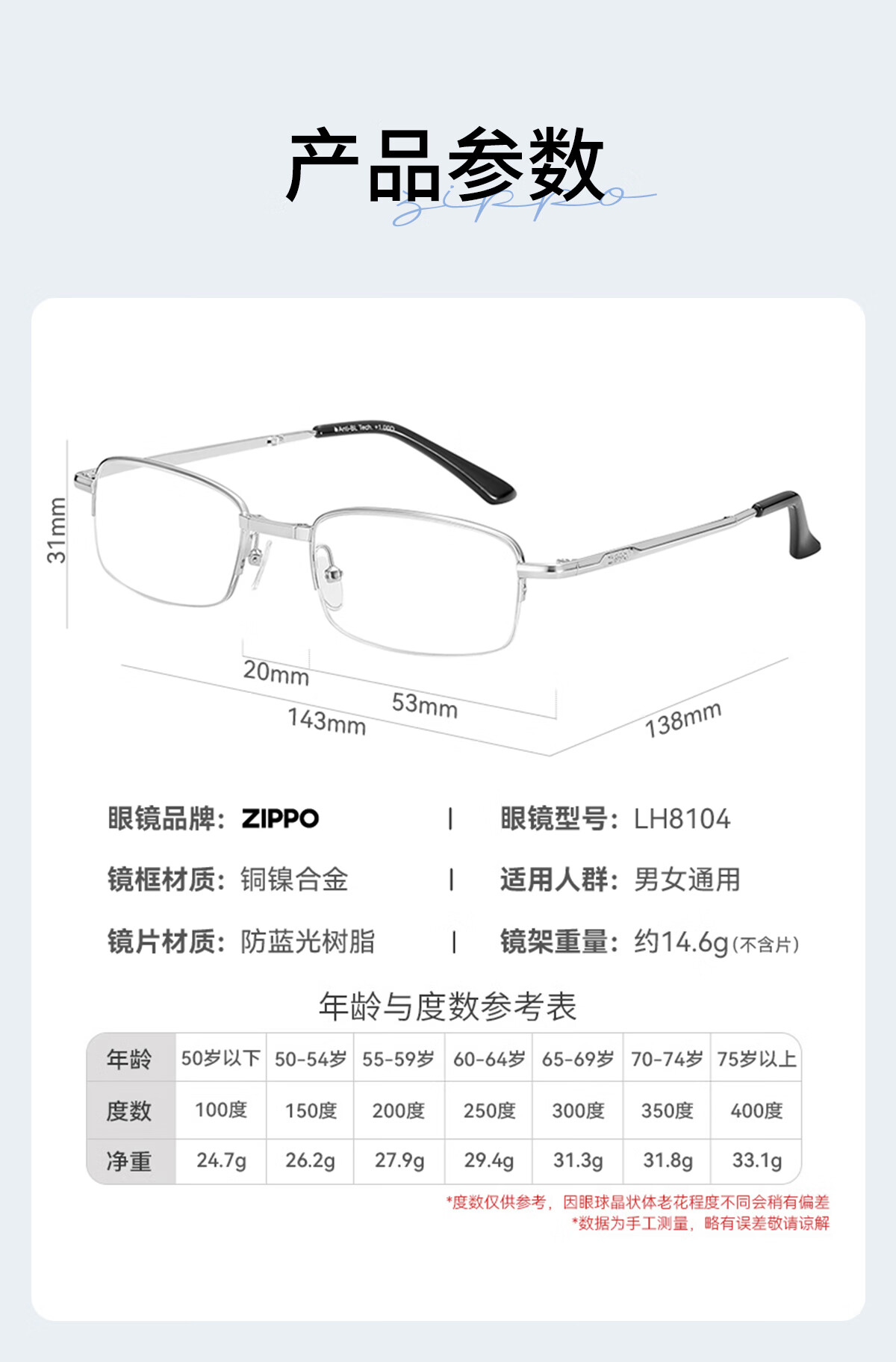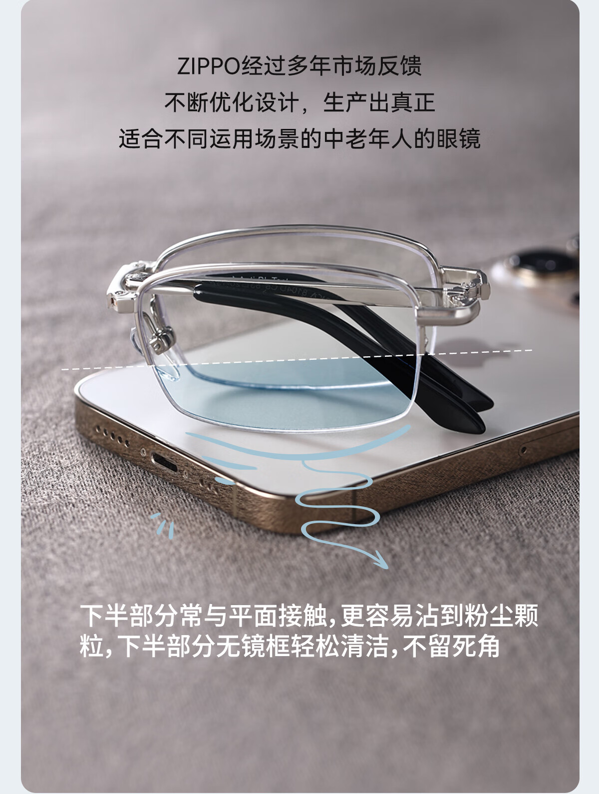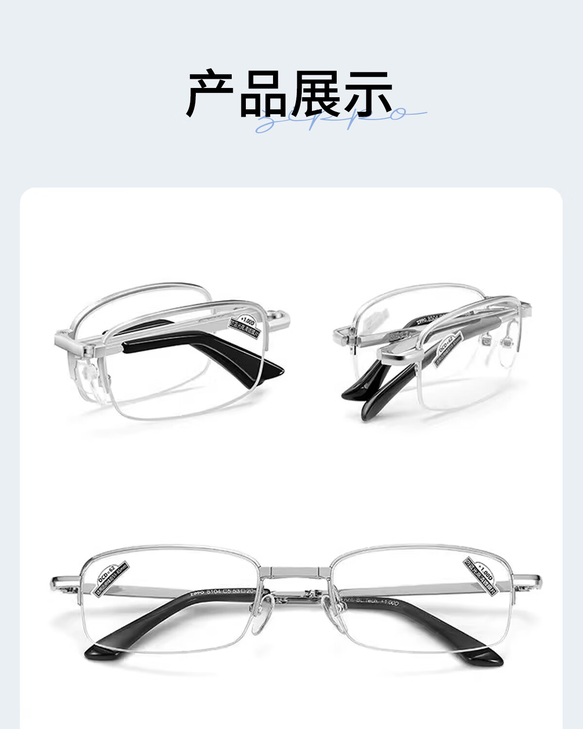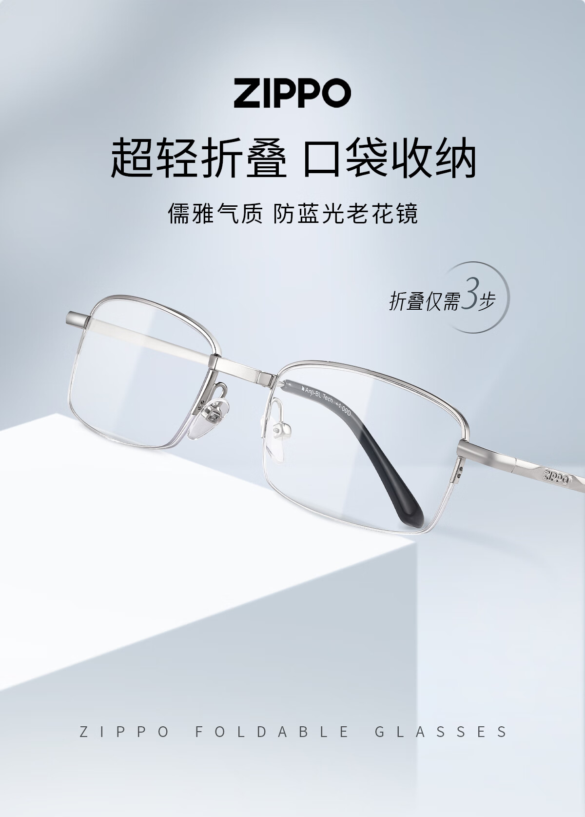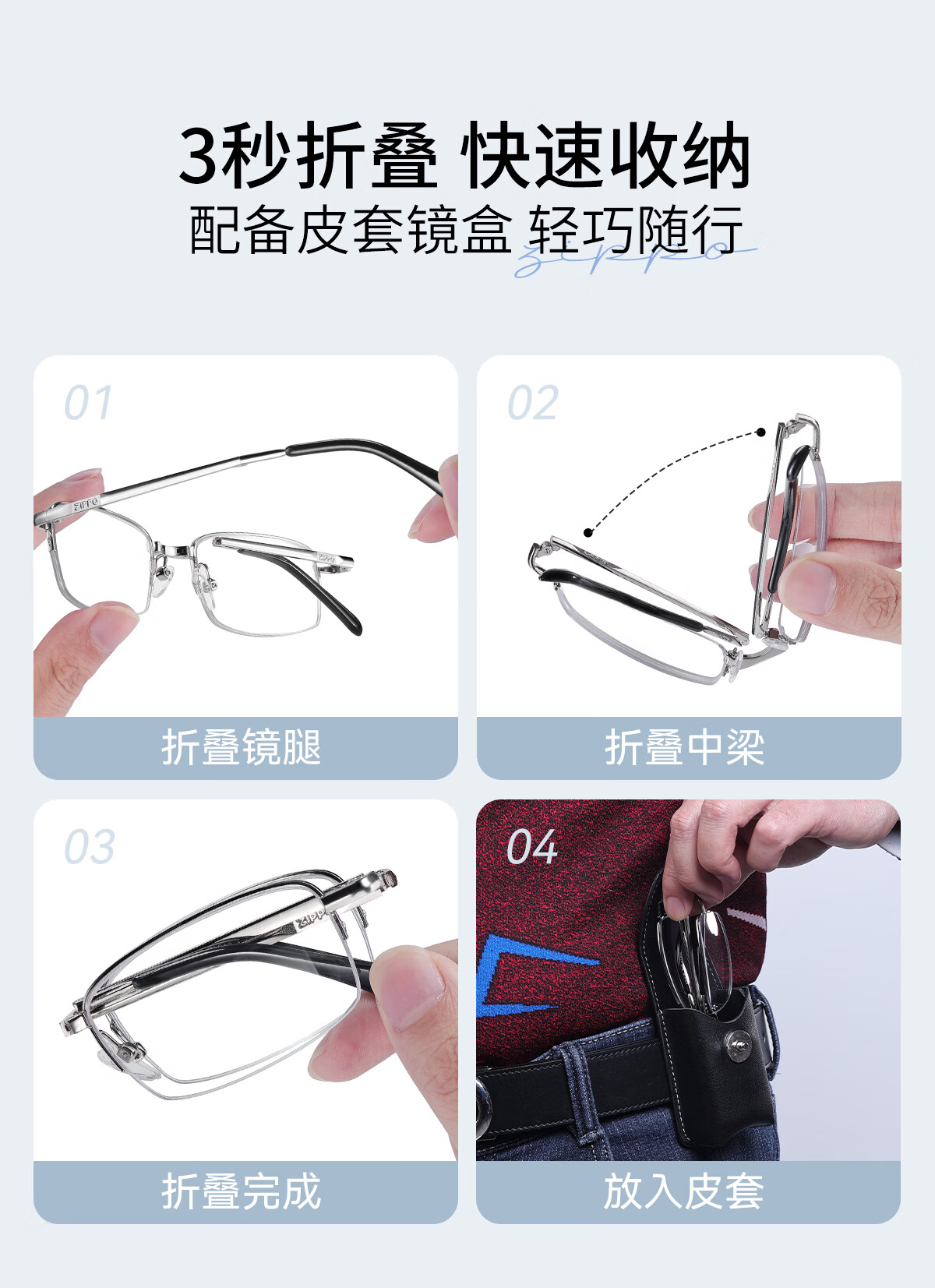 ZIPPO美国折叠便携老花镜进口镜片高清防蓝光男女款8104腰包眼镜 150度
