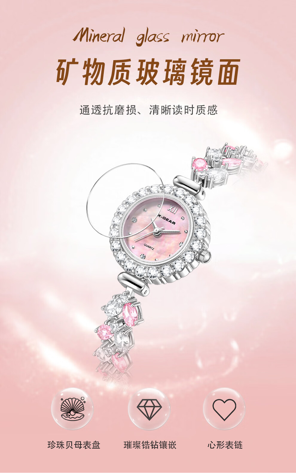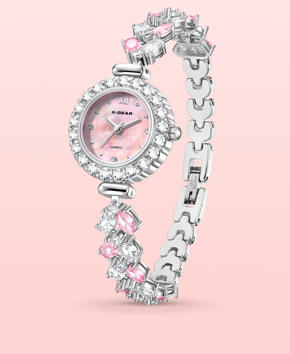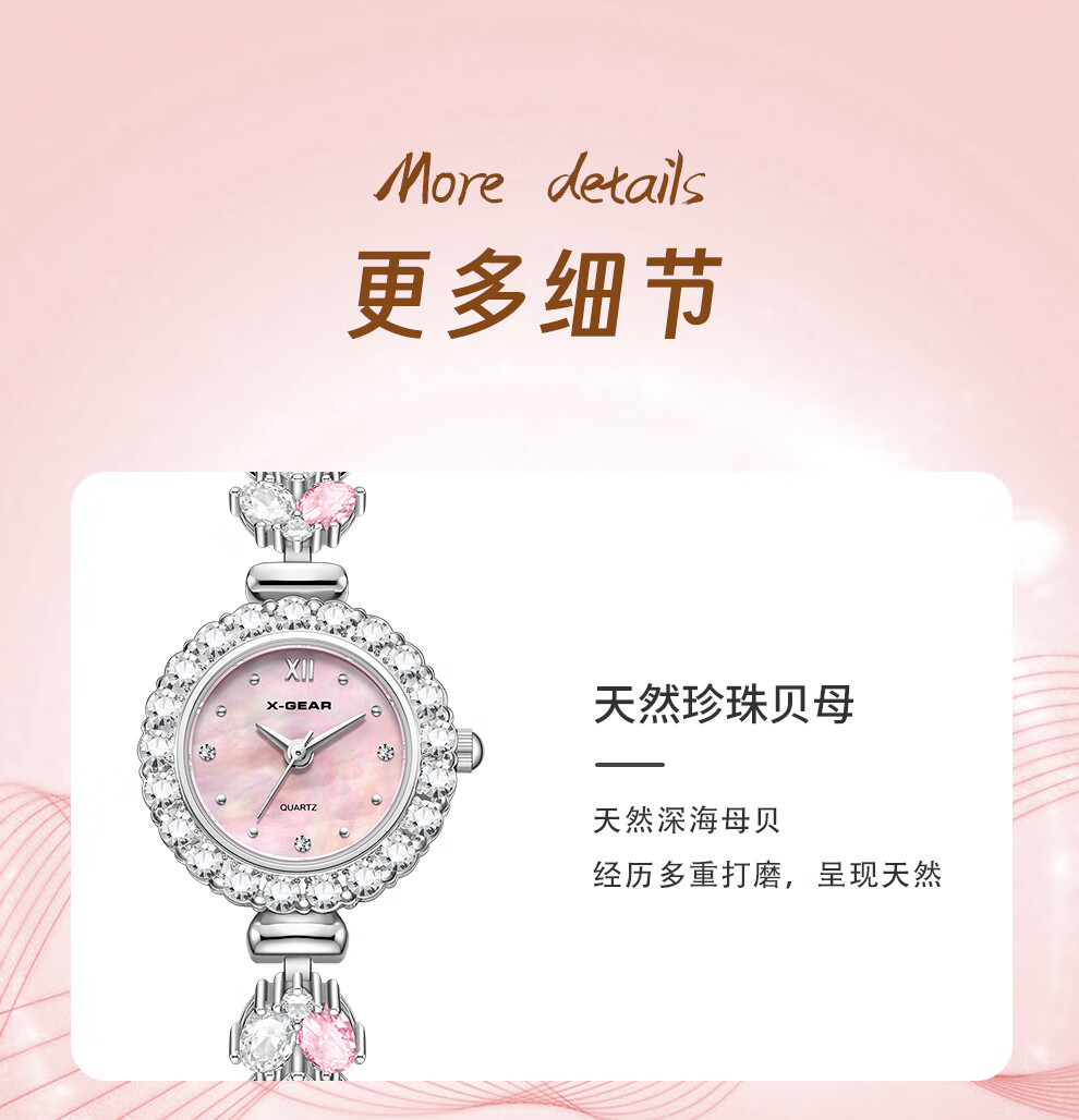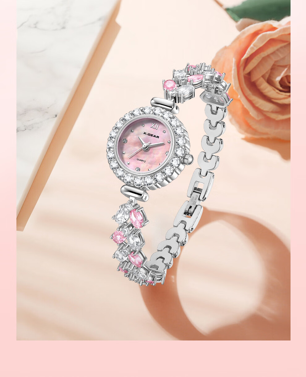 X-GEAR新款琉心手链女表镶钻爆闪贝母表盘甜美高颜值女士腕表生日礼物