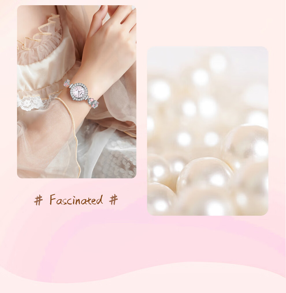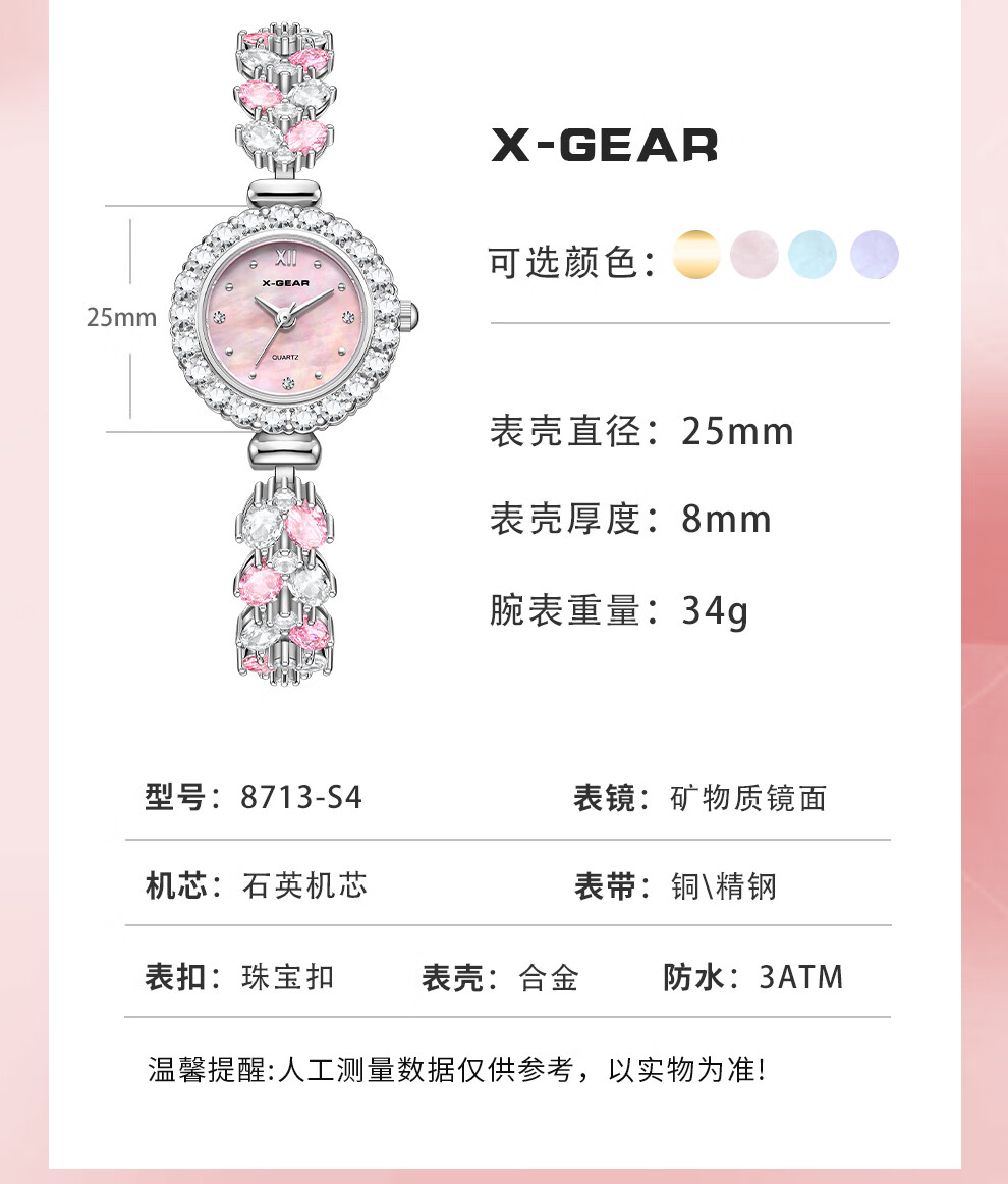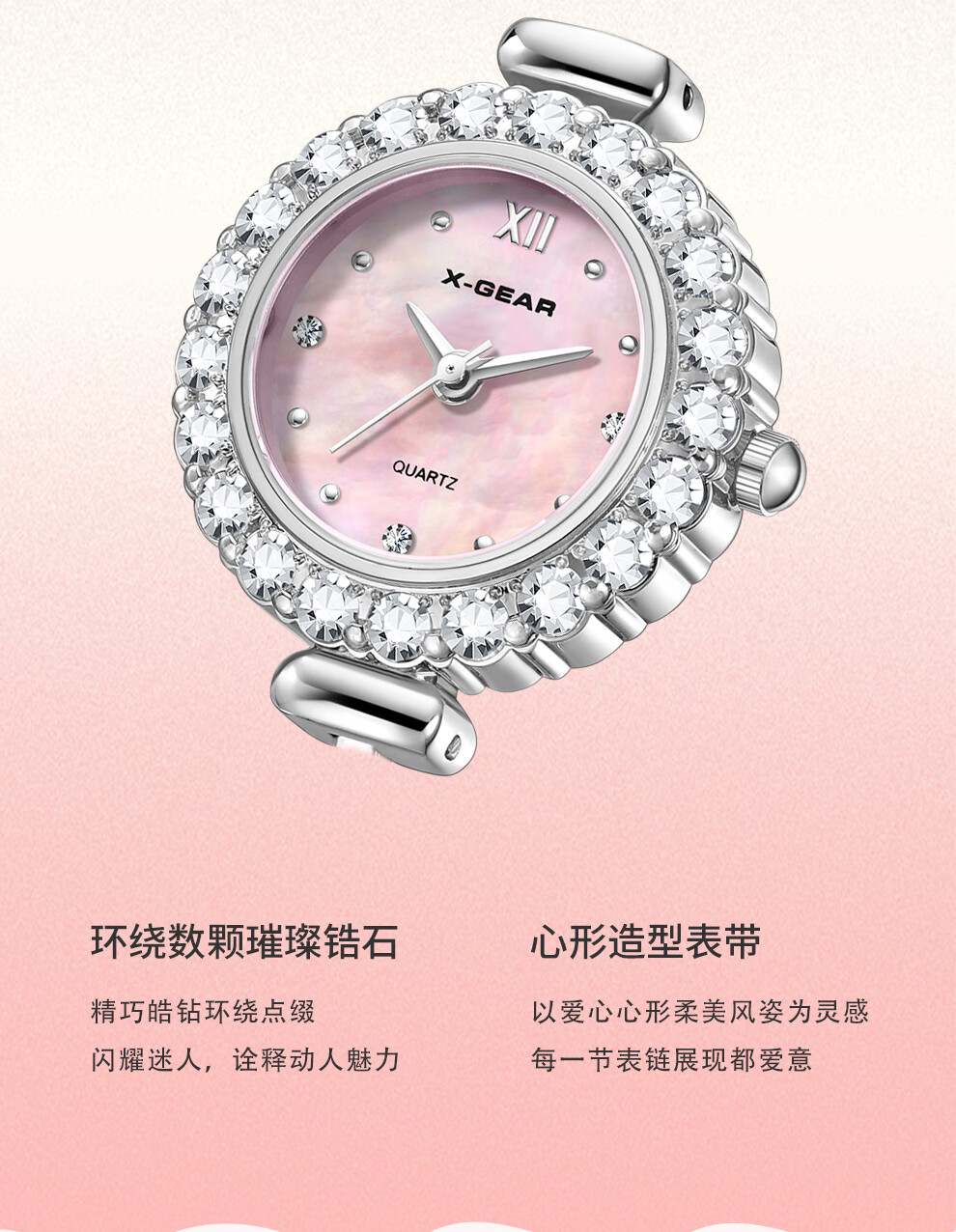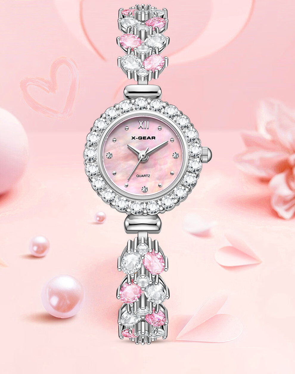 X-GEAR新款琉心手链女表镶钻爆闪贝母表盘甜美高颜值女士腕表生日礼物