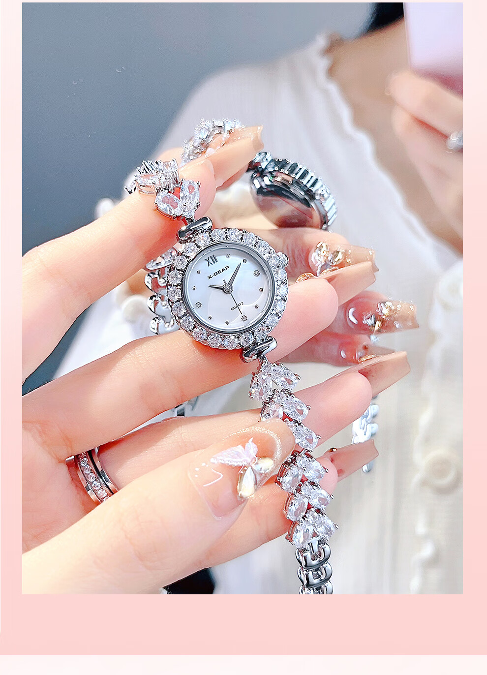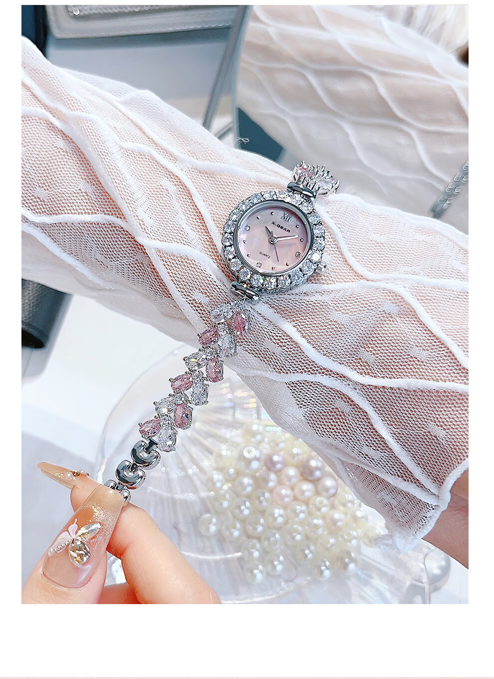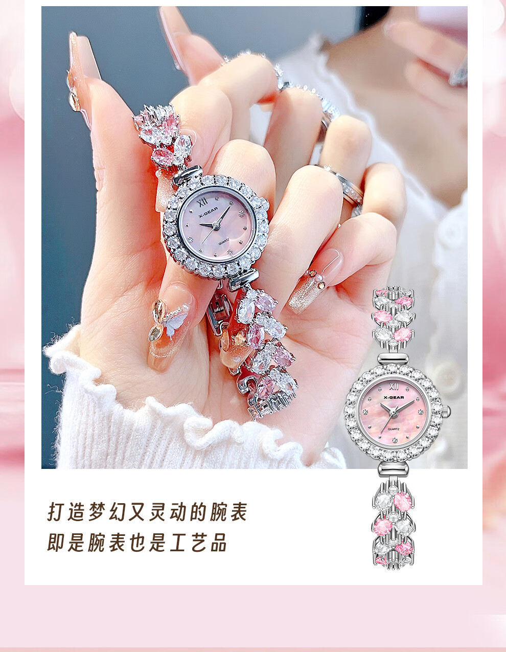 X-GEAR蝶恋花系列爆钻贝母轻奢女表优雅气质手链女士腕表送女友生日礼物