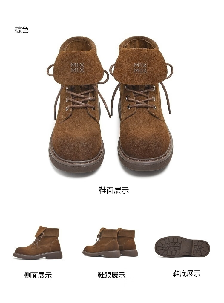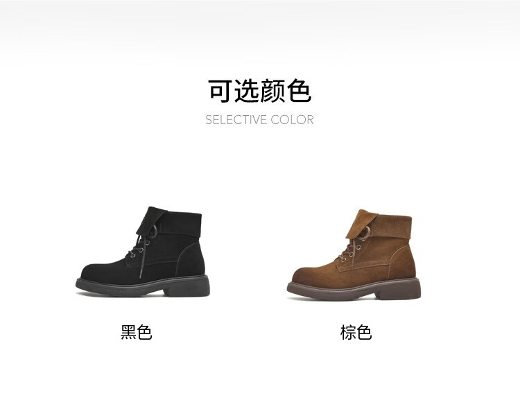 天美意马丁靴商场同款厚底翻领英伦短靴女靴2025新款BL741DZ5 棕色 37