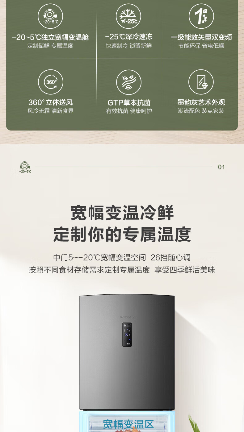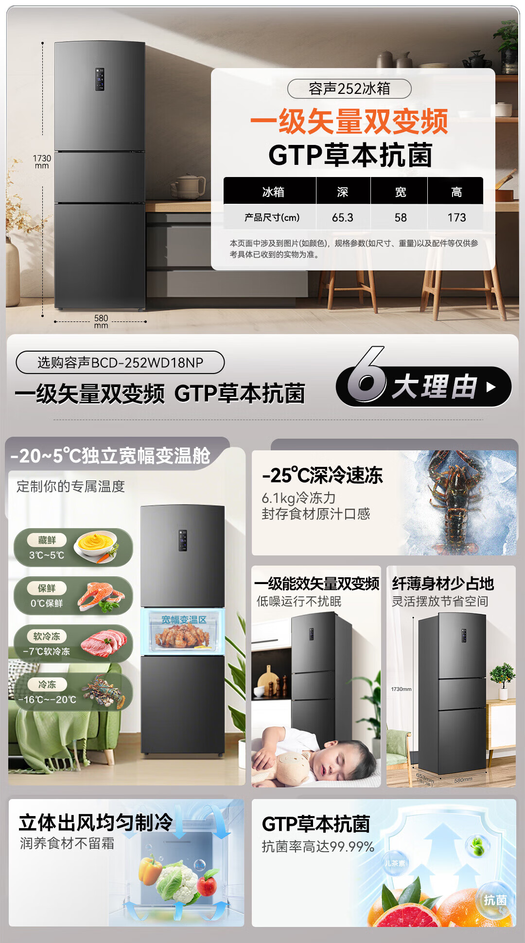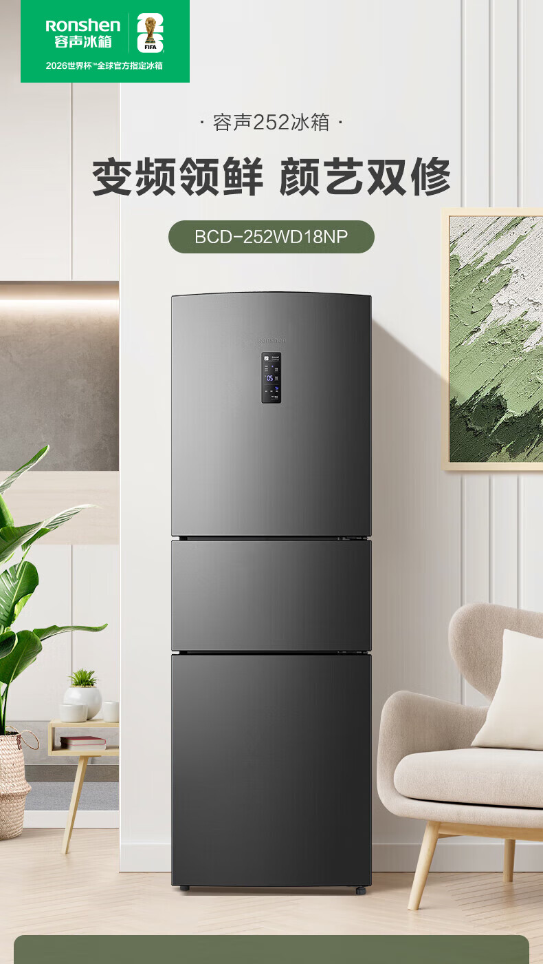 容声【国家补贴】252升三门多门双开门家用电冰箱小型一级能效变频风冷无霜节能省电宿舍租房以旧换新 BCD-252WD18NP 三门风冷无霜冰箱