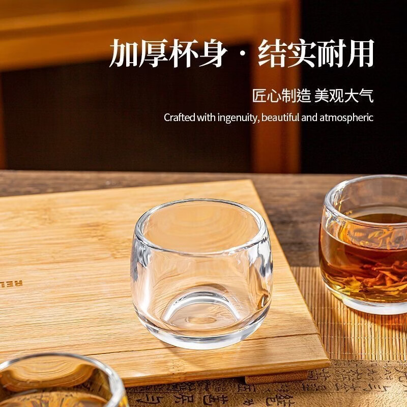 高档主人杯水晶玻璃杯扳指杯透明杯子功夫茶道杯高颜值中式茶杯 透明扳指杯-1个装85ml