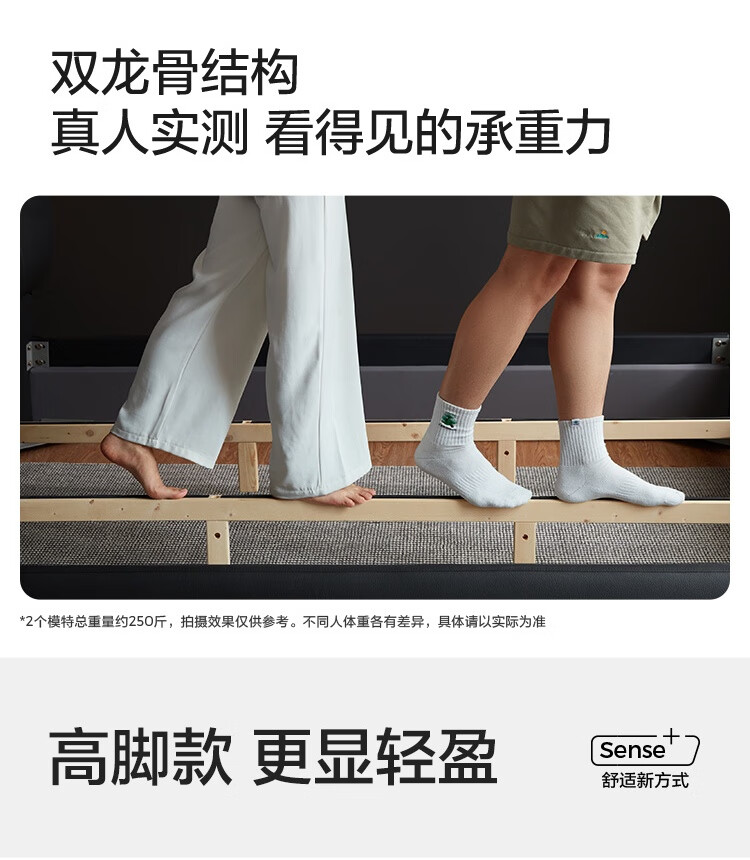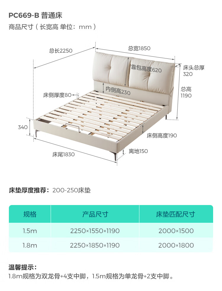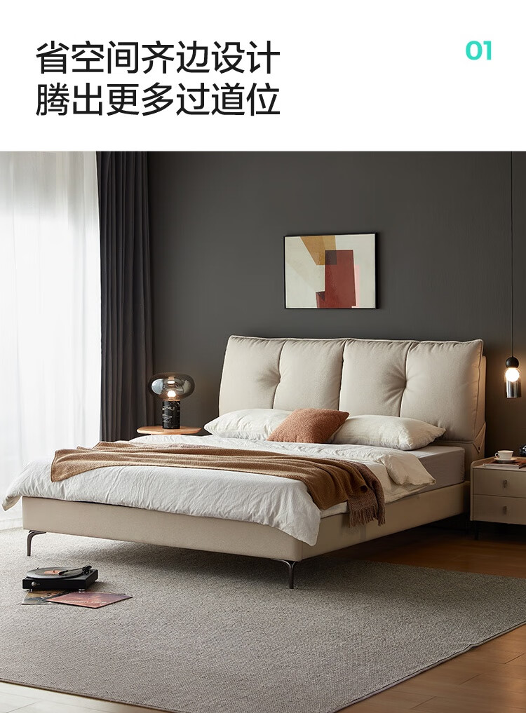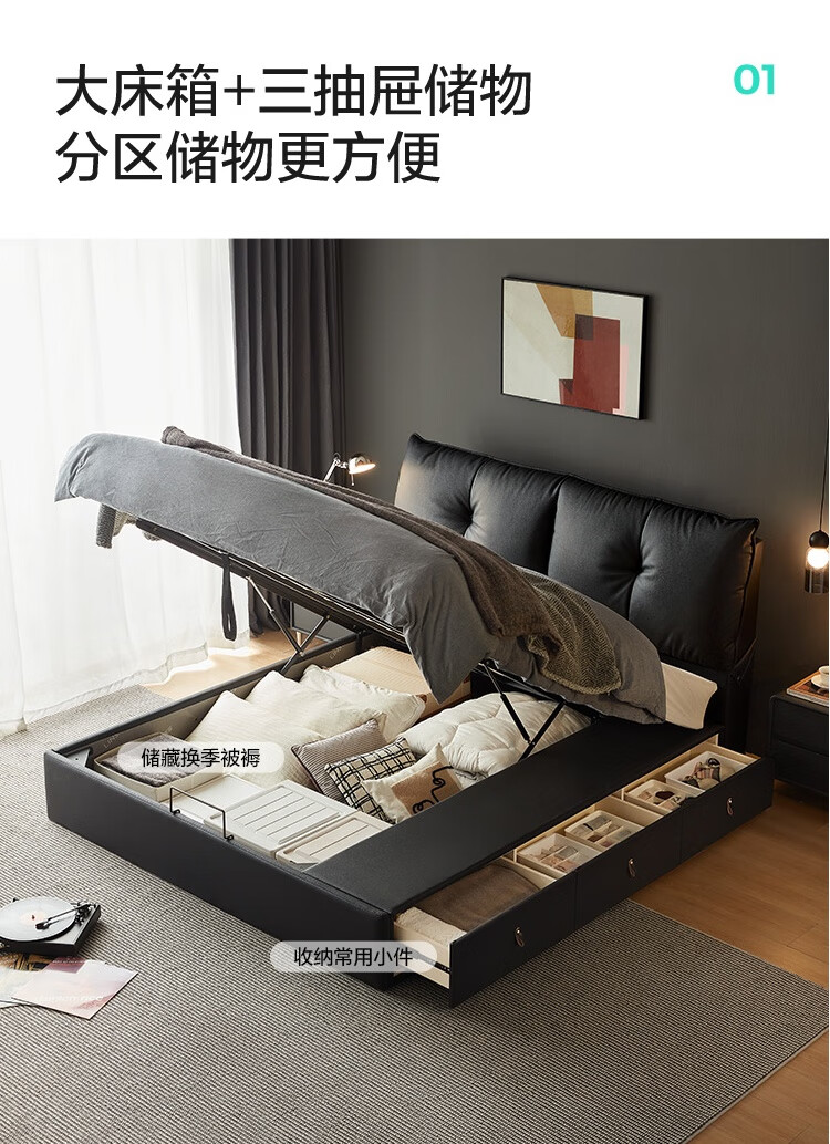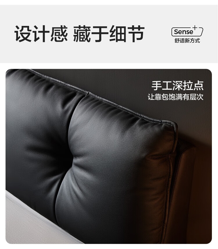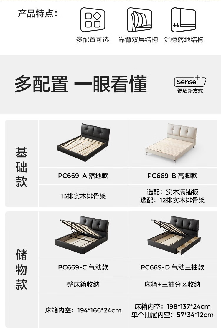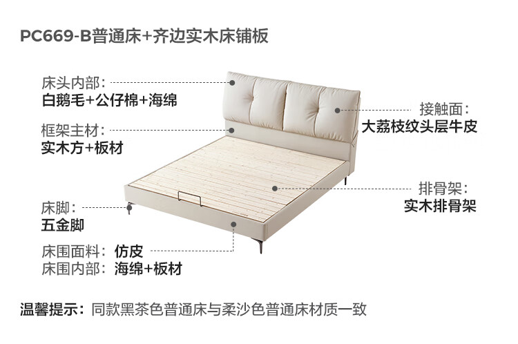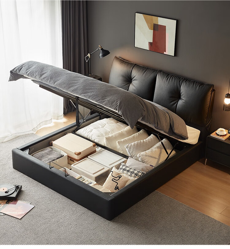 林氏家居双人床1.8米大黑牛意式极简床落地真皮高端大气主卧软包床PC669 黑茶色【落地床】可选净味棕垫 1.5x2.0米 组合样式 单床