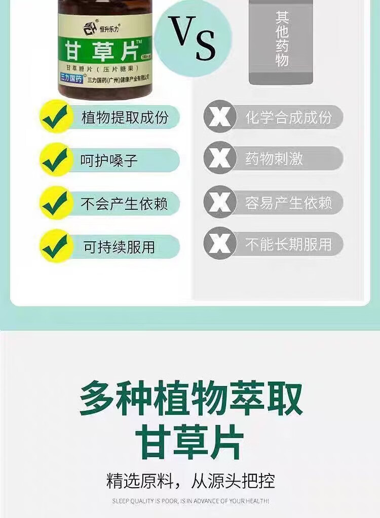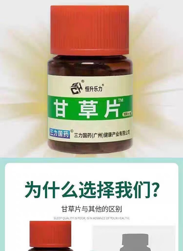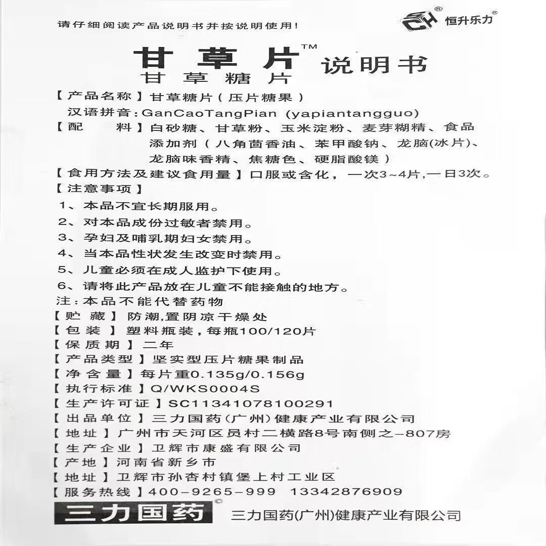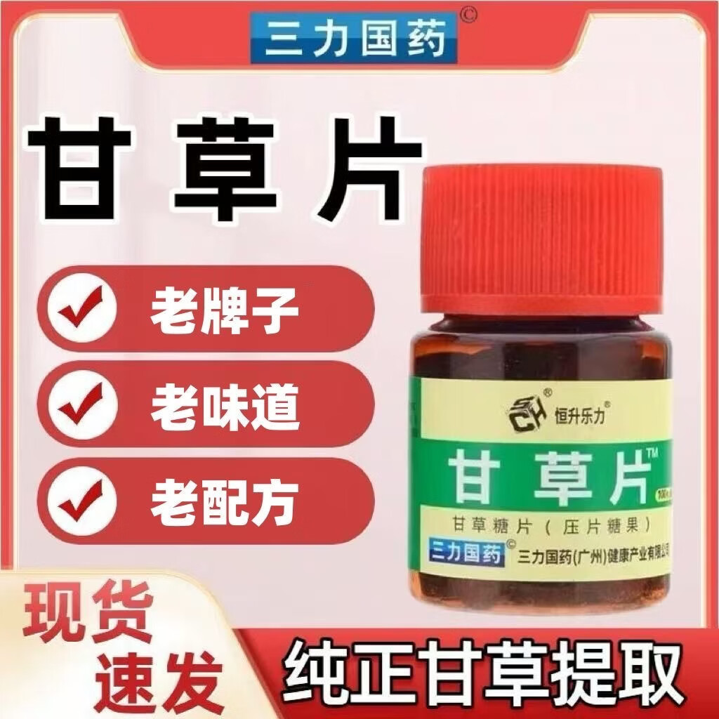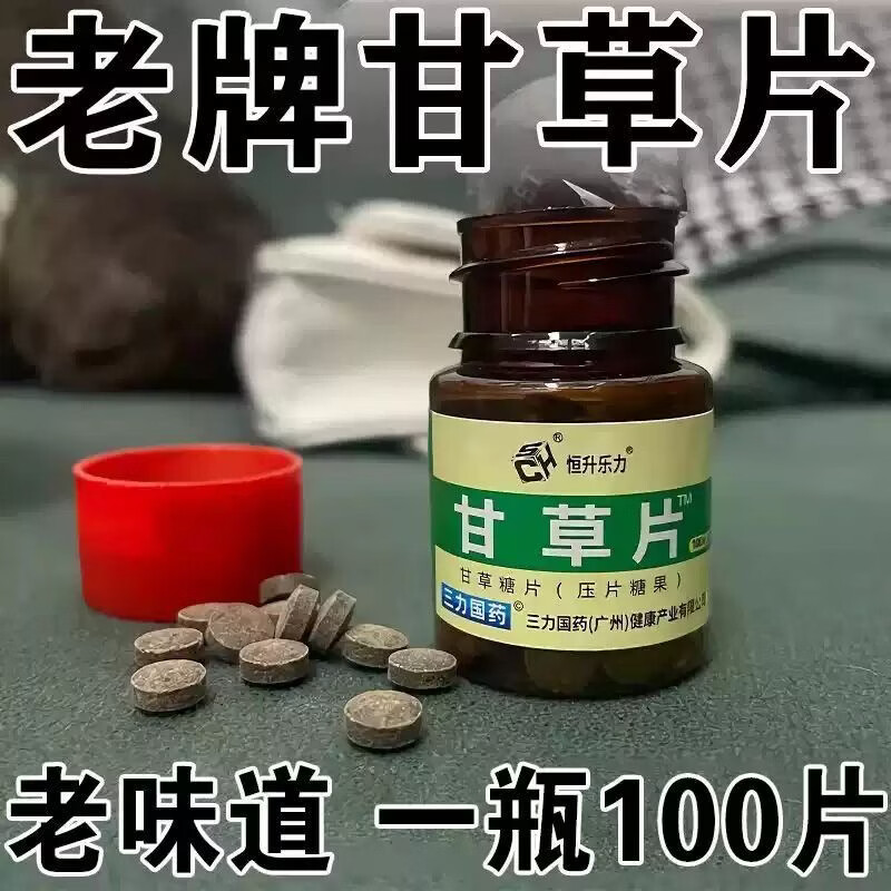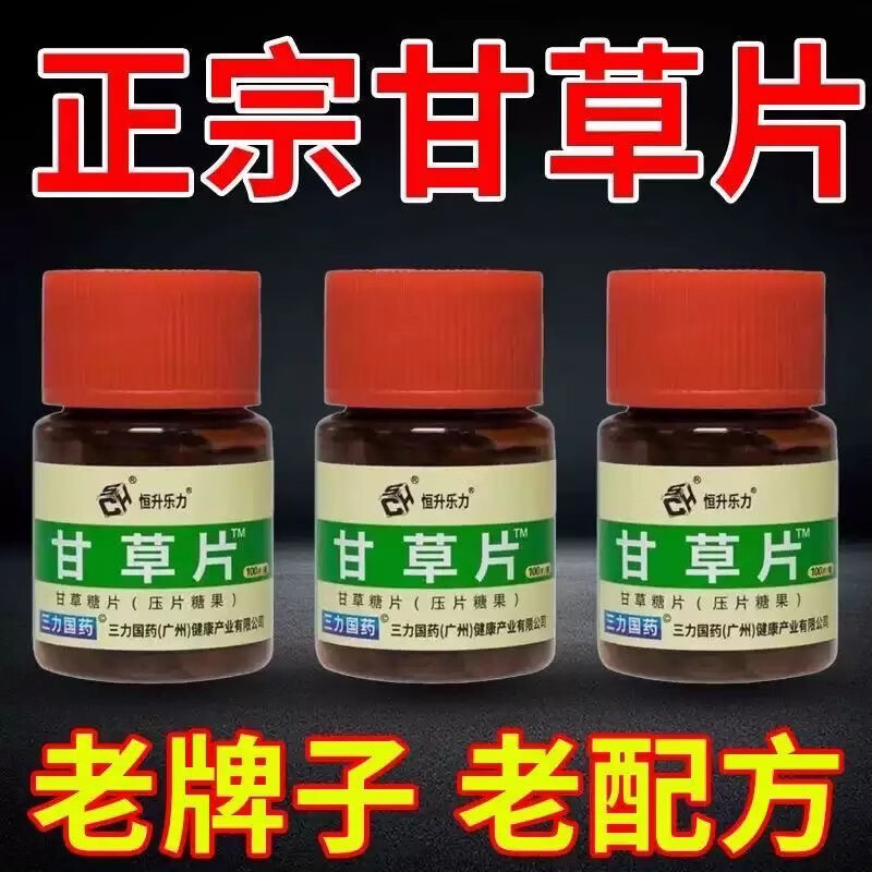 甘草片成人老人咳嗽药食同源100片正品老牌子咳可用三力国药 甘草片 100片*1瓶