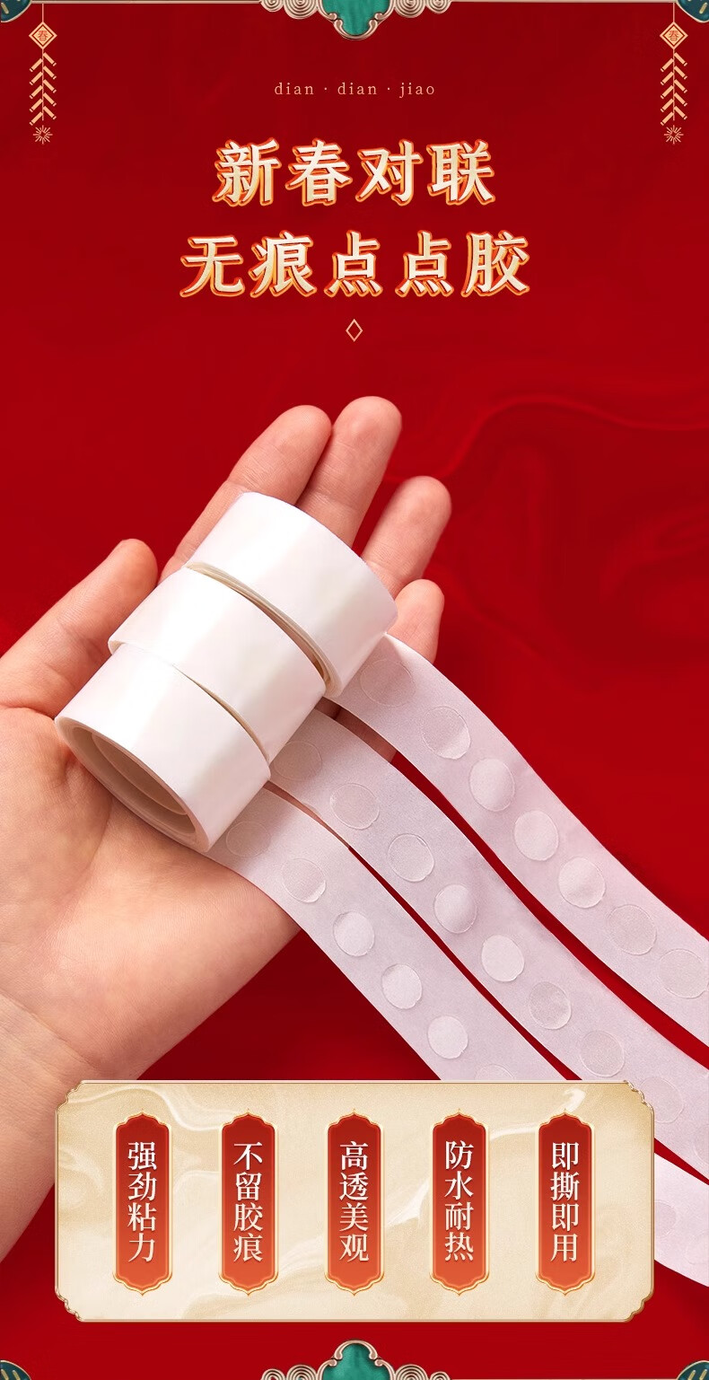 六品堂100枚无痕双面点点胶对联福字窗花专用高粘度强力固定不伤墙不留痕纳米透明贴手帐错题圆点胶