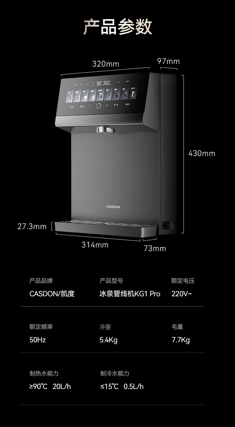 凯度(CASDON)管线机壁挂式家用直饮机餐边柜制冷制热一体饮水机冰泉KG1Pro杨幂同款