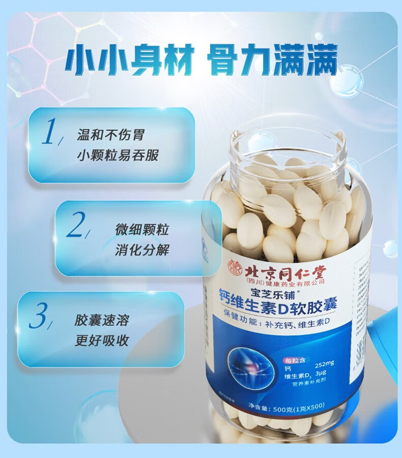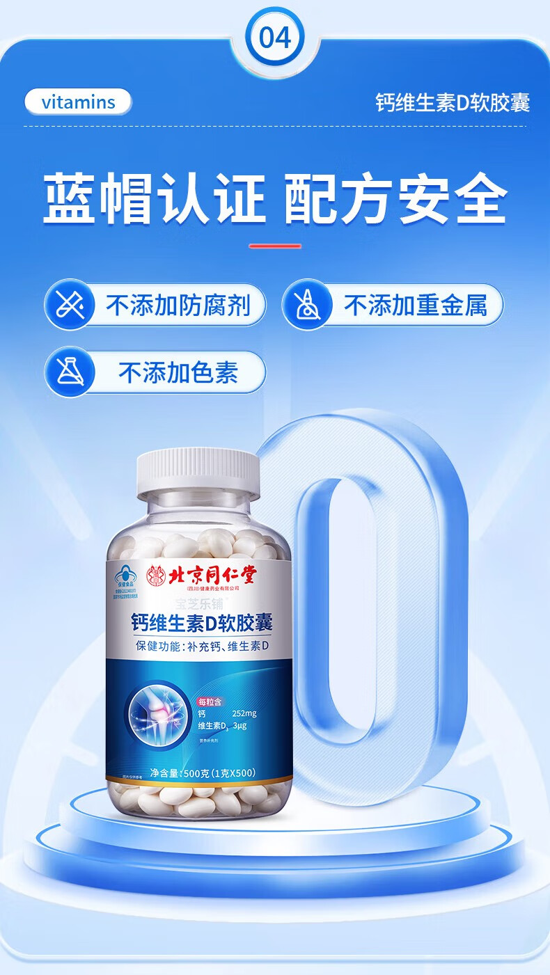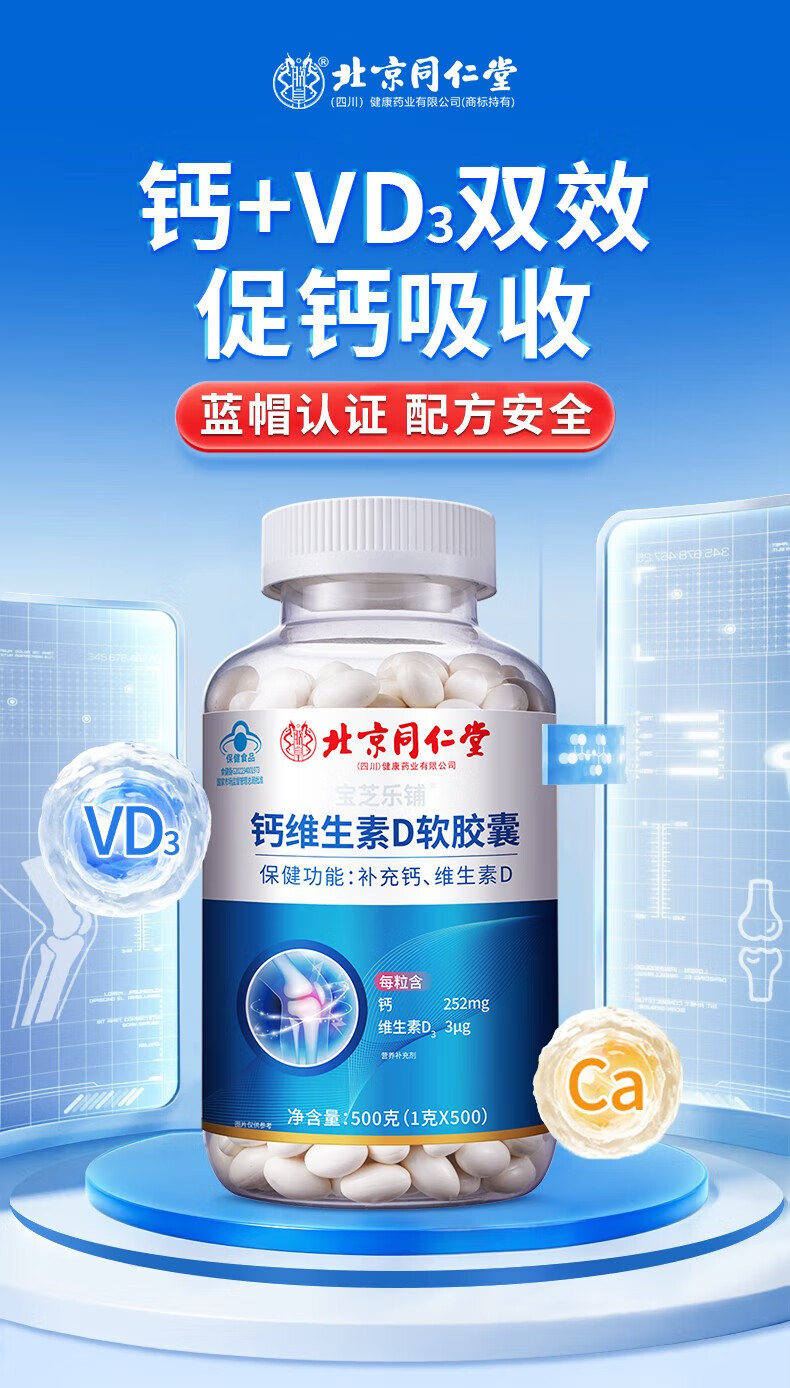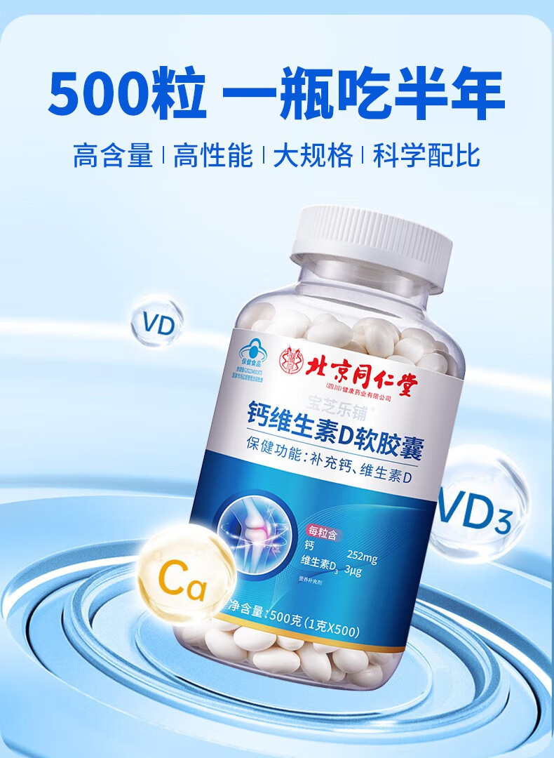 朕皇北京同仁堂钙片中老年补钙液体钙骨质疏松维生素D腰腿抽筋疼500粒 【1盒体验装】