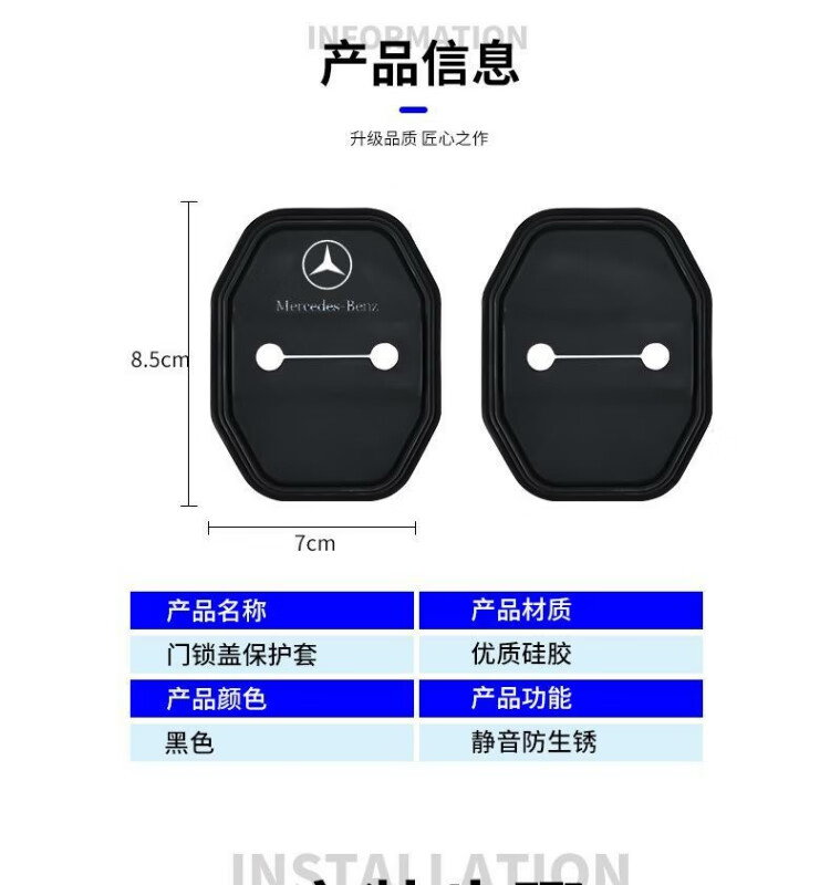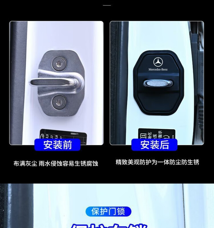 适用于奔驰硅胶门锁减震套C200LGLC260LA200LGLB200E300L门锁盖新 10-25款【奔驰E级】四个装