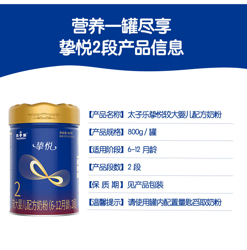 太子乐(Taizile)【购6罐赠1罐】挚悦配方奶粉2段(6-12个月婴幼儿适用)800g 2段 800g 6罐
