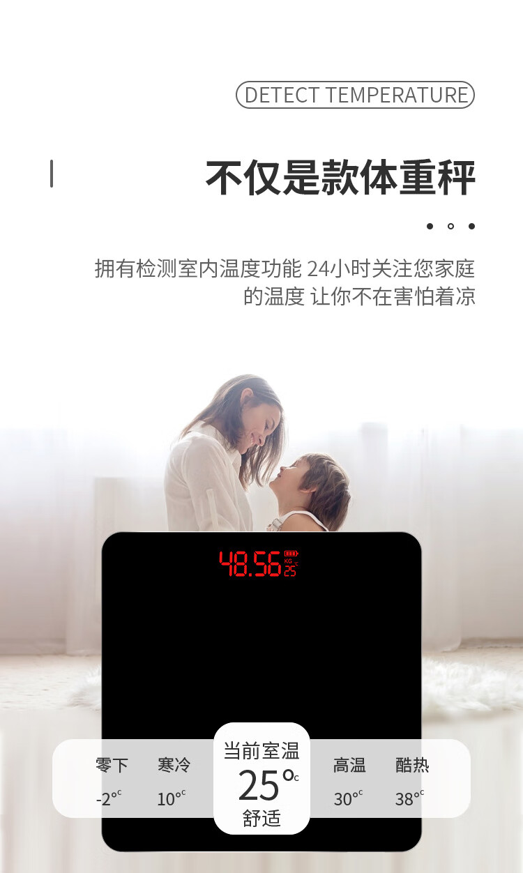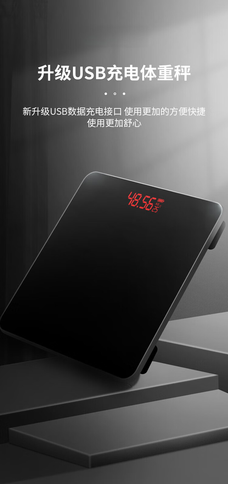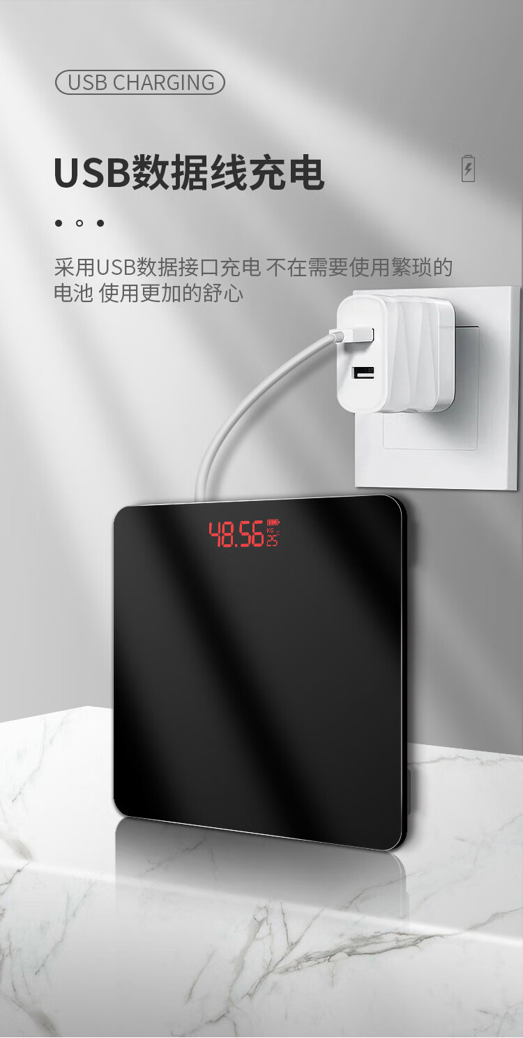 【精选直发】体重秤家用充电款耐用精准高精度家庭人体计小型称重 白色 电池款