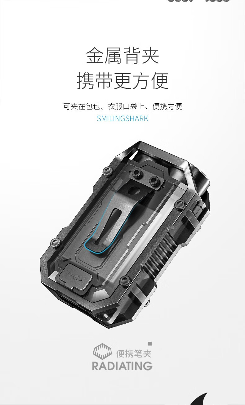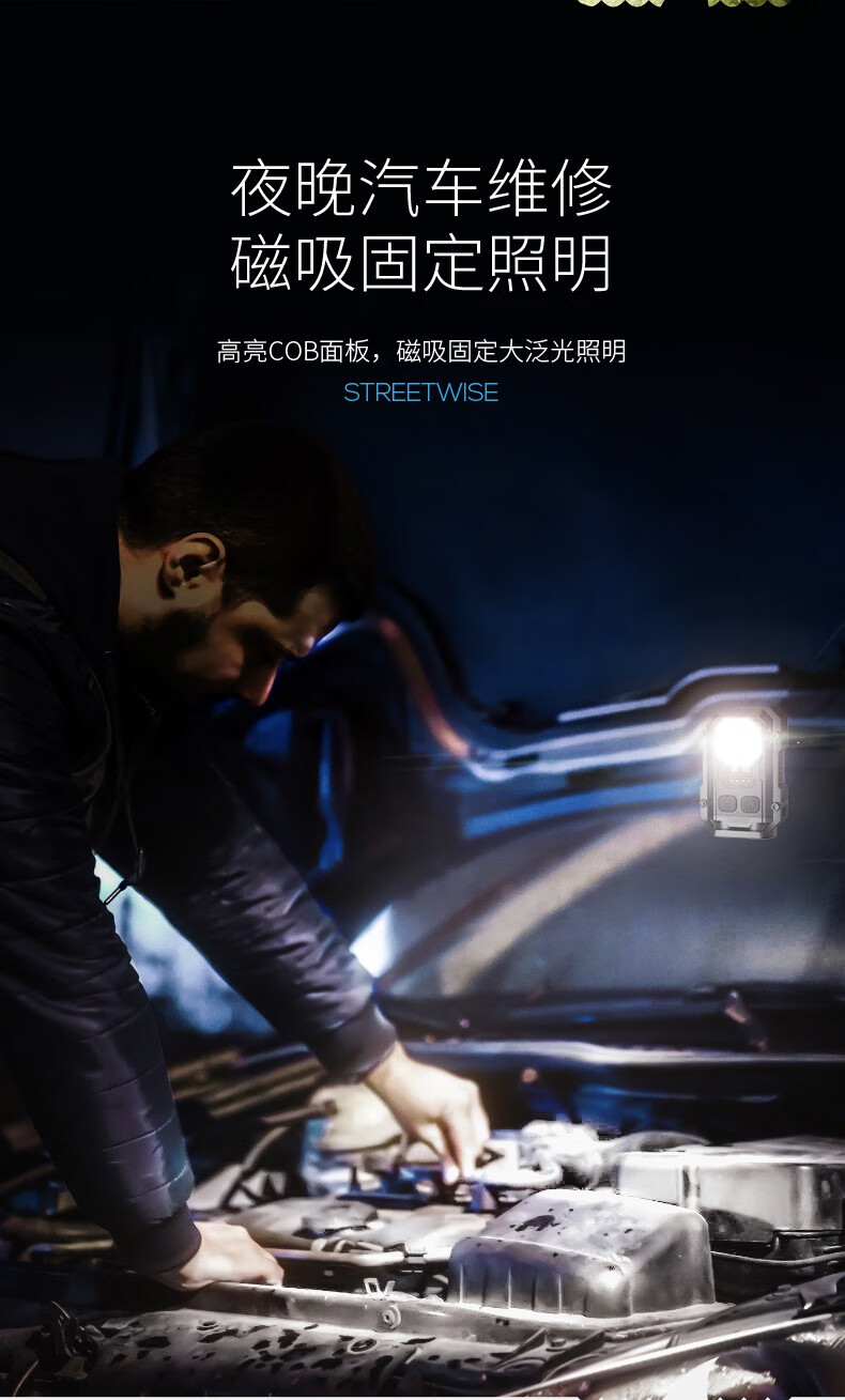 微笑鲨迷你超亮工作灯磁吸式led手电筒小强光充电多功能汽修维修灯随身 透明灰【4-8小时续航 强磁吸附】