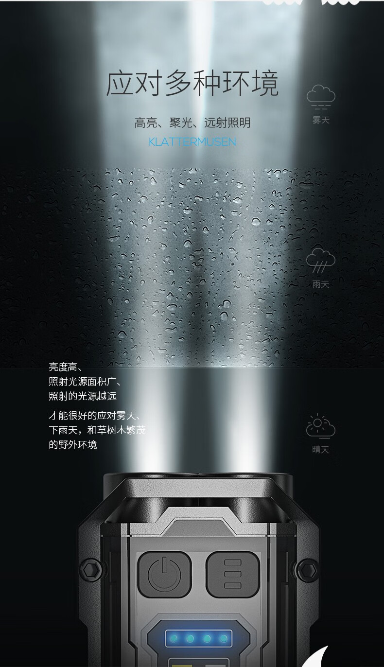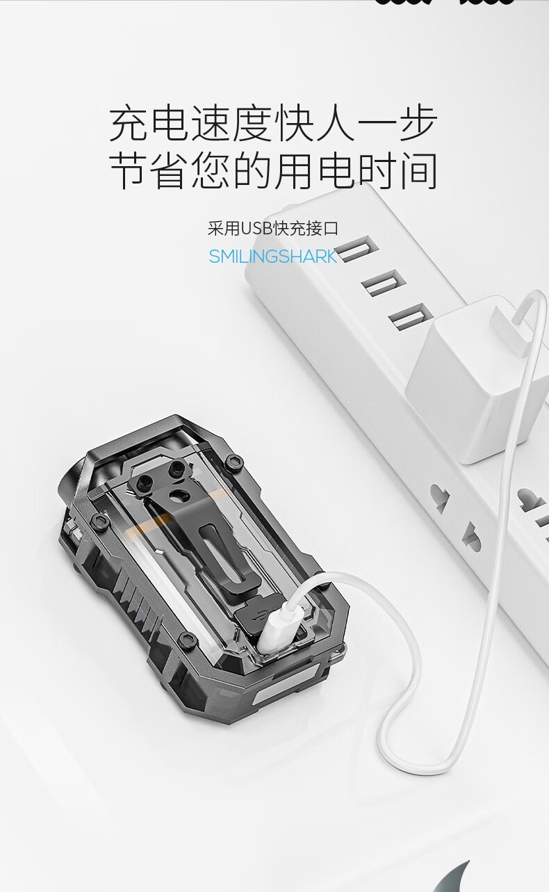 微笑鲨夜魂强光手电筒超长续航户外充电应急灯家用变焦远射激光探照灯 夜光长款-M80灯芯【8电】