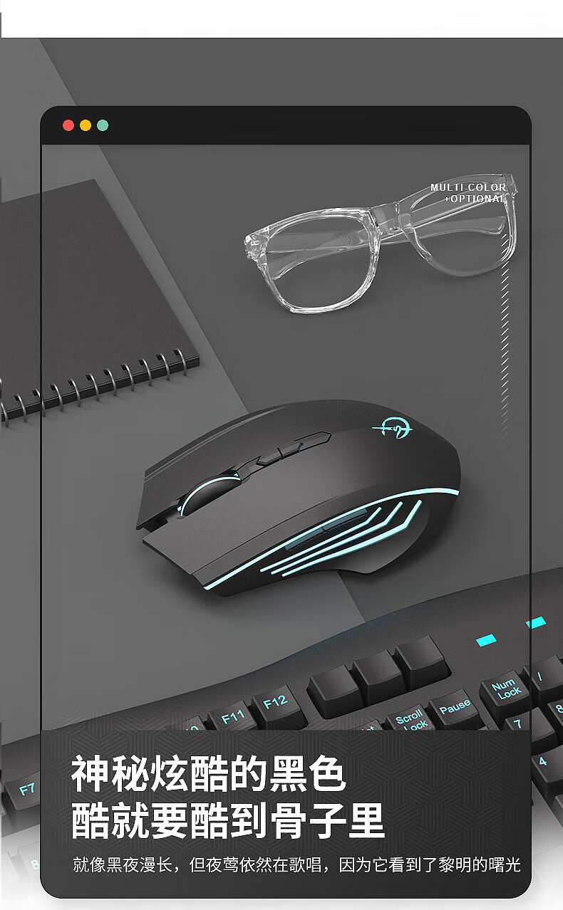 IMICE7键免双击2.4G静音可充电炫彩呼吸灯无线游戏鼠标 GW-X7双模静音发光版(1个)