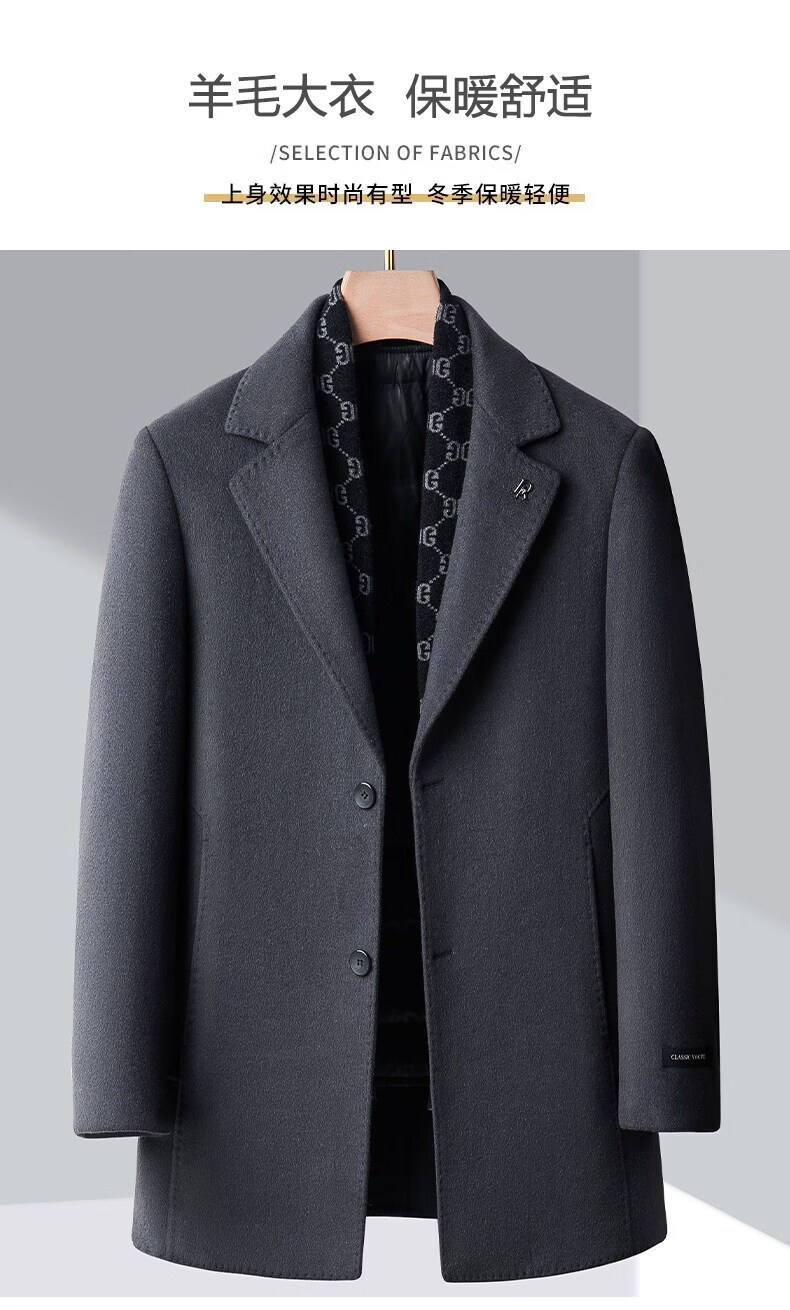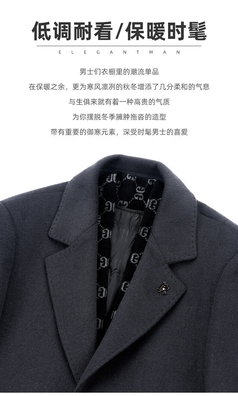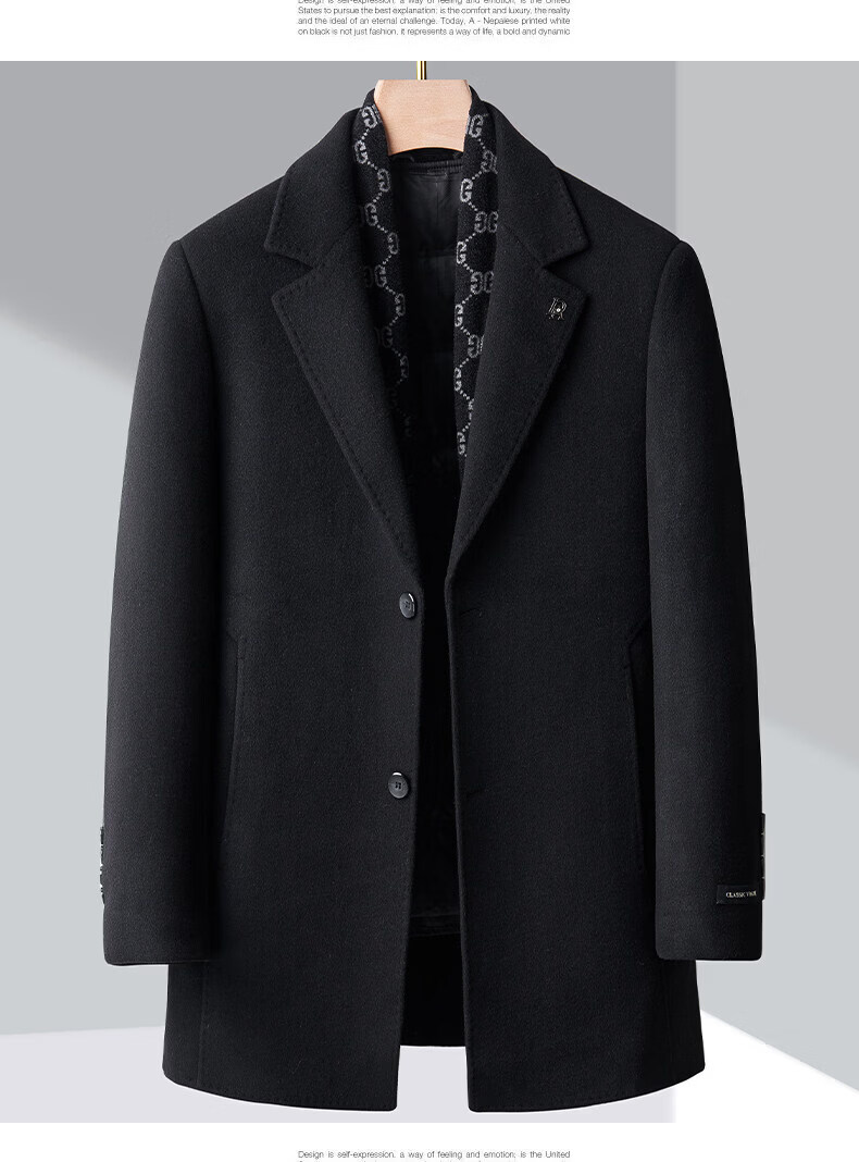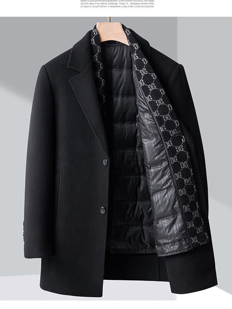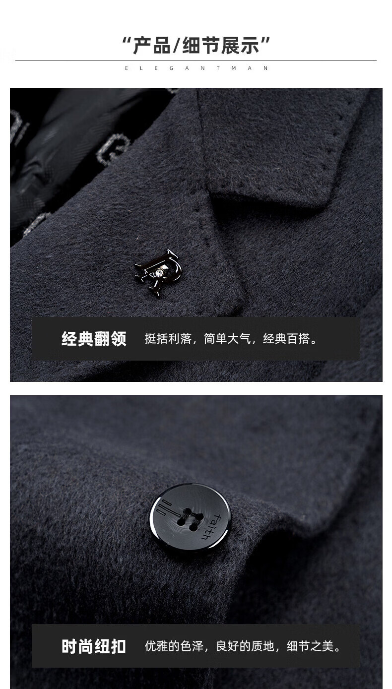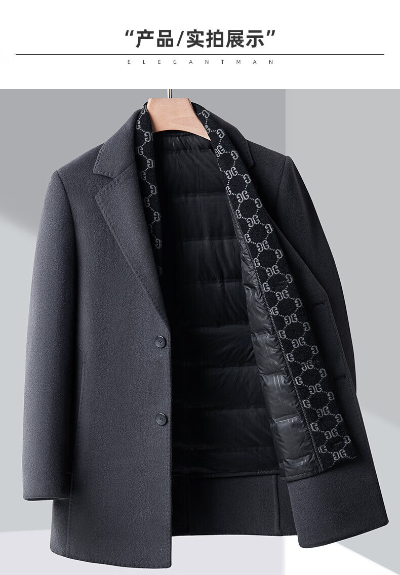 LILANG利郎冬季羽绒内胆双面呢大衣男羊绒中长款羊毛呢子外套毛呢厚 黑色 4XL 195