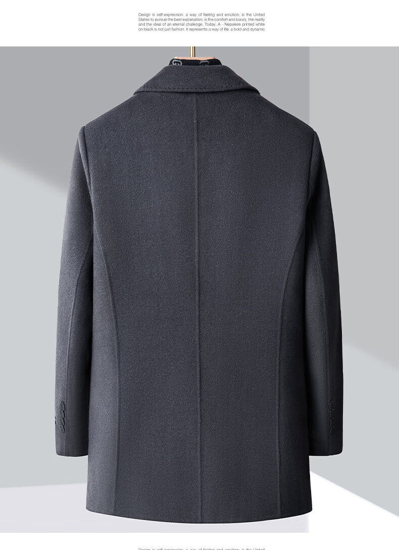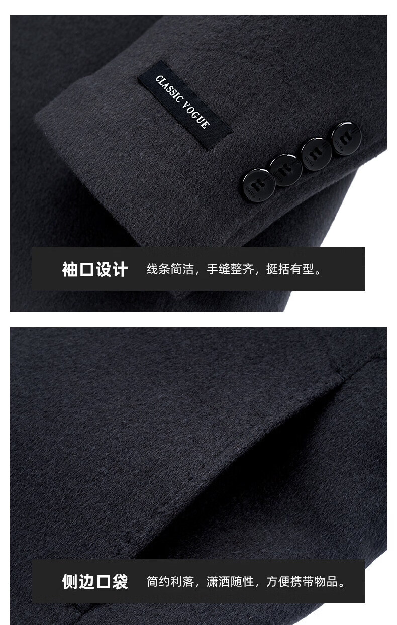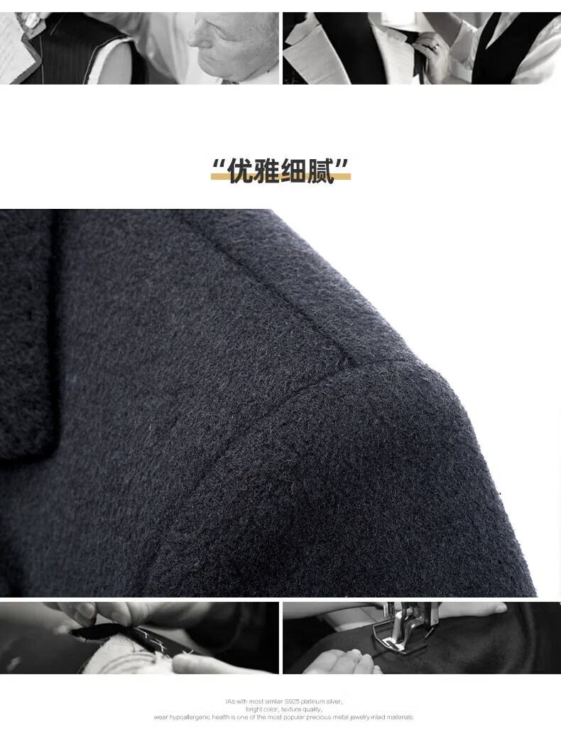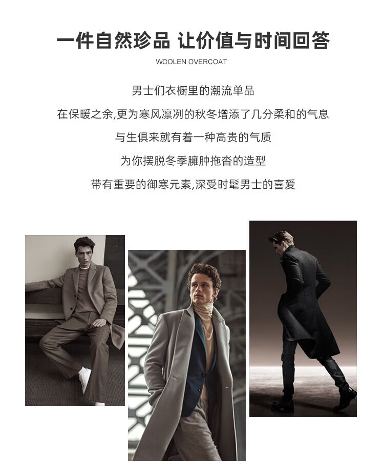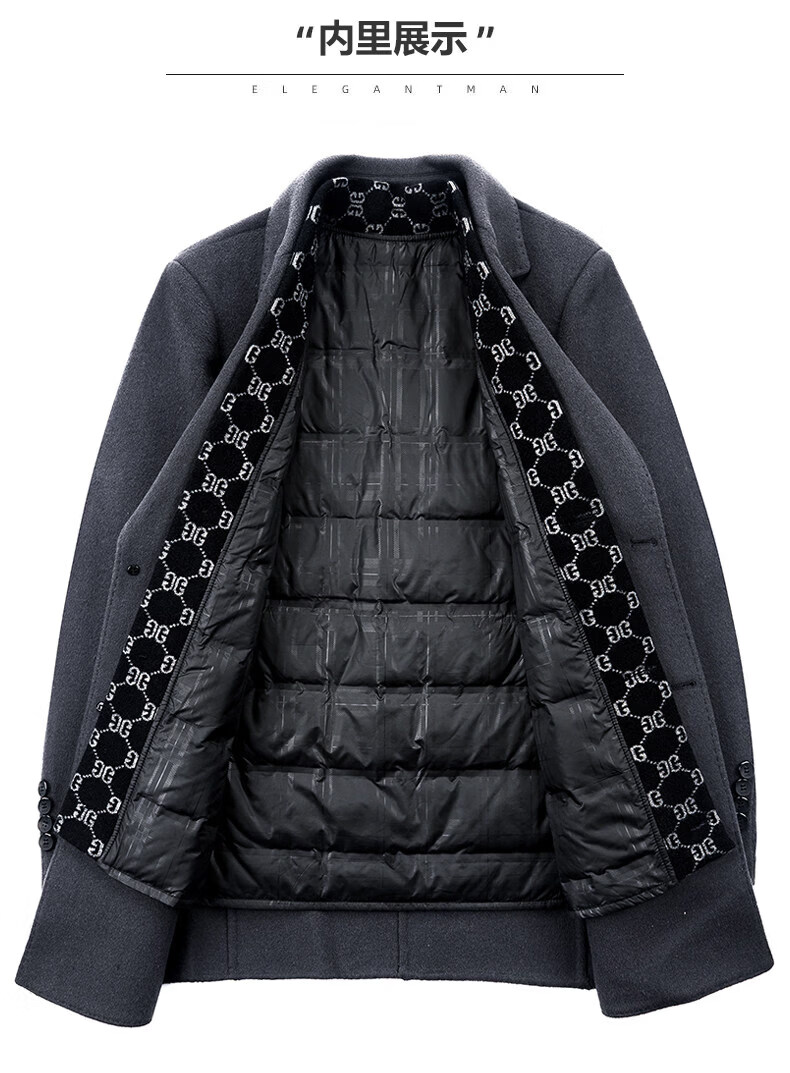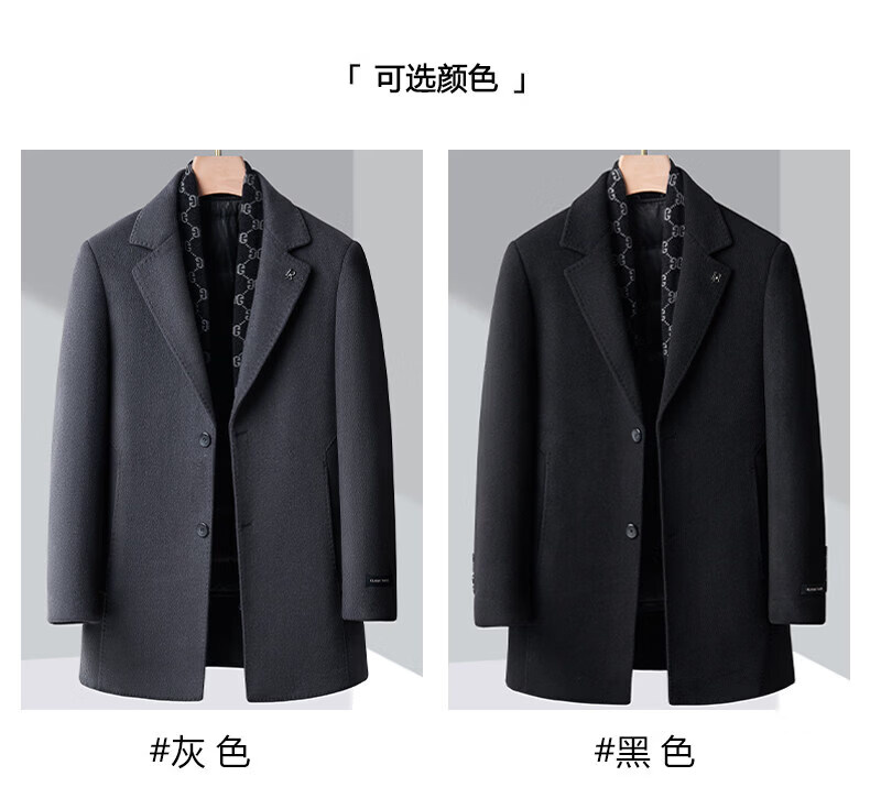 LILANG利郎冬季羽绒内胆双面呢大衣男羊绒中长款羊毛呢子外套毛呢厚 黑色 4XL 195