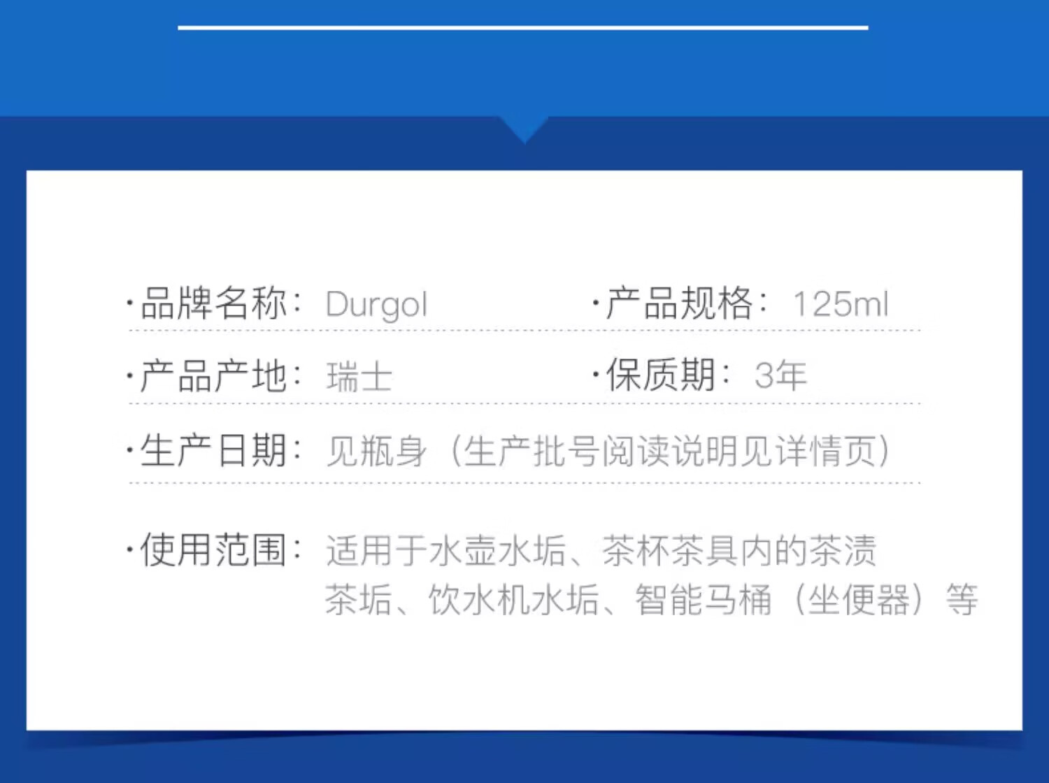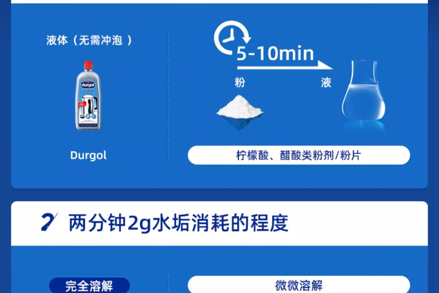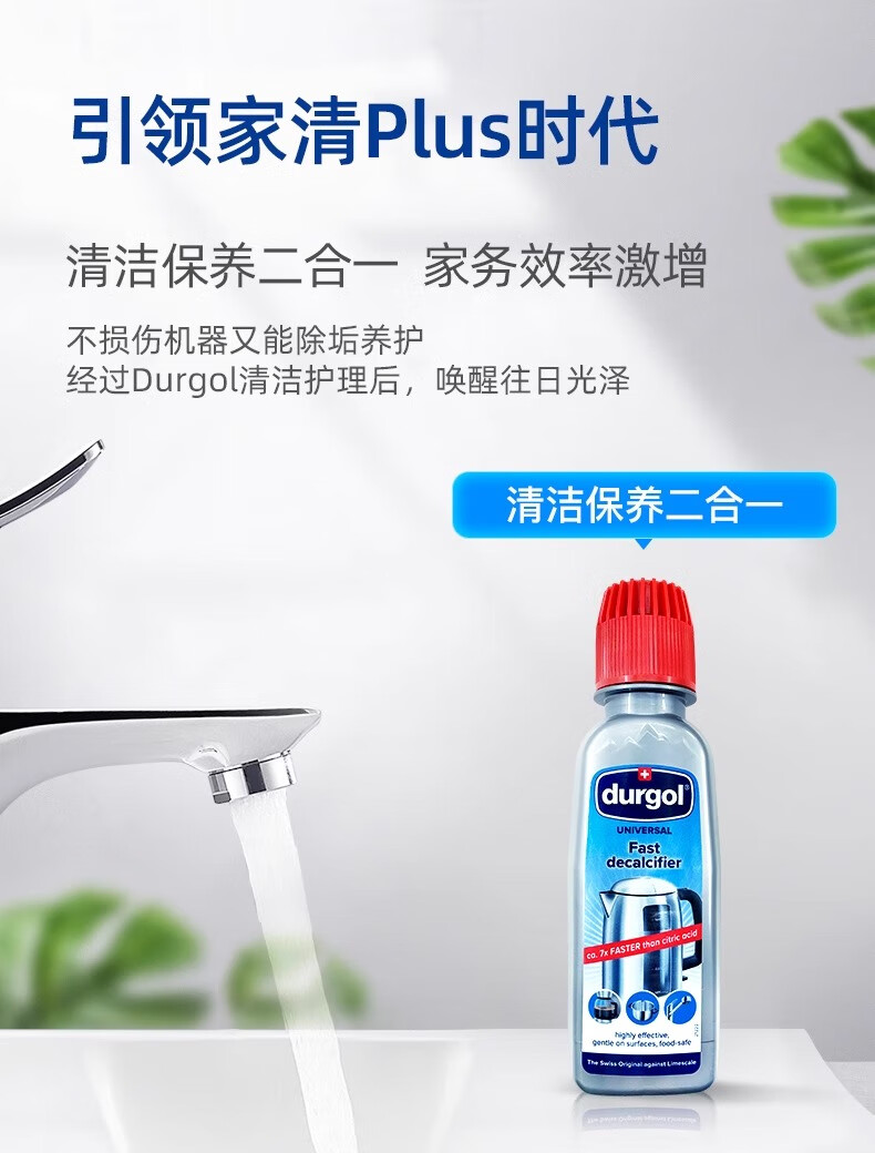 富培美durgol水垢清洁剂瑞士原装进口热水壶除垢智能马桶除钙剂 水垢清洁500ml*1瓶
