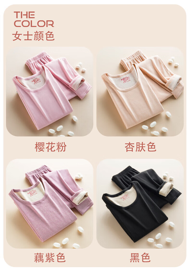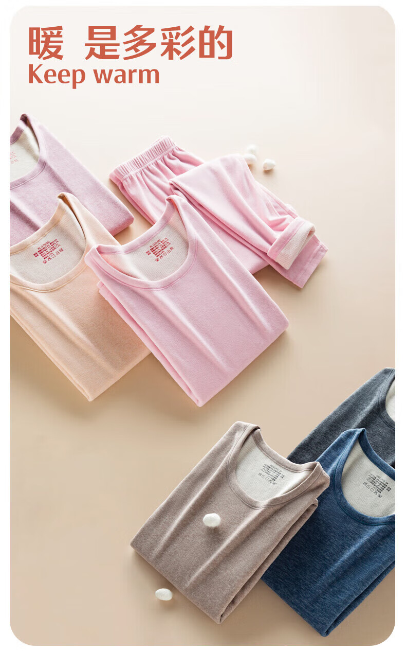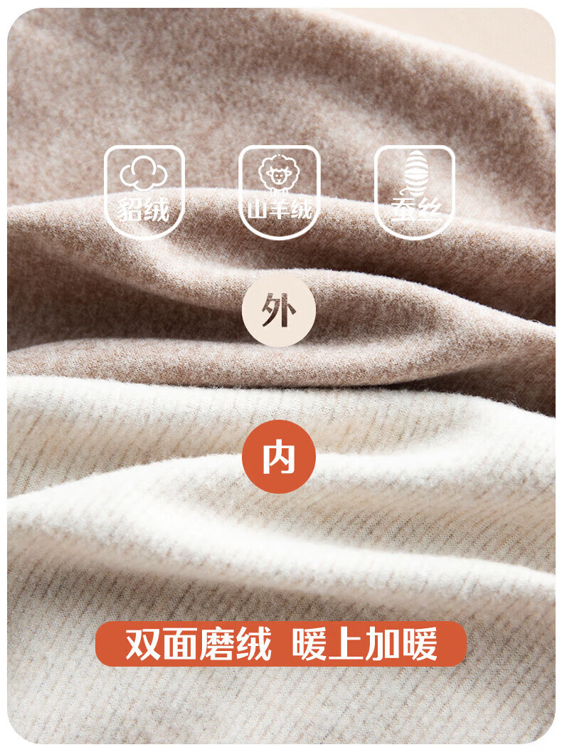 EMZ鄂尔多斯女士山羊绒保暖内衣套装双面绒无痕发热打底衫打底裤新款 包边套装暖柔肤 3XL (建议150-165斤)