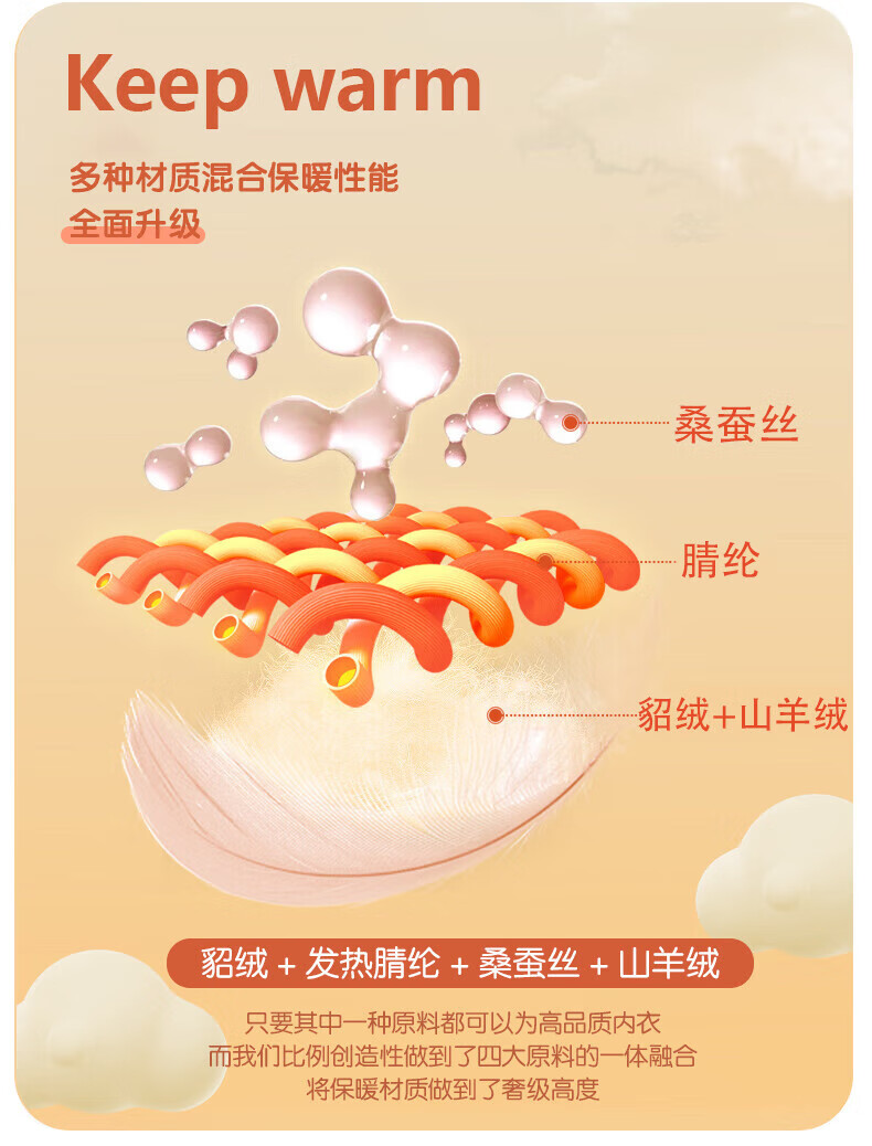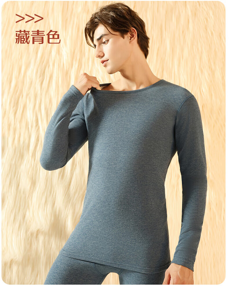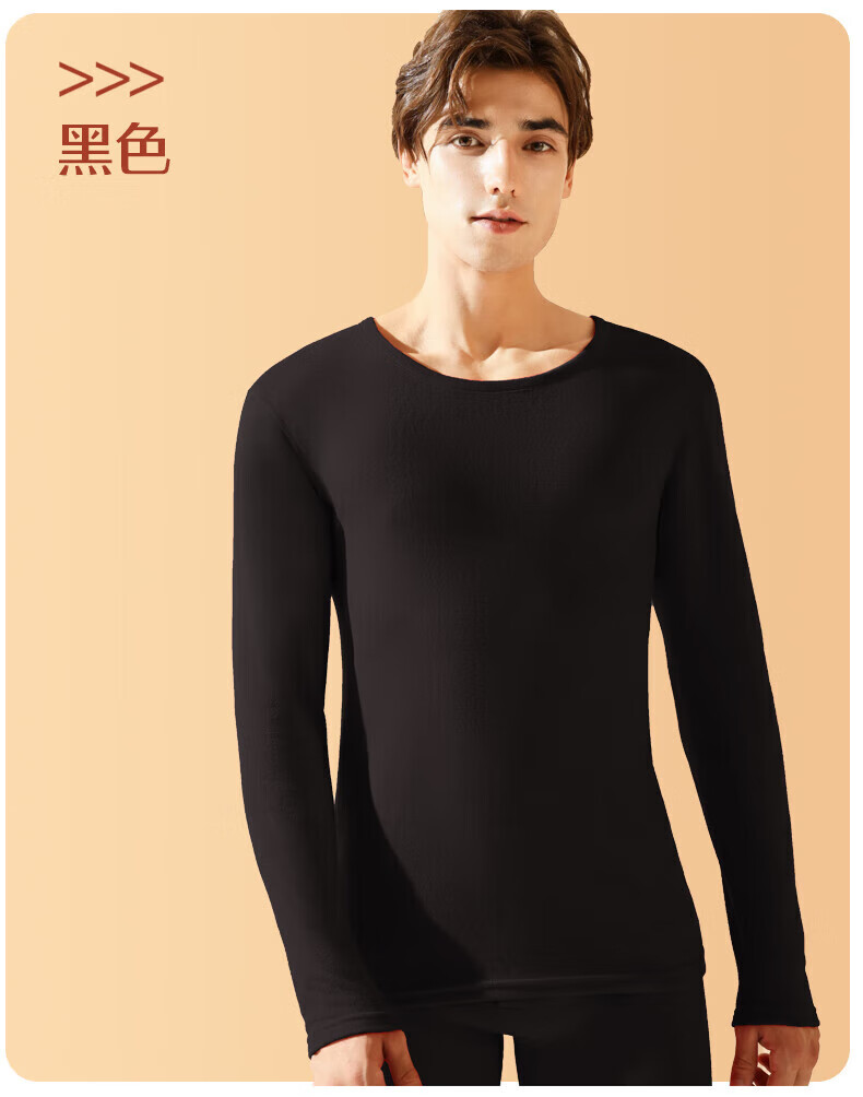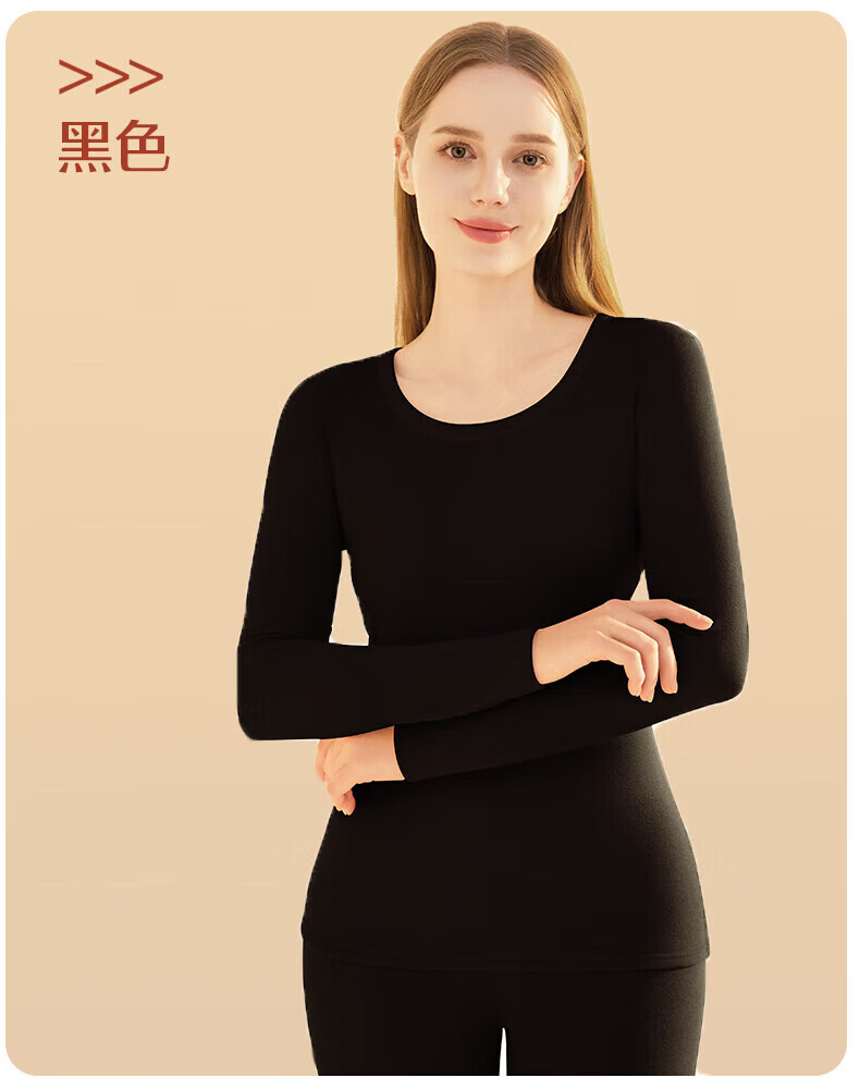 宜而爽羊绒蚕丝保暖套装情侣款高奢貂绒男女秋衣修身圆领发热腈纶 【女款】黑色 4XL