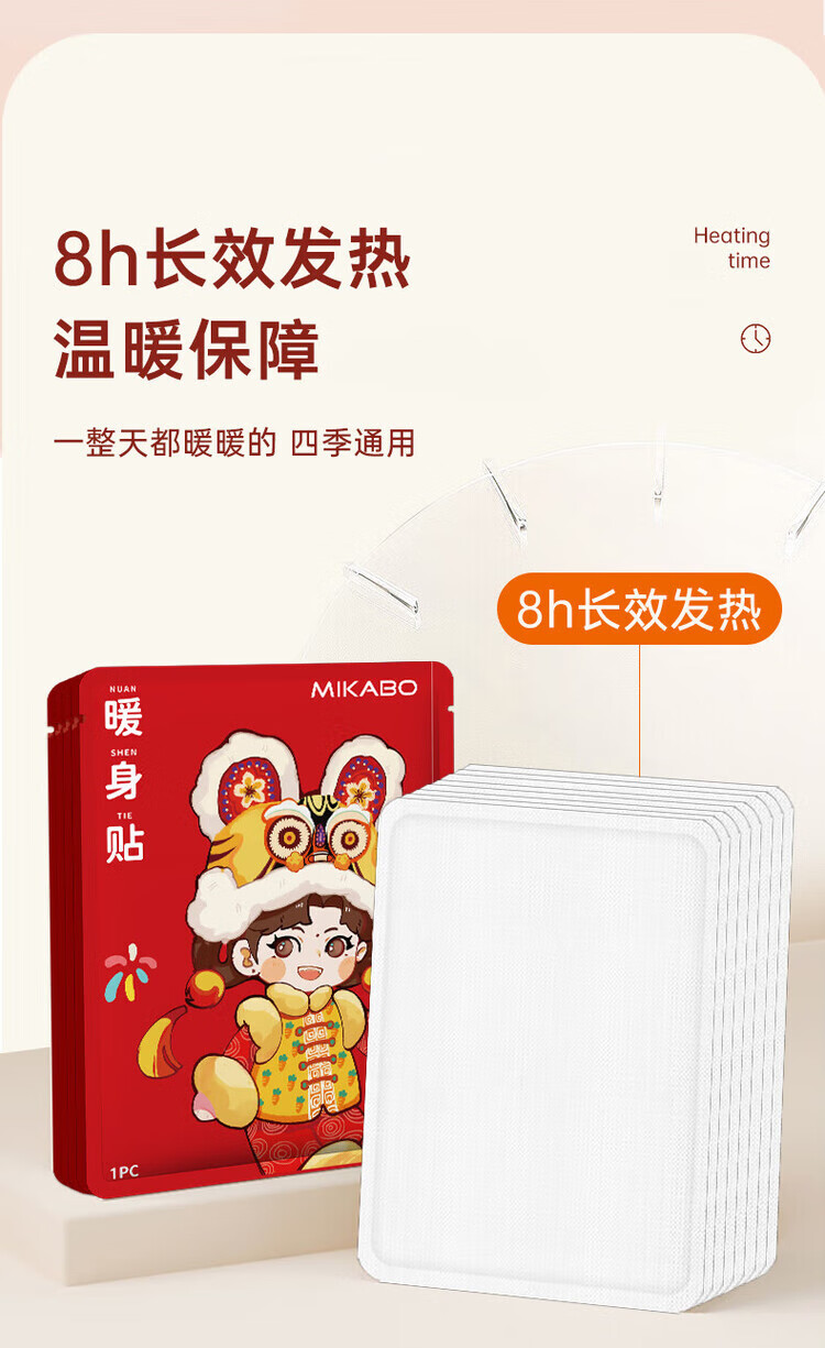 米卡博暖贴暖宝宝贴暖身贴暖腰腹自发热保宫暖大姨妈舒缓女生生理期 70片【黄舞狮】发热持久
