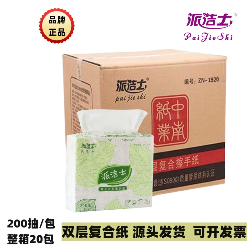 派洁士双层商务擦手纸厕所卫生间一次性卫生纸商务纸巾办公室厕所纸 20包整箱【200抽/包】