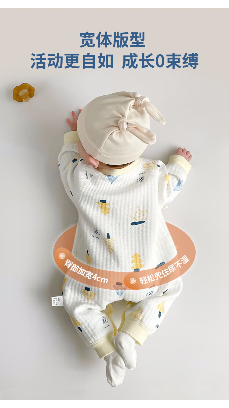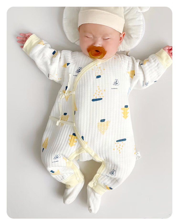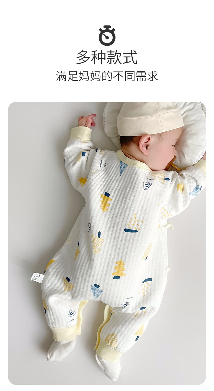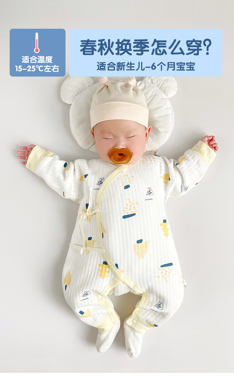 wua·wua【孕妈有礼】新生儿衣服秋冬季婴儿连体衣夹棉保暖宝宝居家睡衣 黄星星-升级感温标 52cm (适合0-1个月 4-8斤)