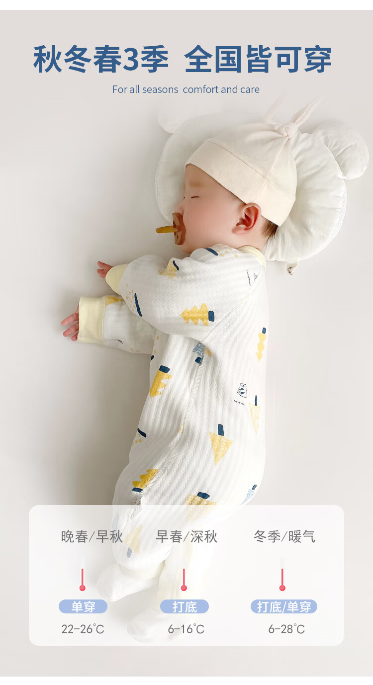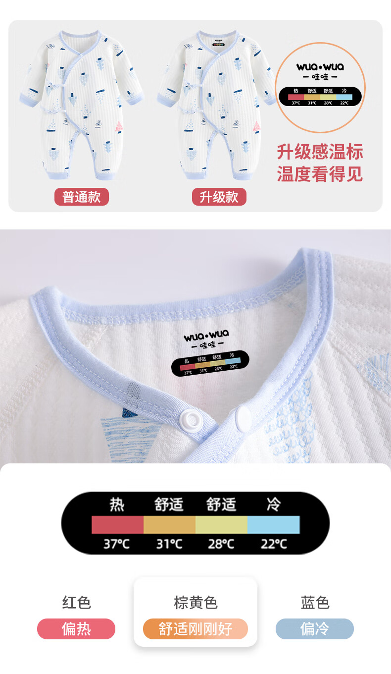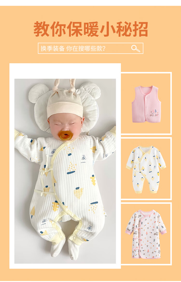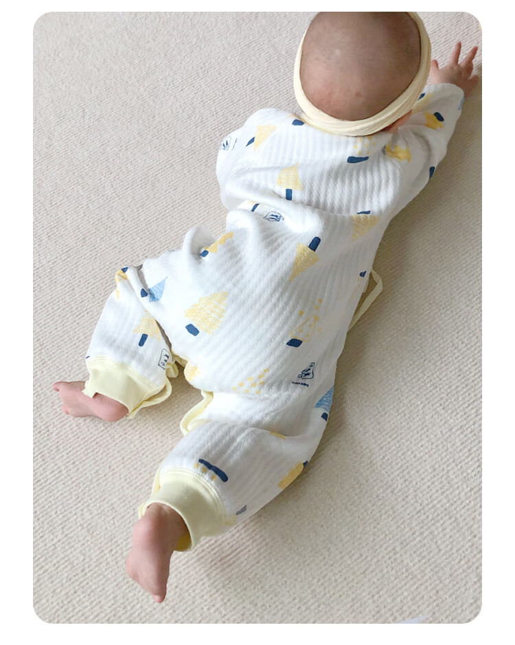 wua·wua【孕妈有礼】新生儿衣服秋冬季婴儿连体衣夹棉保暖宝宝居家睡衣 黄星星-升级感温标 52cm (适合0-1个月 4-8斤)