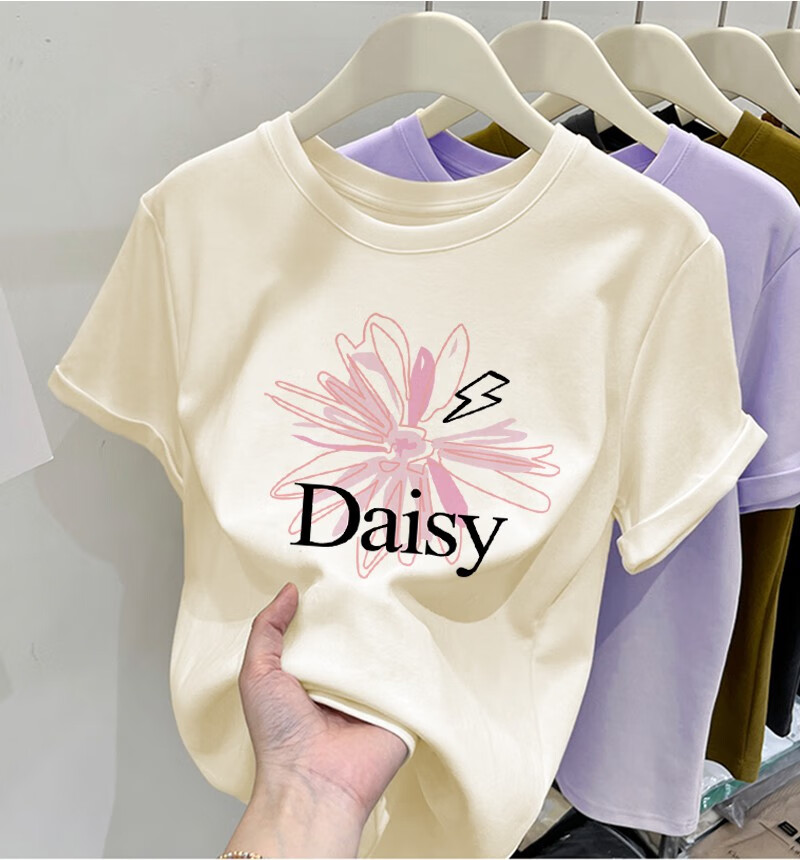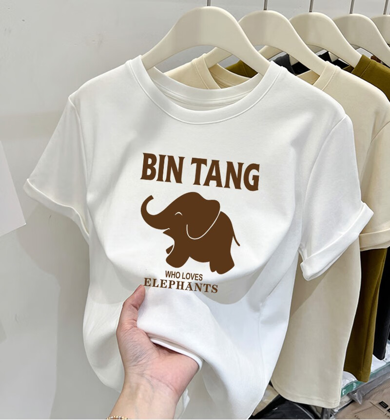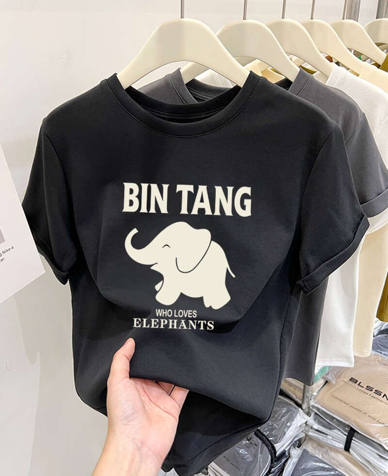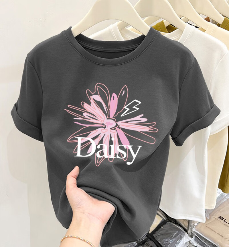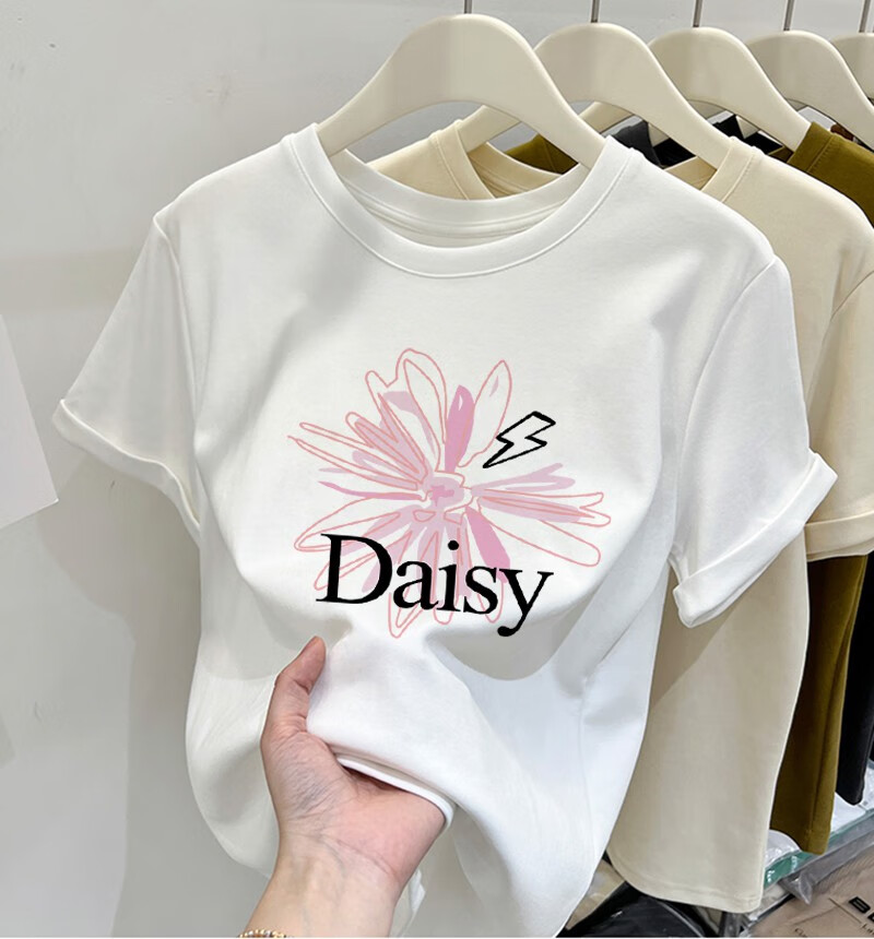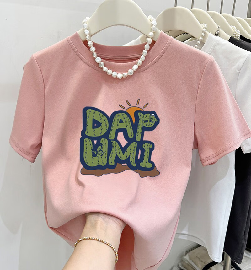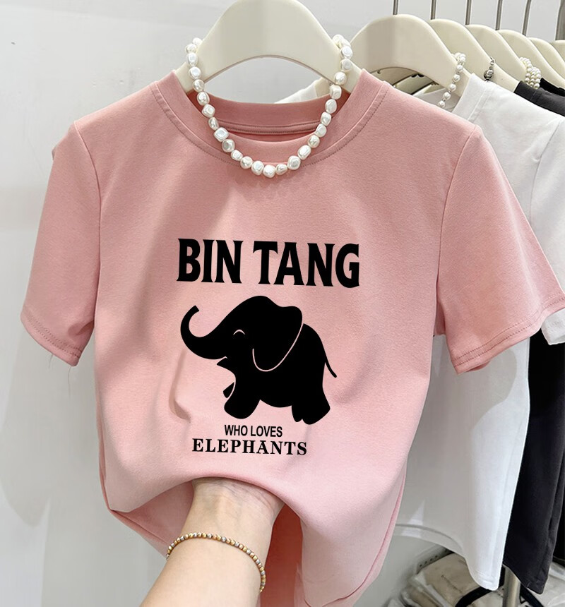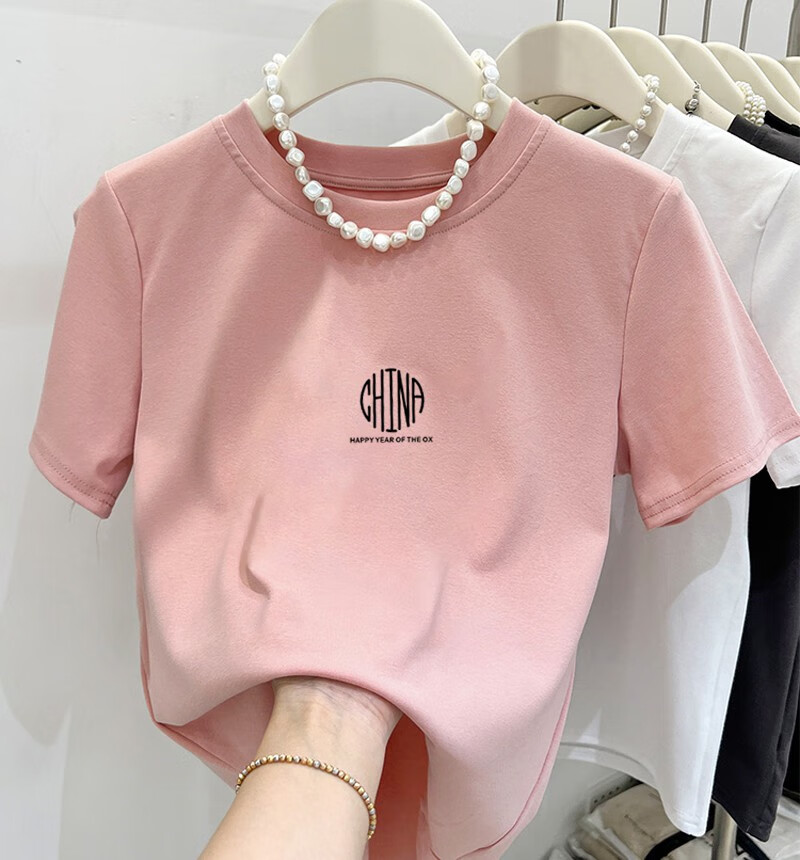 正肩纯棉短袖T恤女2025早秋新款ins风潮流宽松休闲百搭打底衫半袖 粉色(眼镜米奇款) 2XL