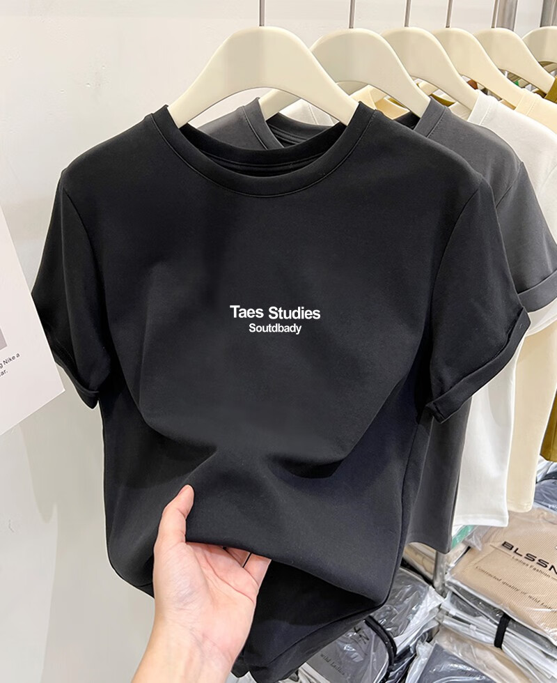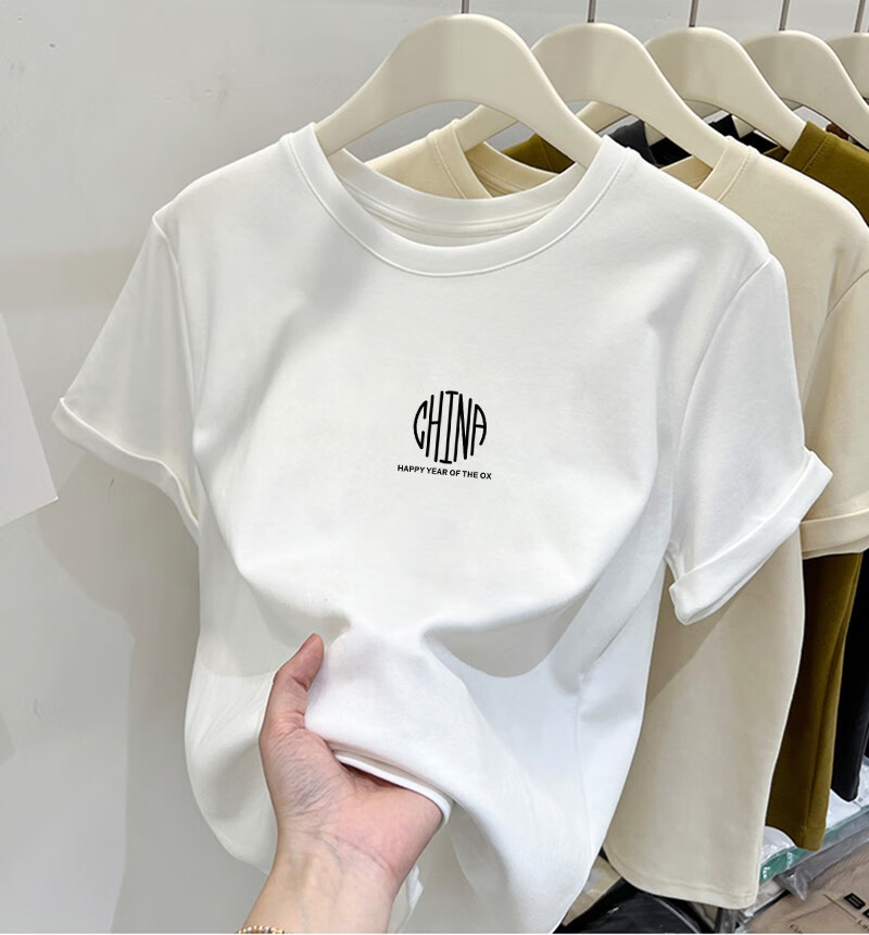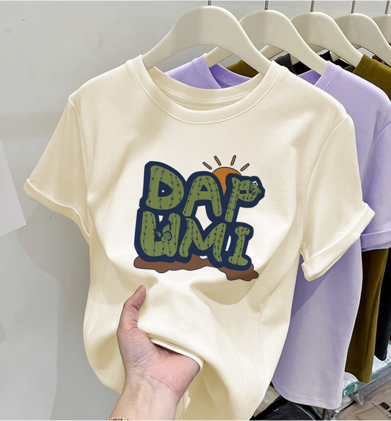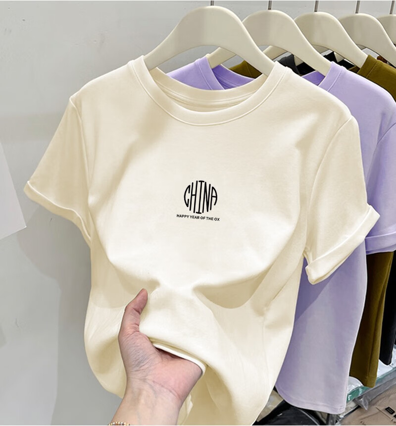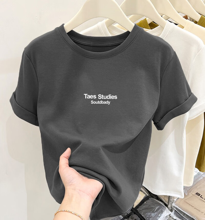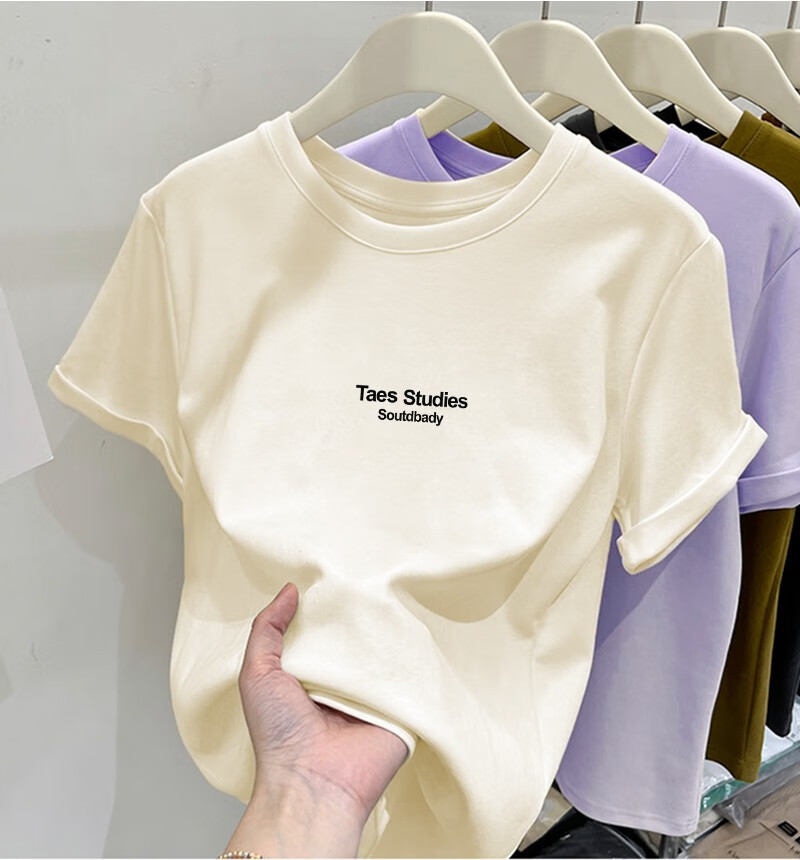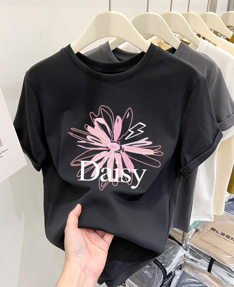 正肩纯棉短袖T恤女2025早秋新款ins风潮流宽松休闲百搭打底衫半袖 粉色(眼镜米奇款) 2XL