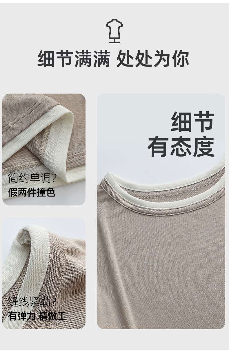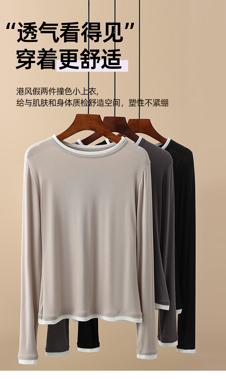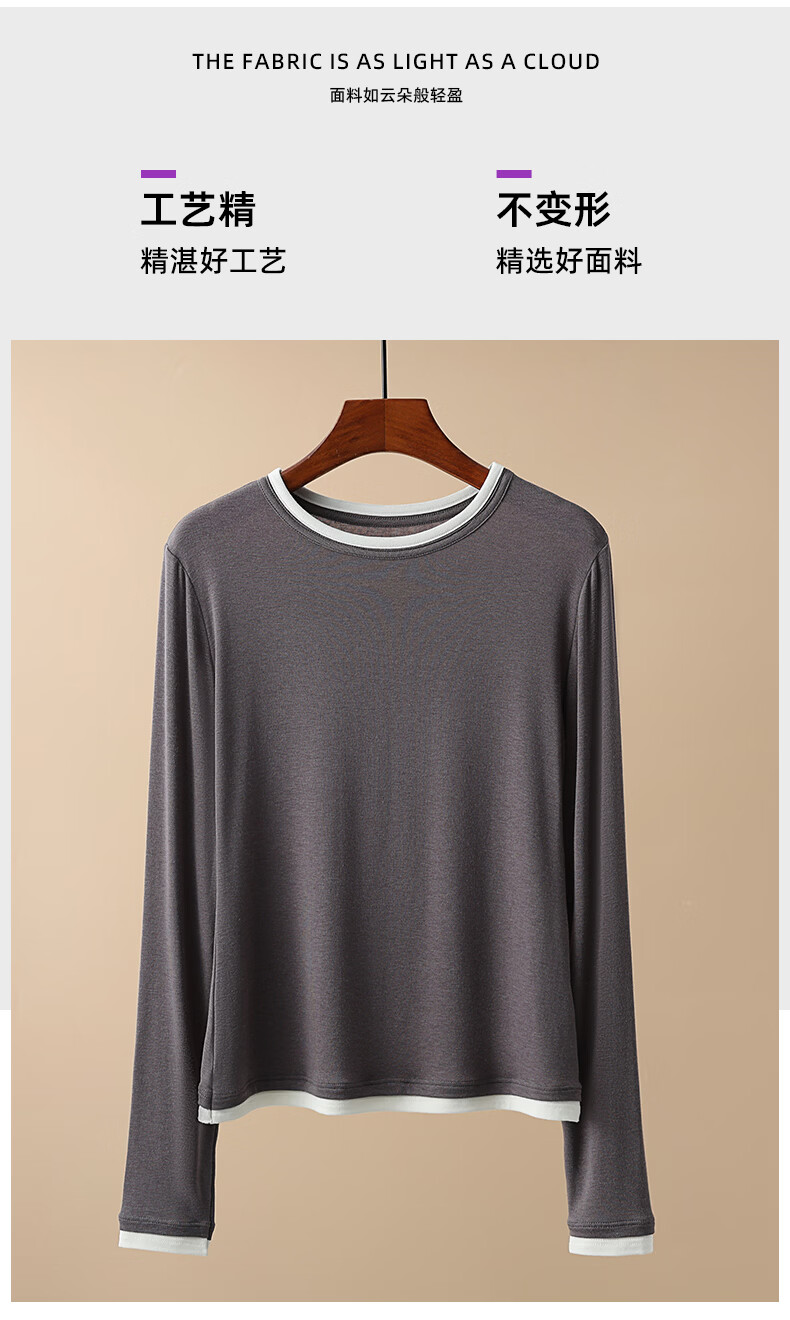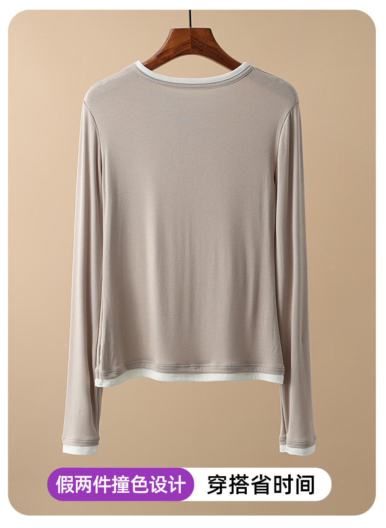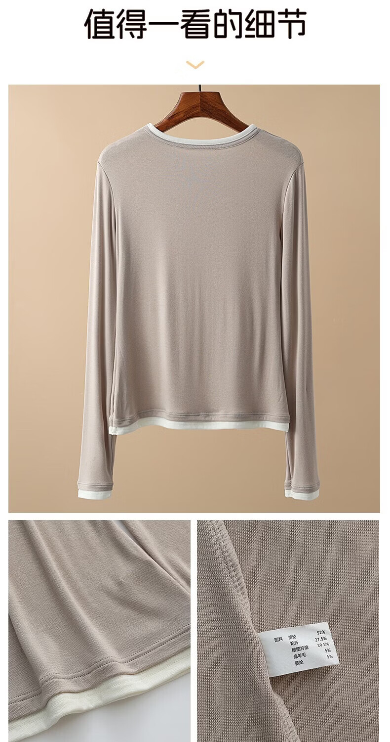 醋酸羊毛假两件长袖t恤女款打底衫春秋新品小众柔软撞色简约上衣 深灰色 M (95-110)