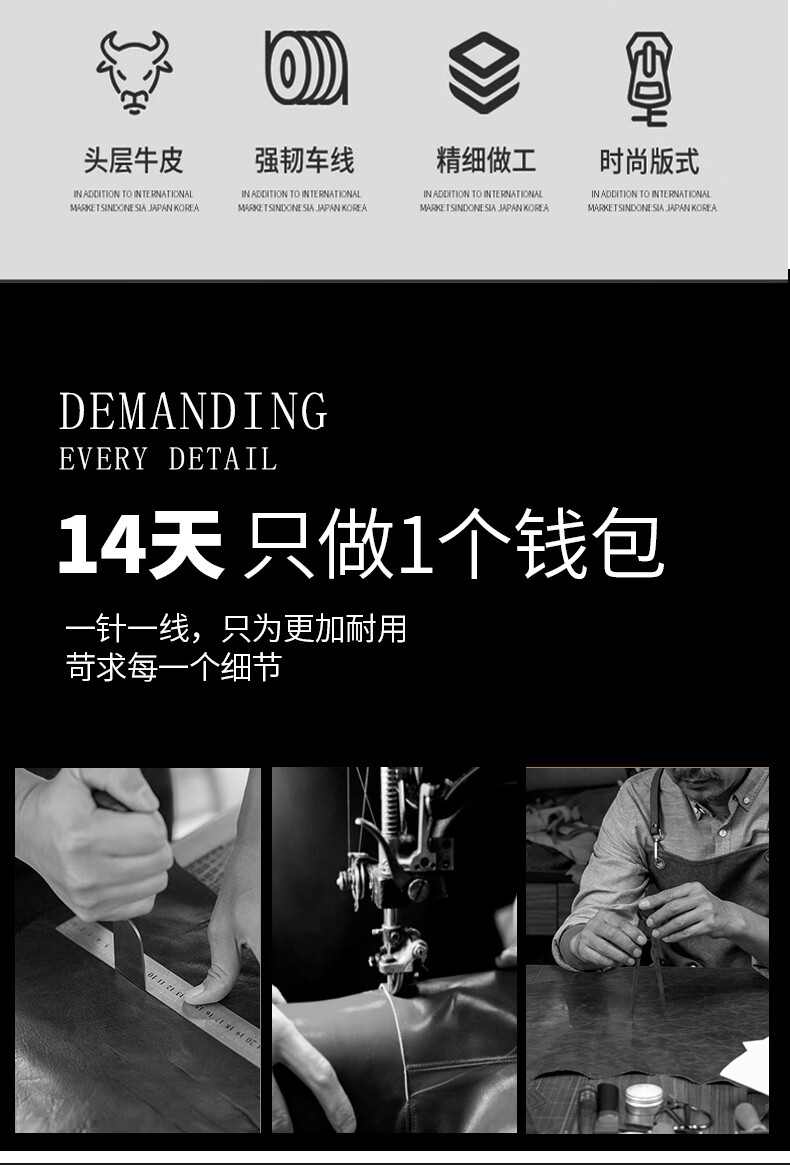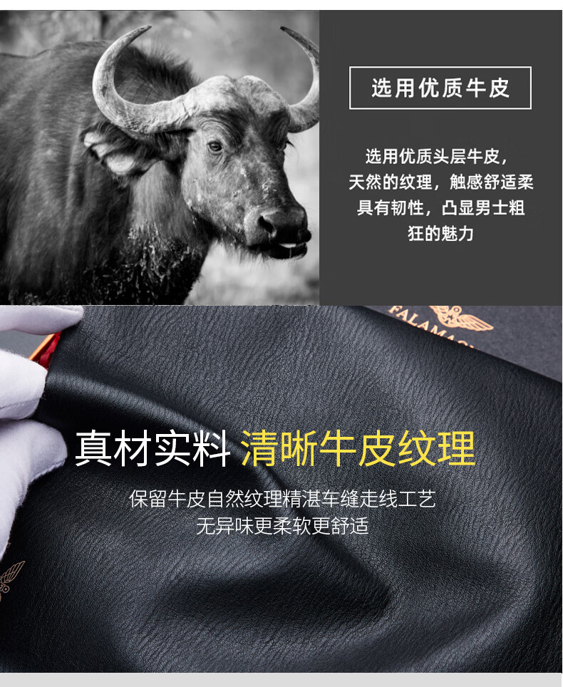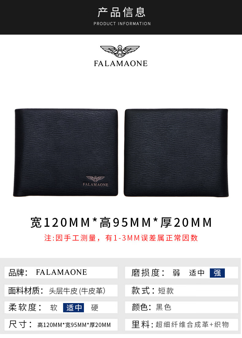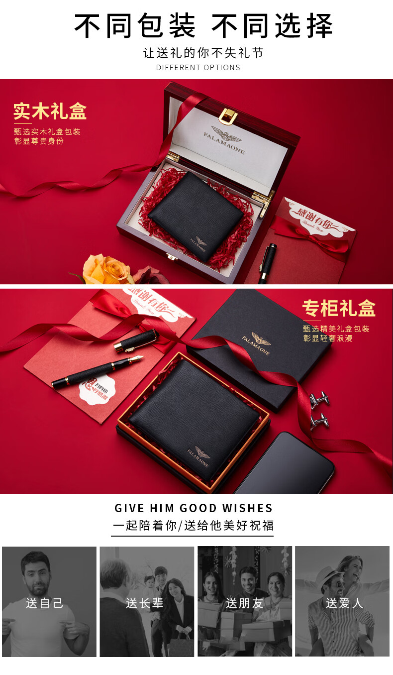 FALAMAONE法莱阿玛尼钱包男士短款真皮多功能钱夹时尚皮夹礼物送男友老公 黑色【实木礼盒】