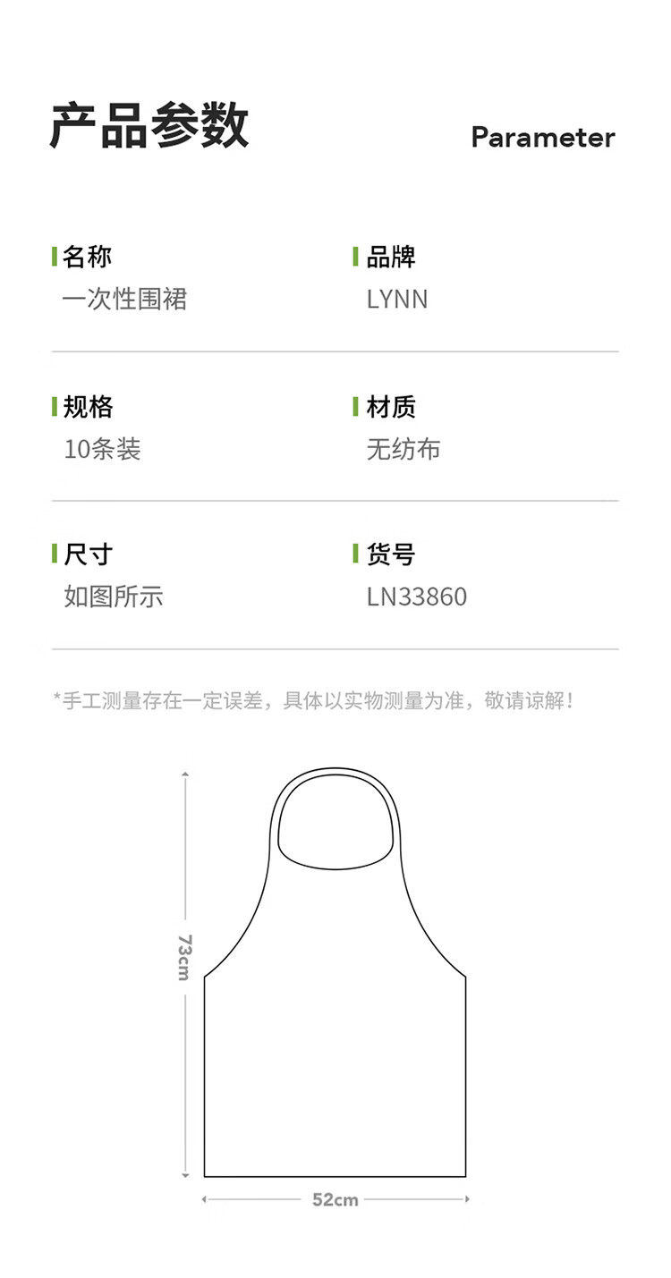 LYNN围裙 防水防油污男女通用时尚家务清洁厨房罩衣奶茶咖啡工作服 【特厚防滑】无纺布鞋套50只