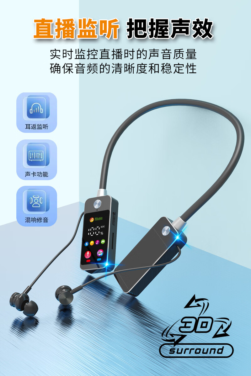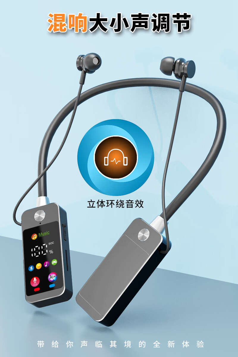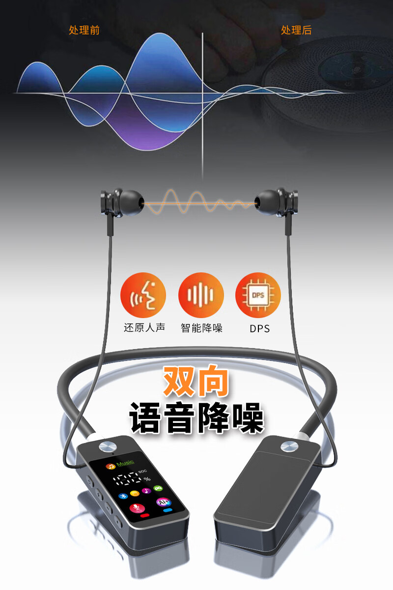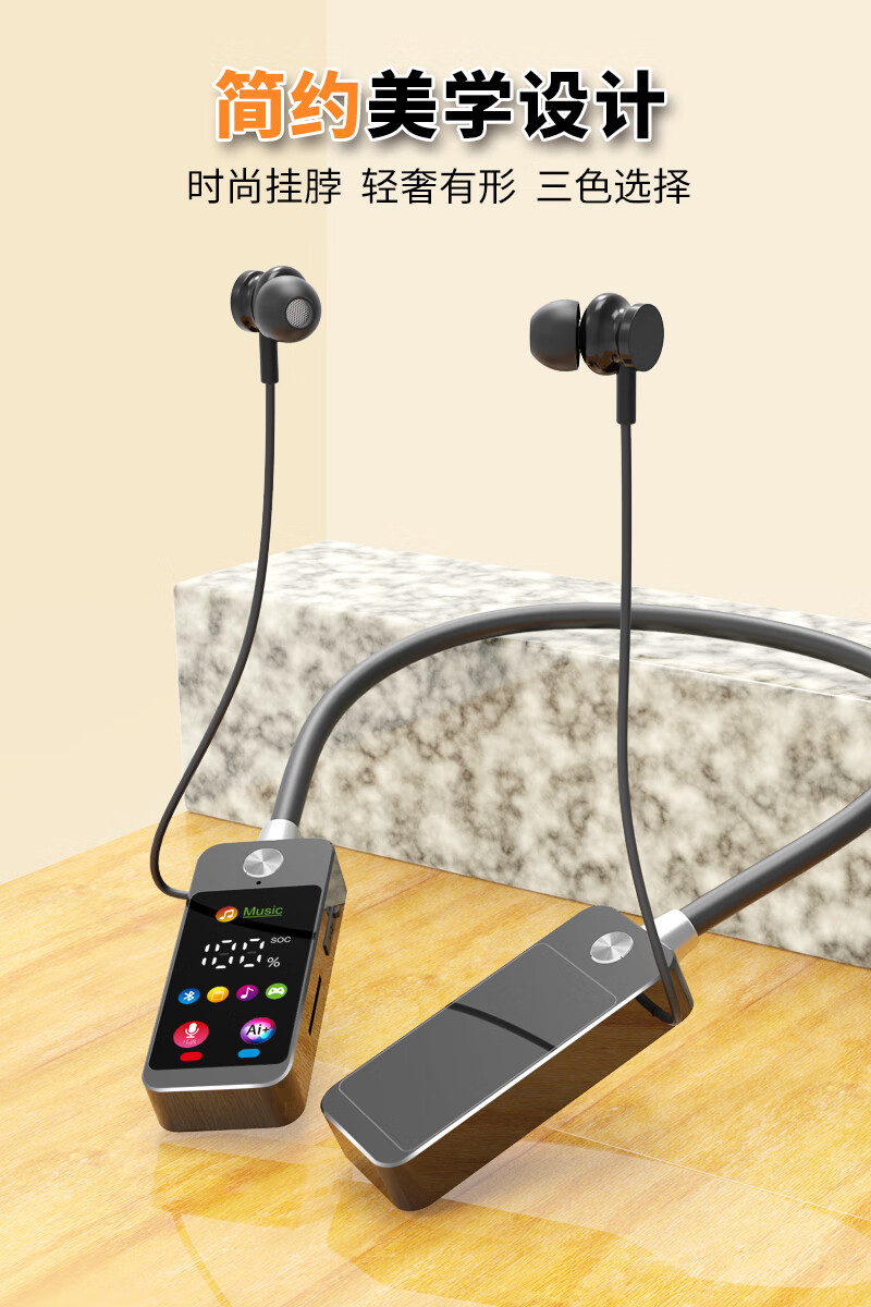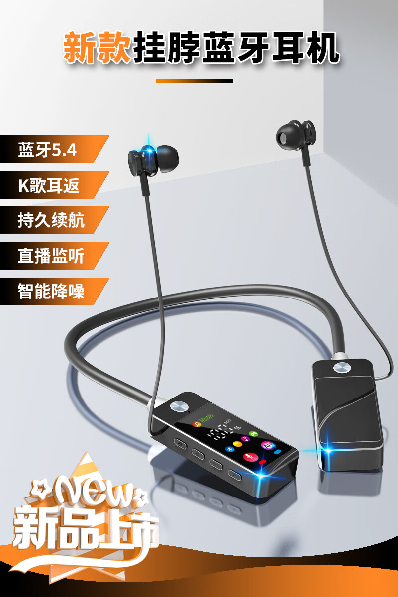 新品无线蓝牙挂脖式耳机直播耳返超长续航适用苹果华为小米VIVO 彩屏智显黑 【久戴不痛不漏音】通话可变音