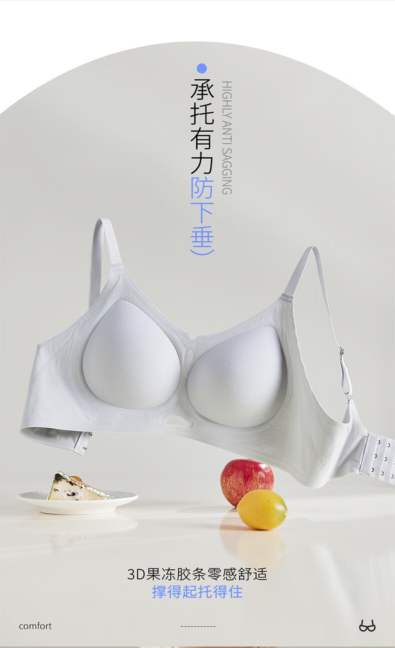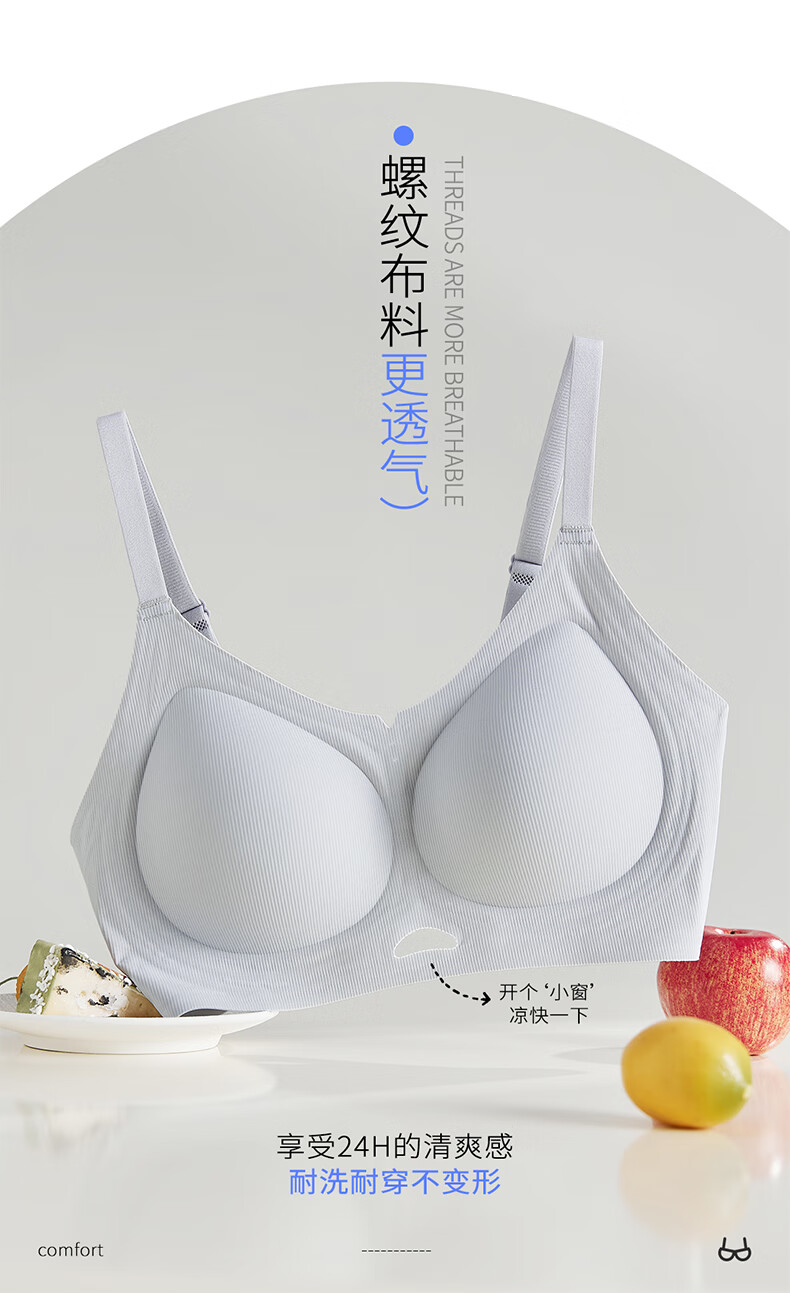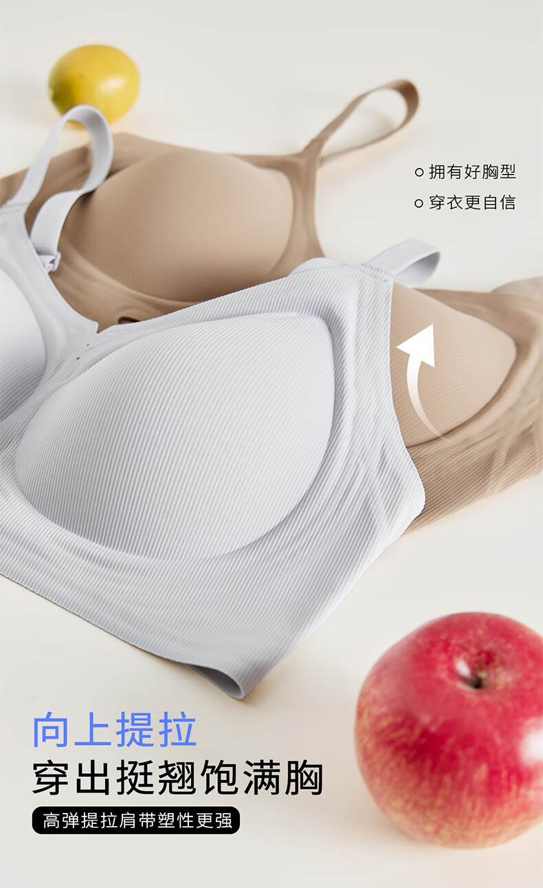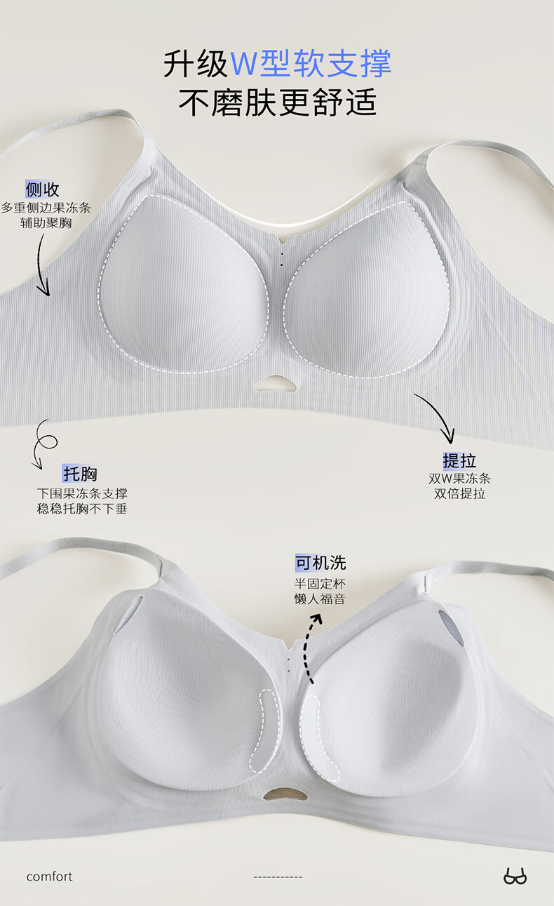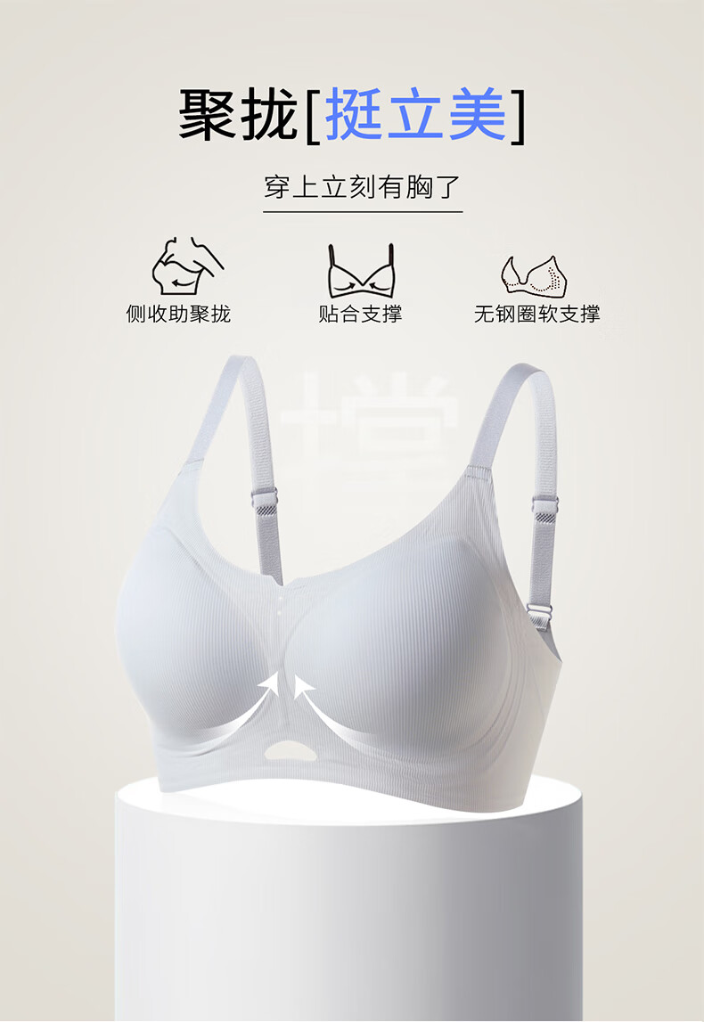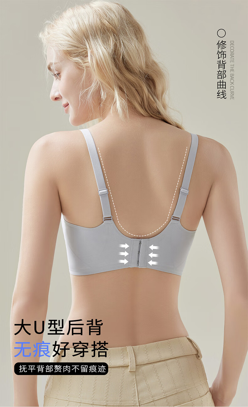 欧迪芬内衣女无痕文胸聚拢无钢圈侧收副乳防下垂简约镂空上托胸罩 浅蓝+香槟 L (100-120斤)