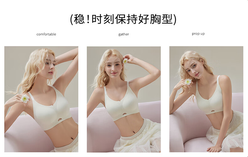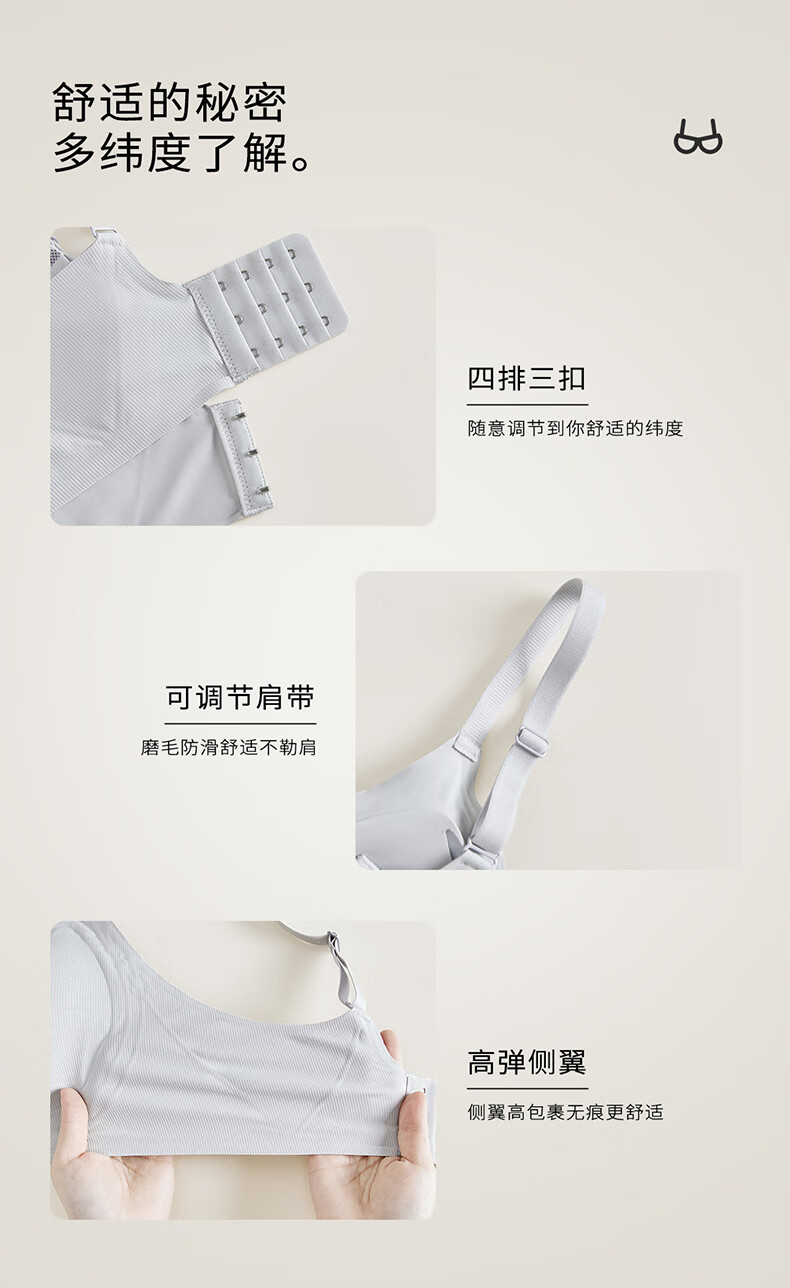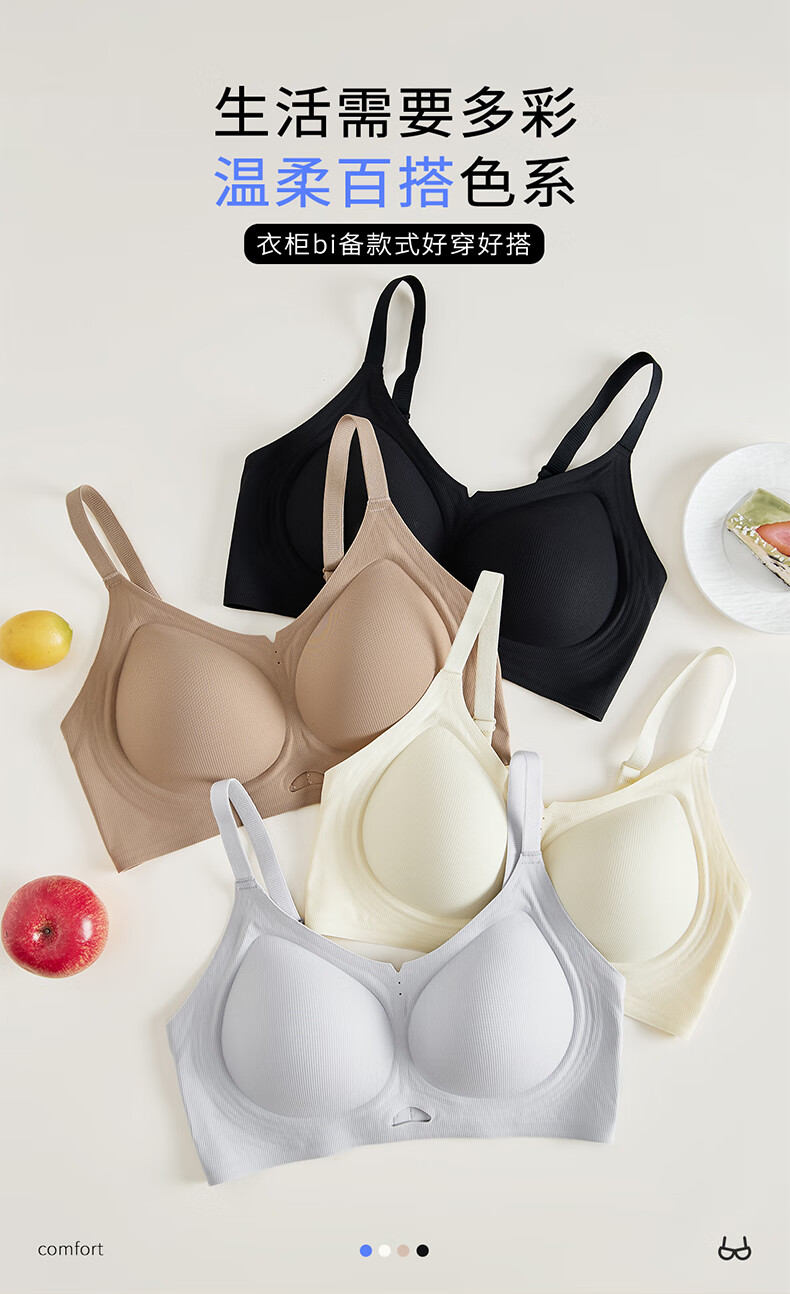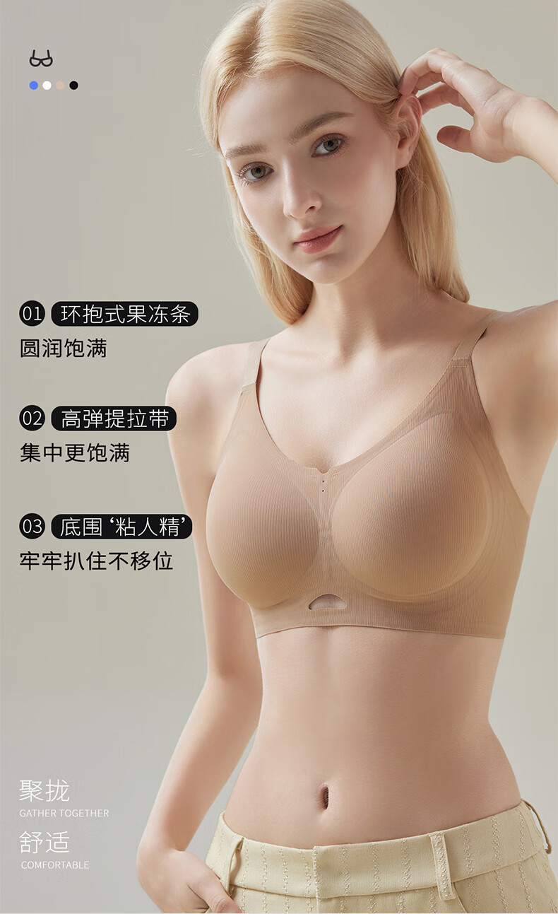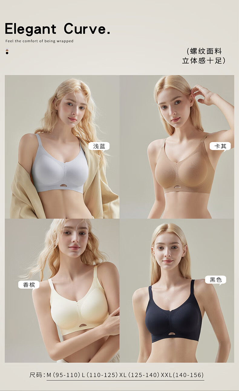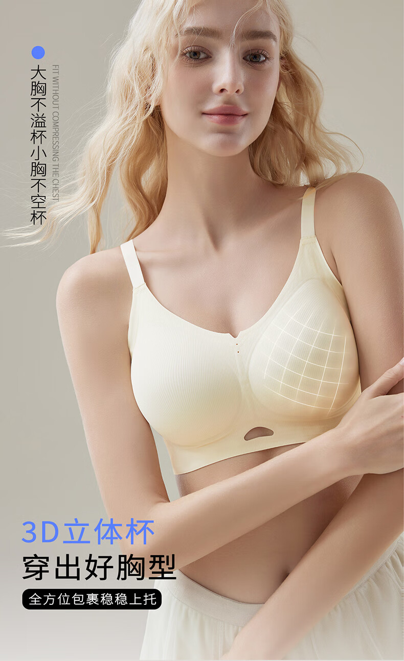欧迪芬内衣女无痕文胸聚拢无钢圈侧收副乳防下垂简约镂空上托胸罩 浅蓝+香槟 L (100-120斤)